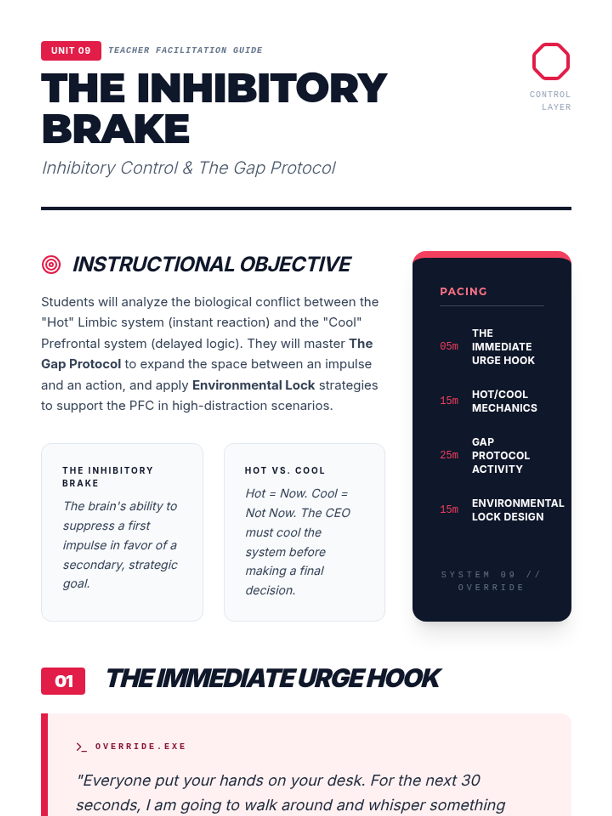 Focuses on the 'Prefrontal Brake'. Students analyze the science of impulse and learn inhibitory control strategies to navigate social and academic distractions.