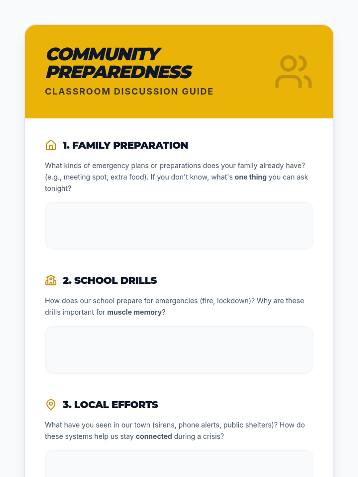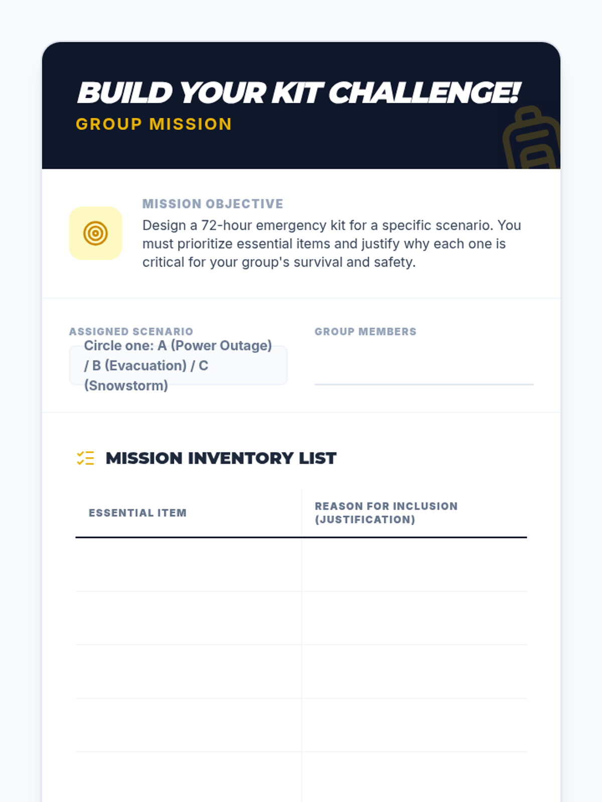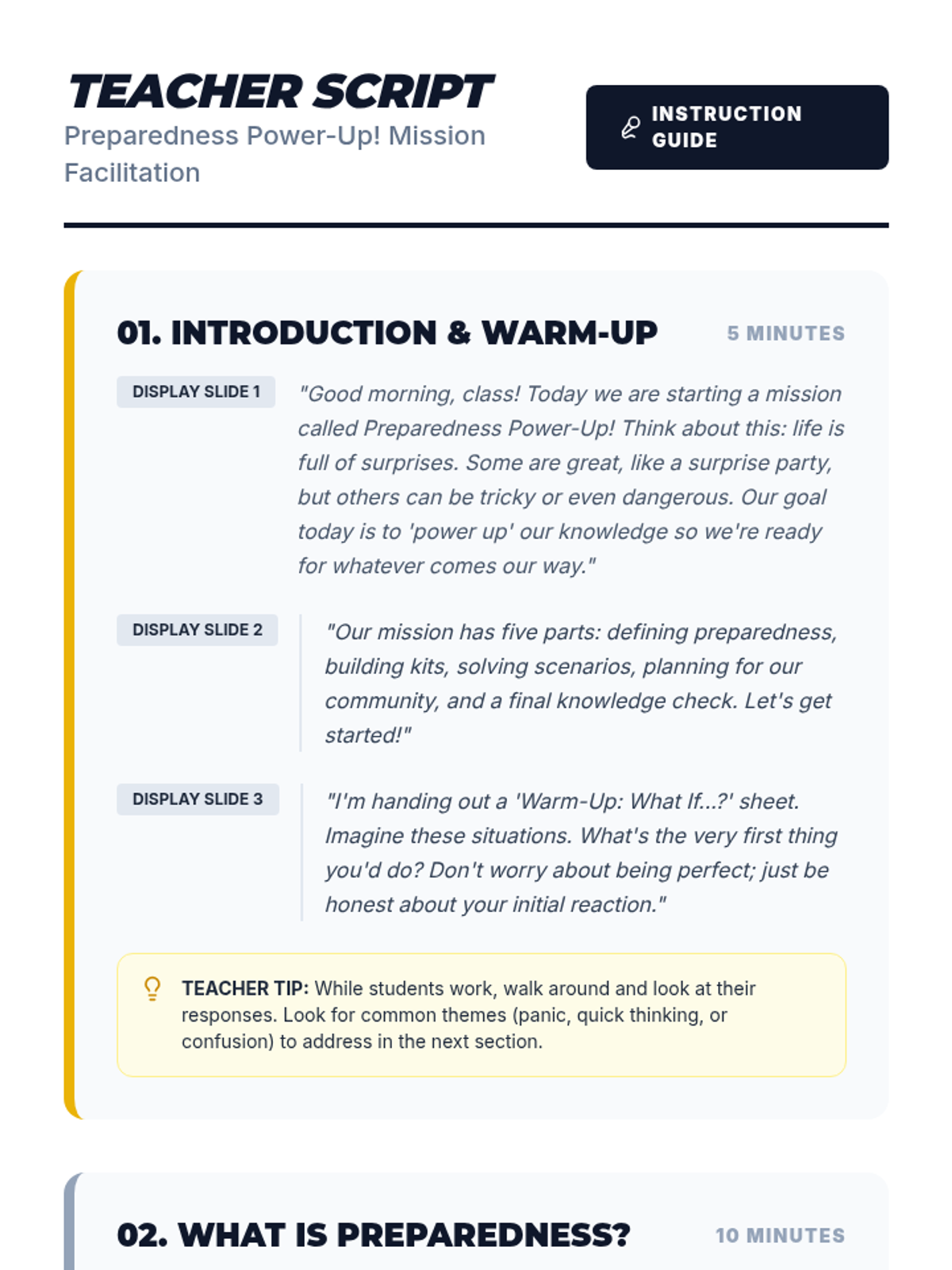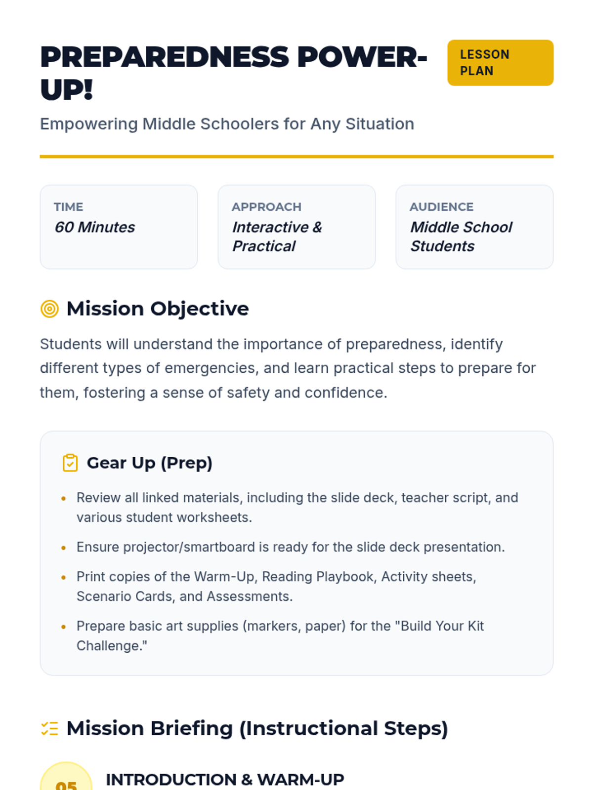 A 60-minute middle school lesson focused on essential preparedness skills, empowering students to handle everyday challenges and unexpected emergencies with confidence and safety.