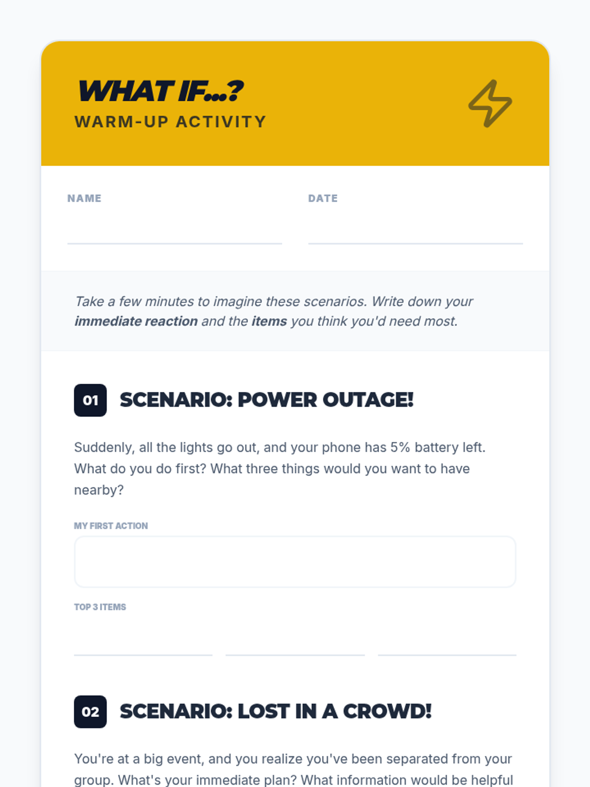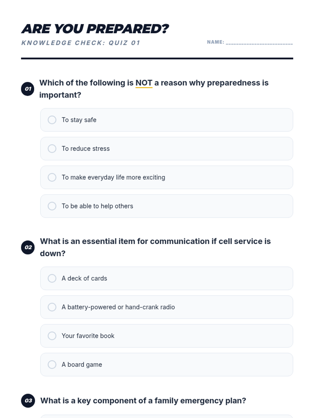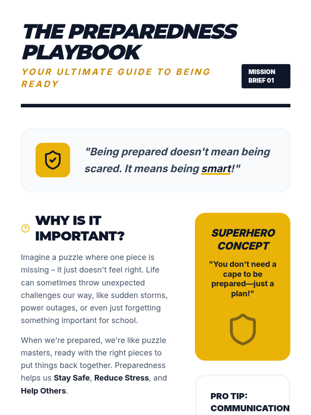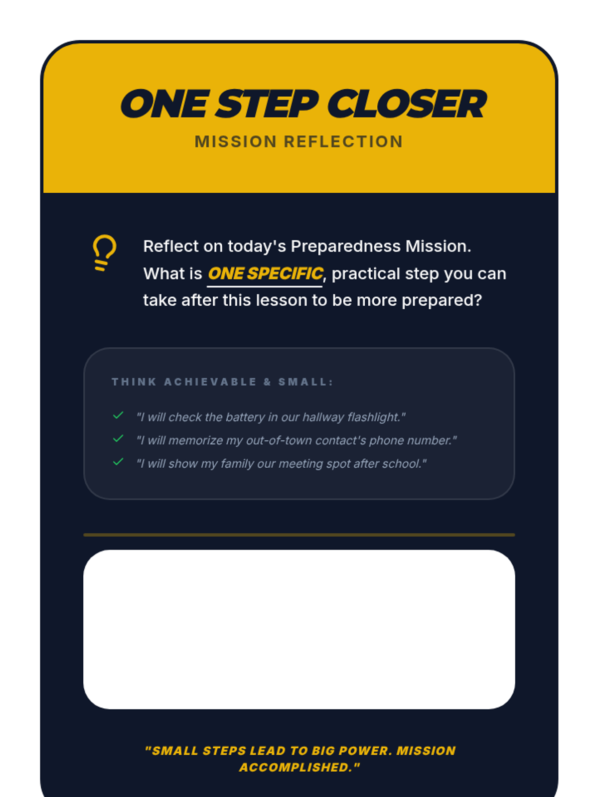 A 60-minute middle school lesson focused on essential preparedness skills, empowering students to handle everyday challenges and unexpected emergencies with confidence and safety.