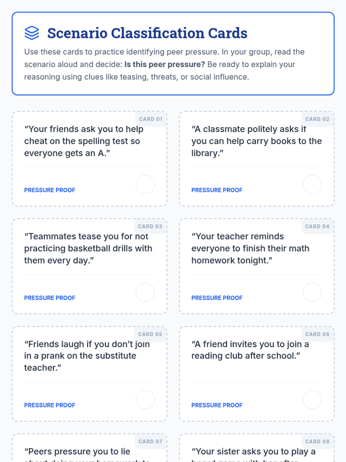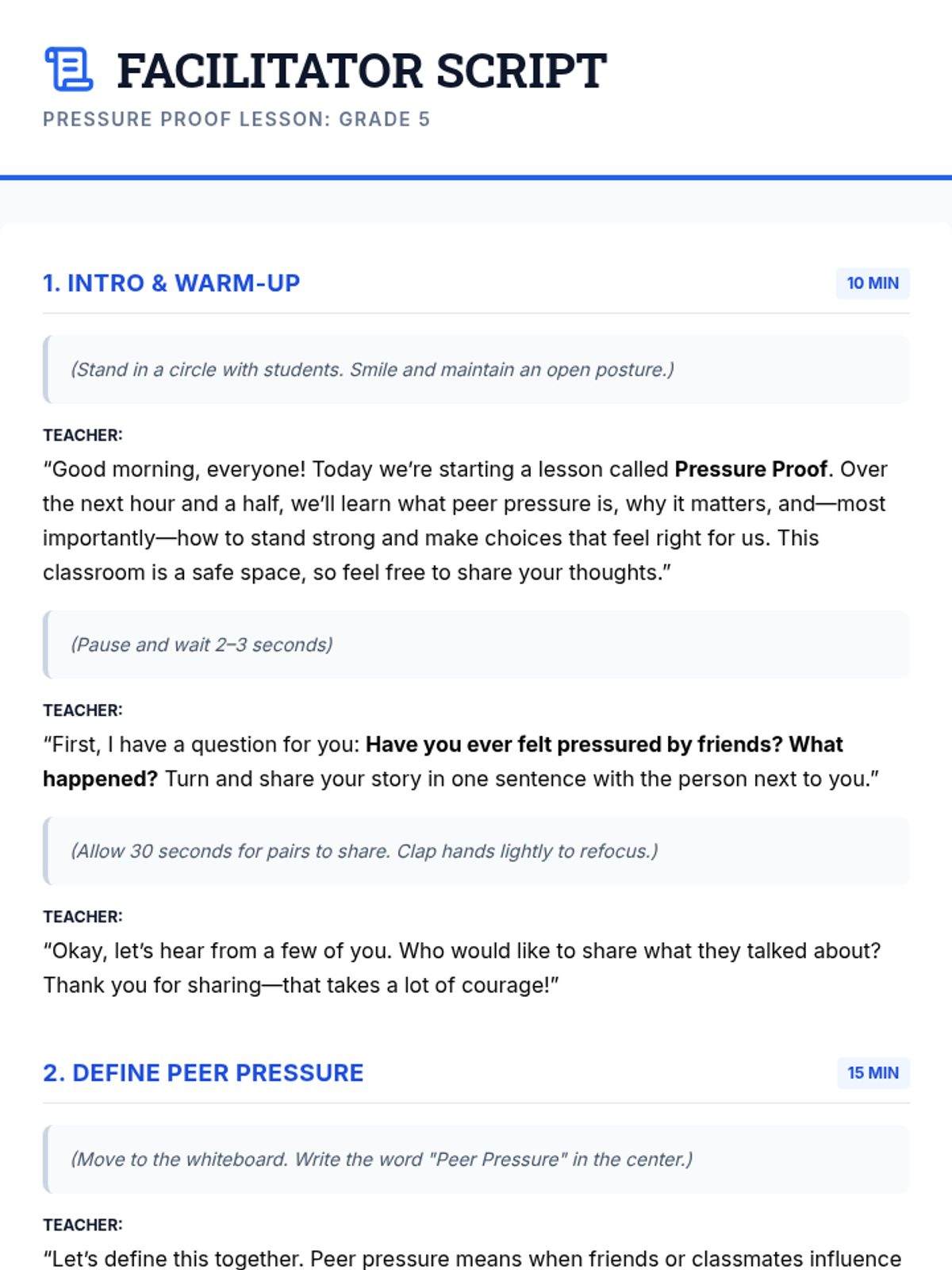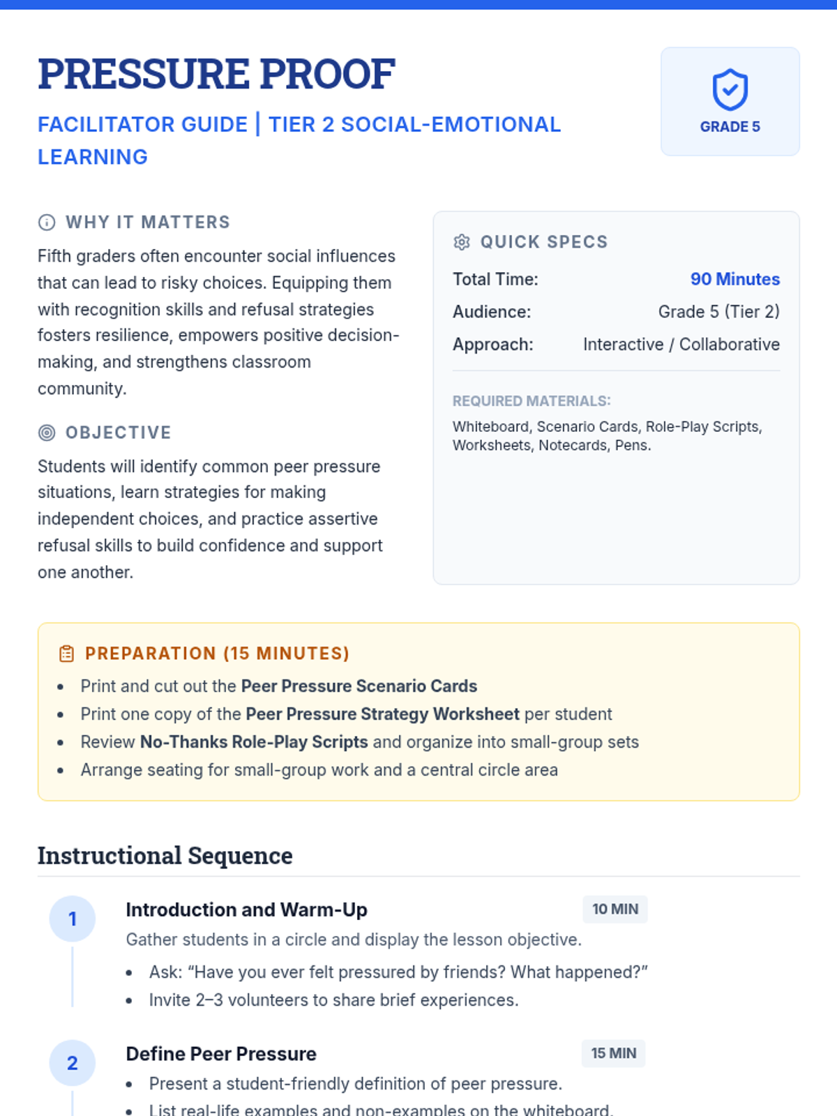 A 90-minute Tier 2 lesson for 5th graders focused on identifying peer pressure and developing assertive refusal strategies to make independent choices.