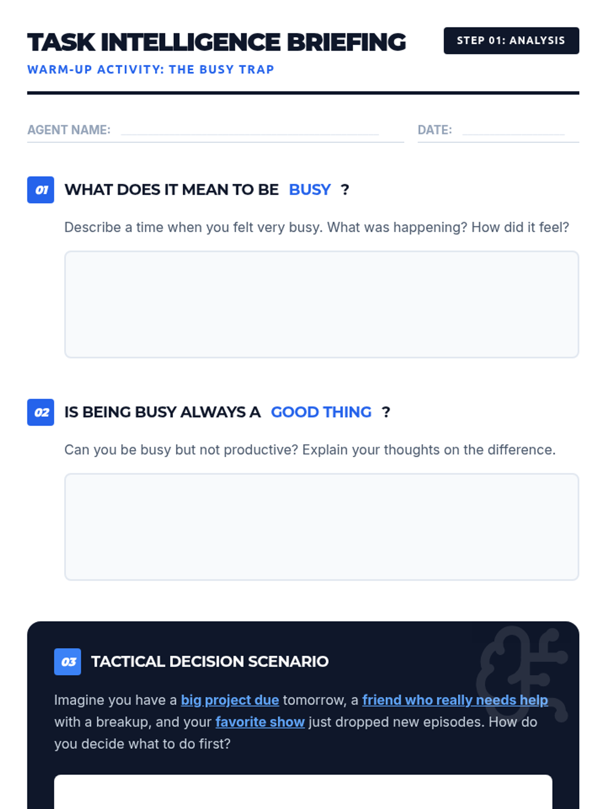 Focuses on the second 'P' (Purpose), guiding students to connect their daily actions to their deeper 'Why' to sustain effort when things get tough.