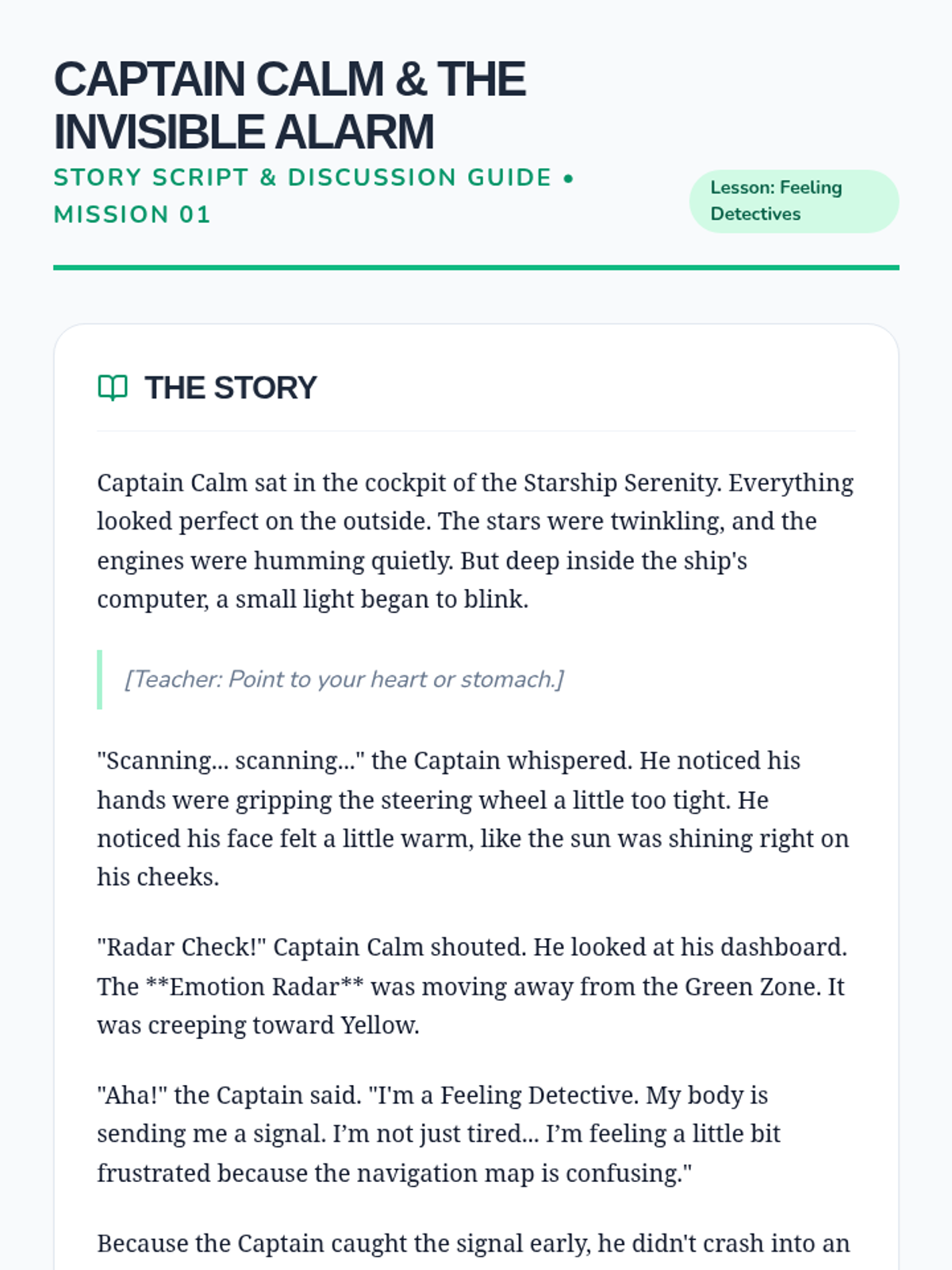 Introduction to identifying emotions using the 'Emotion Radar' and a visual feeling thermometer to help students recognize their internal state before it escalates.