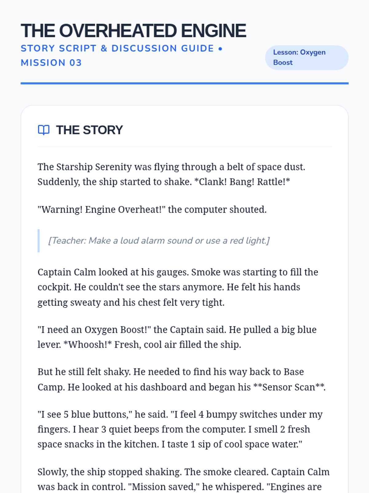 Teaching grounding skills and 5-4-3-2-1 breathing techniques to help students stabilize their emotions when they feel their 'engines' overheating.