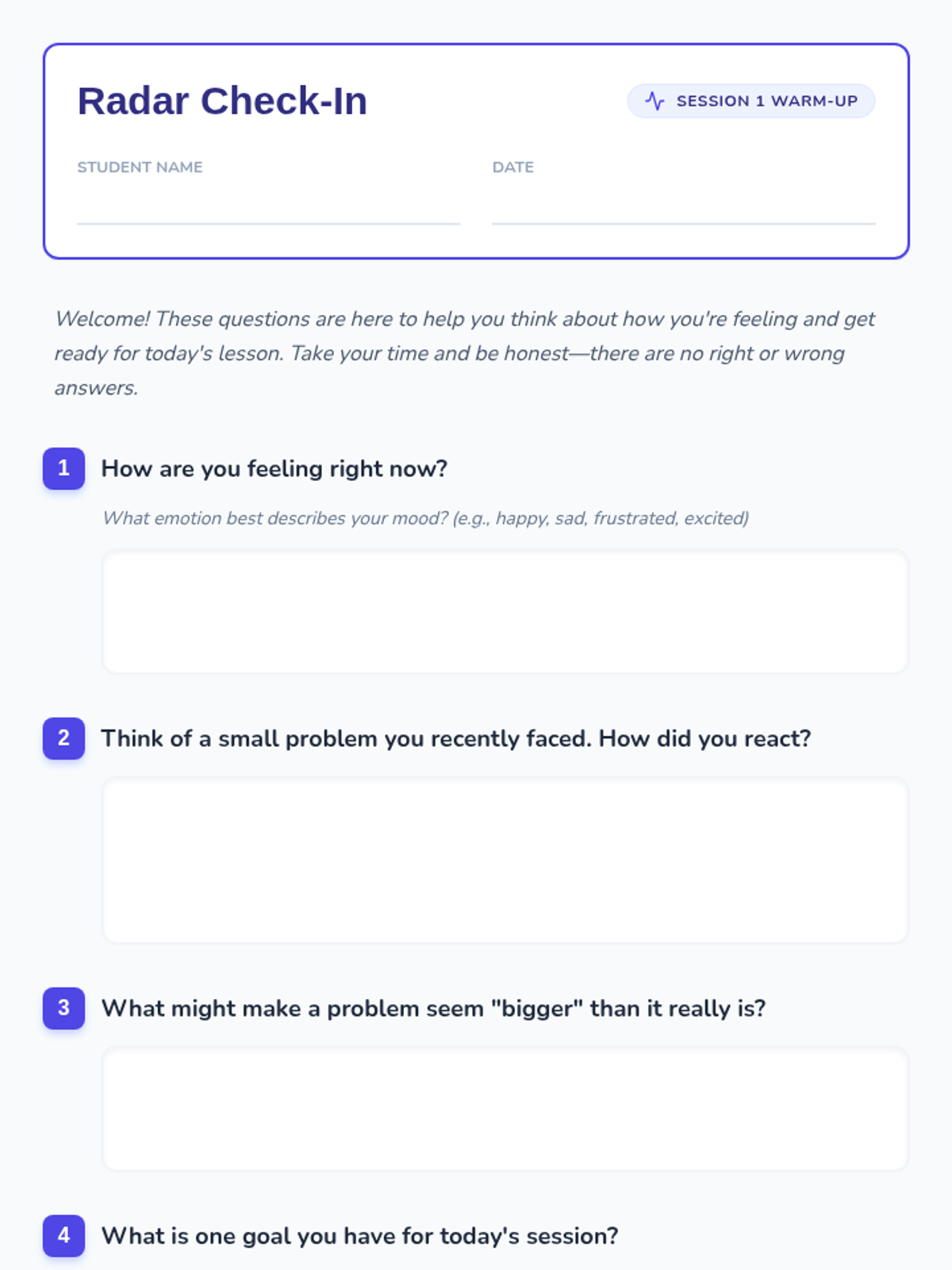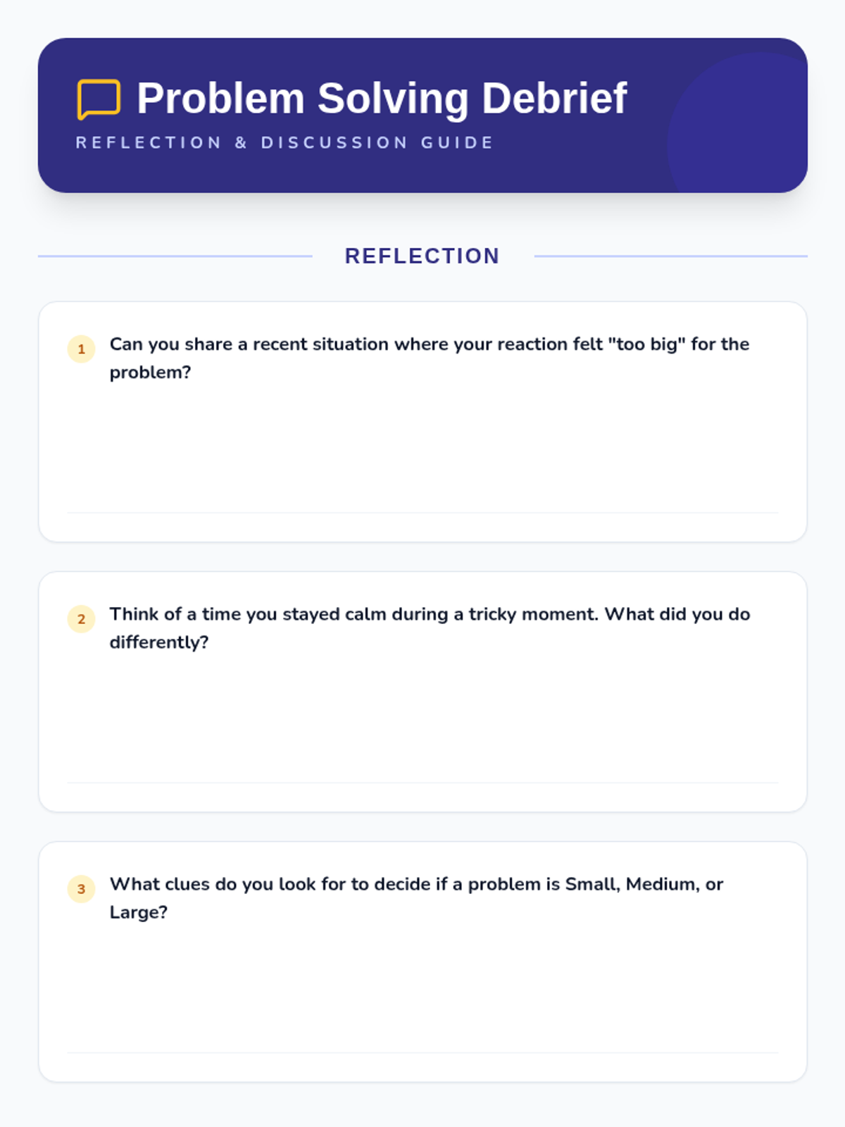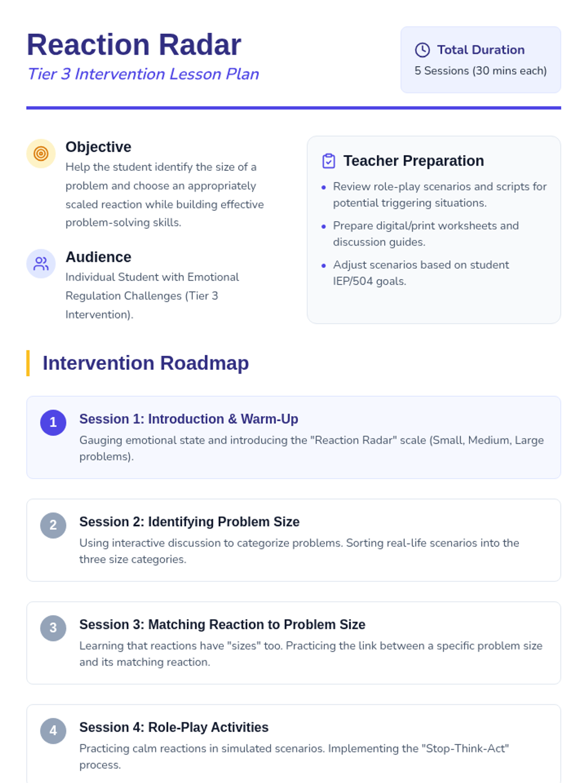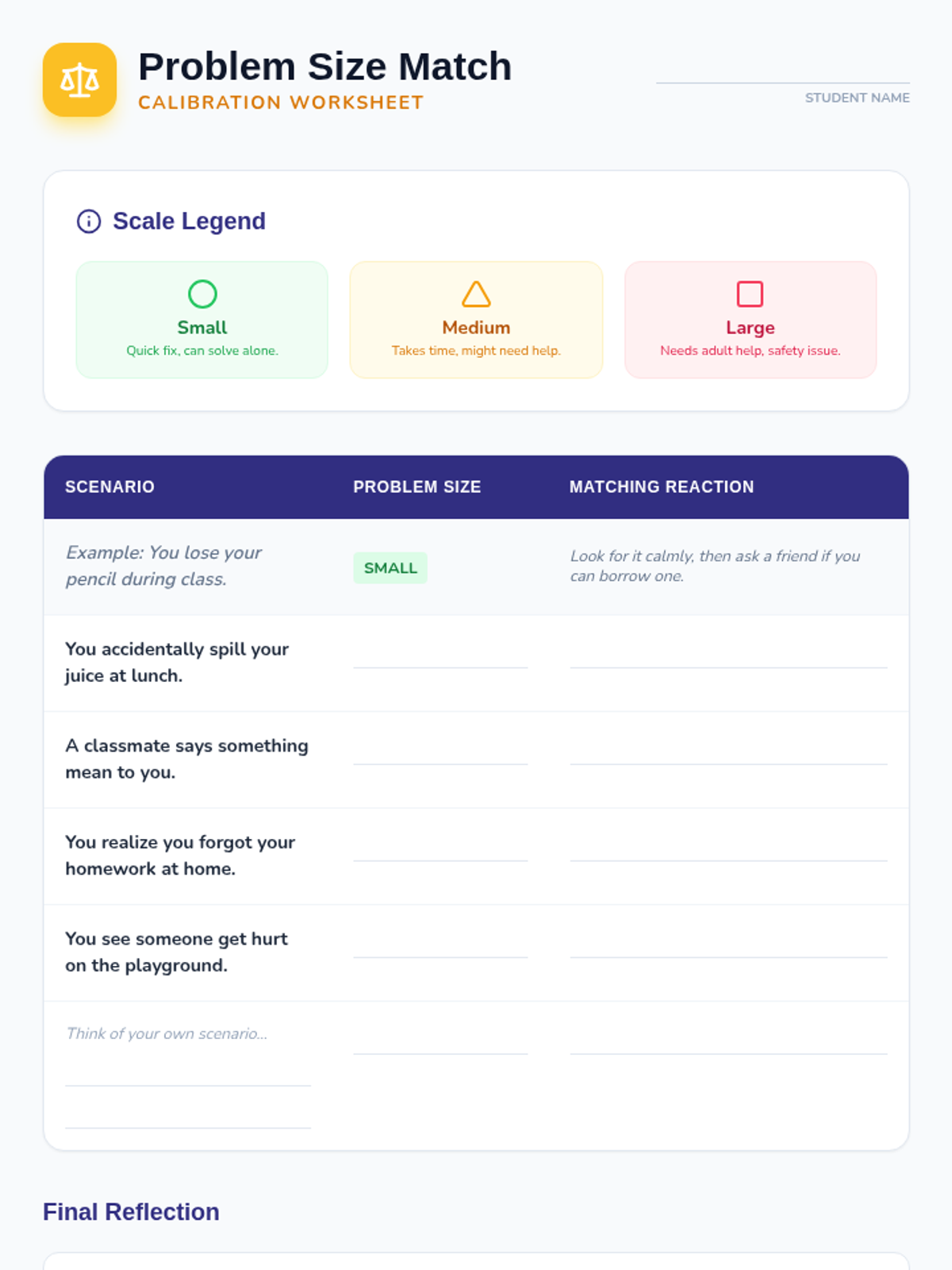 A comprehensive 5-session intervention sequence for individual students to learn how to categorize problems by size and match them with proportionate emotional reactions.