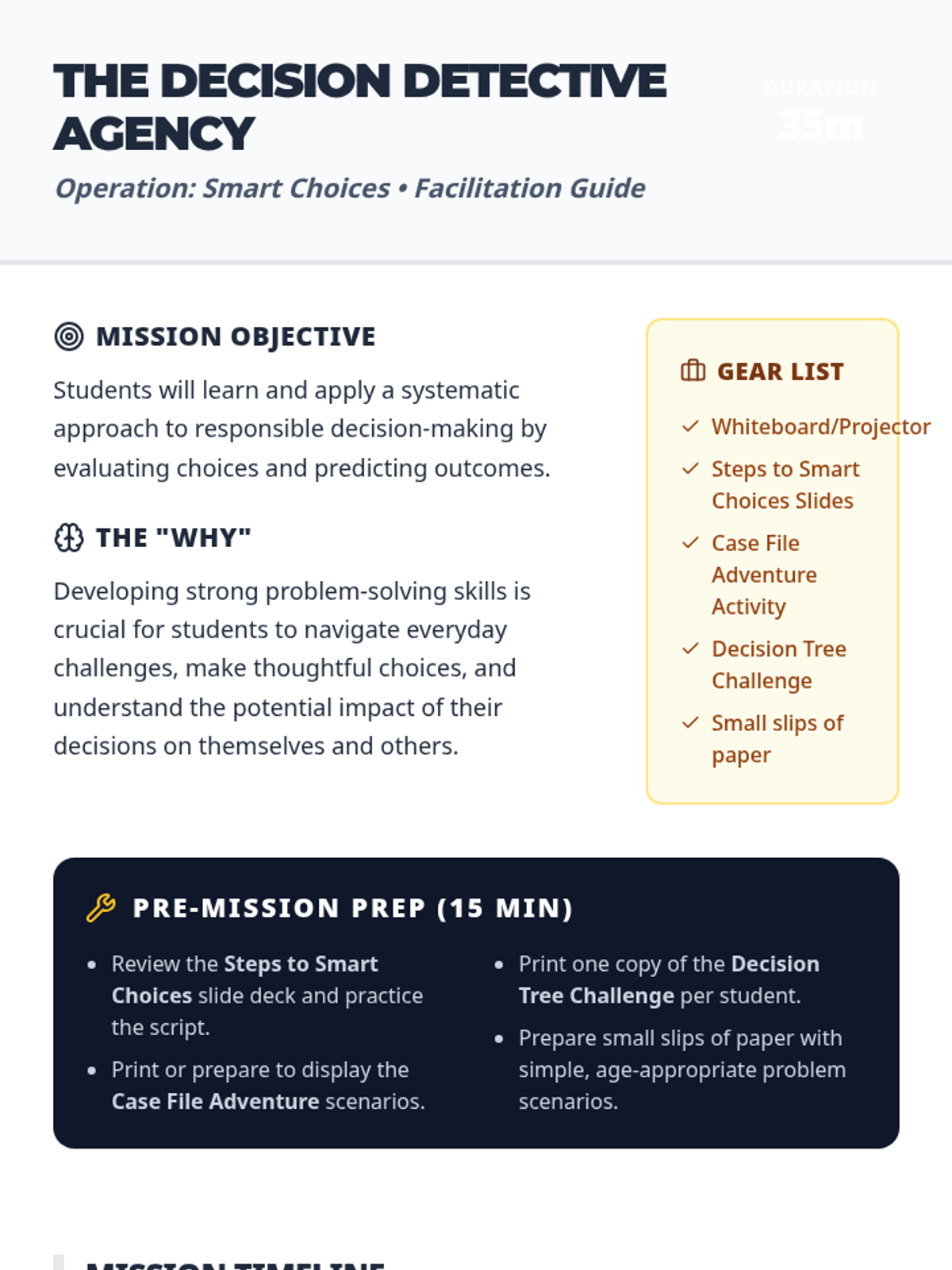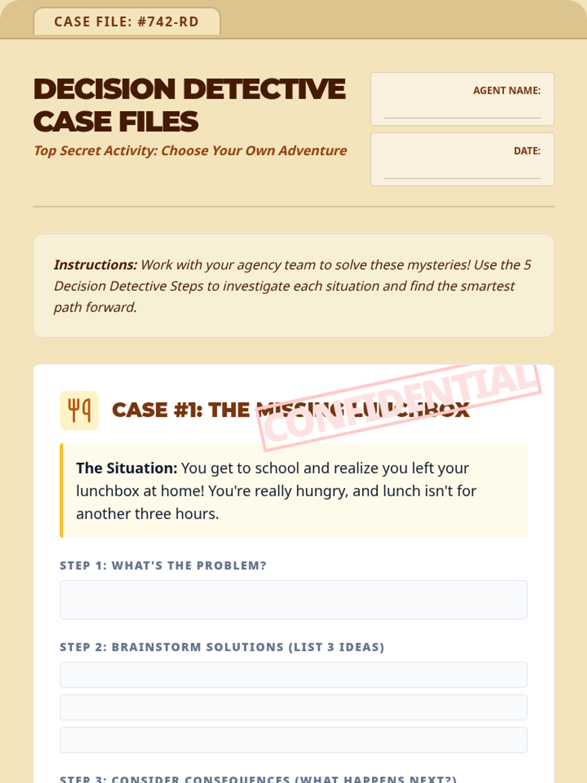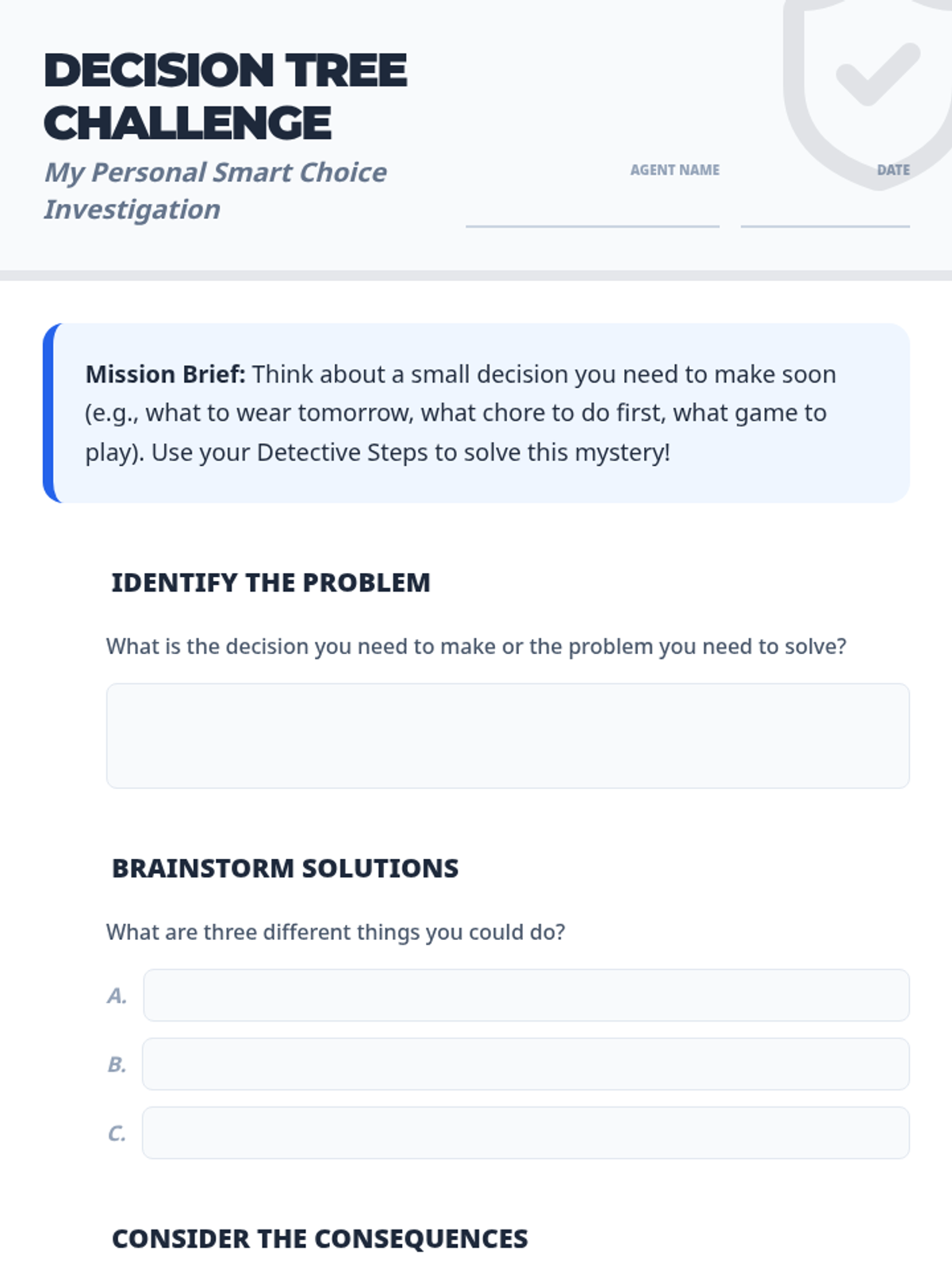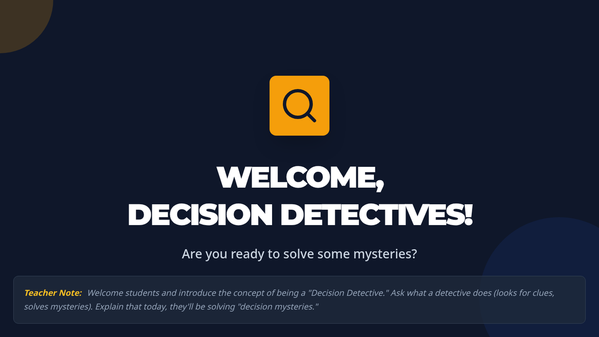 A systematic approach to responsible decision-making for 4th graders, teaching them to evaluate choices and predict outcomes using the 'Decision Detective' framework.