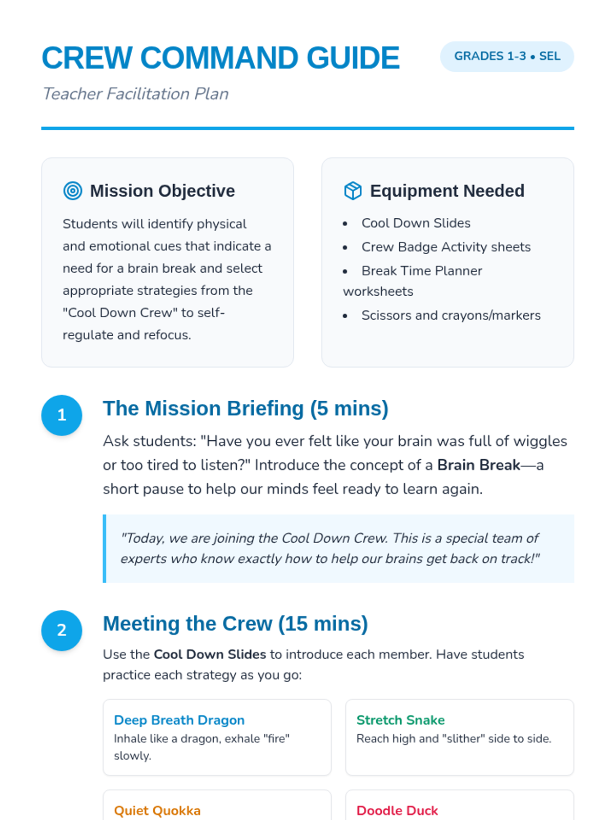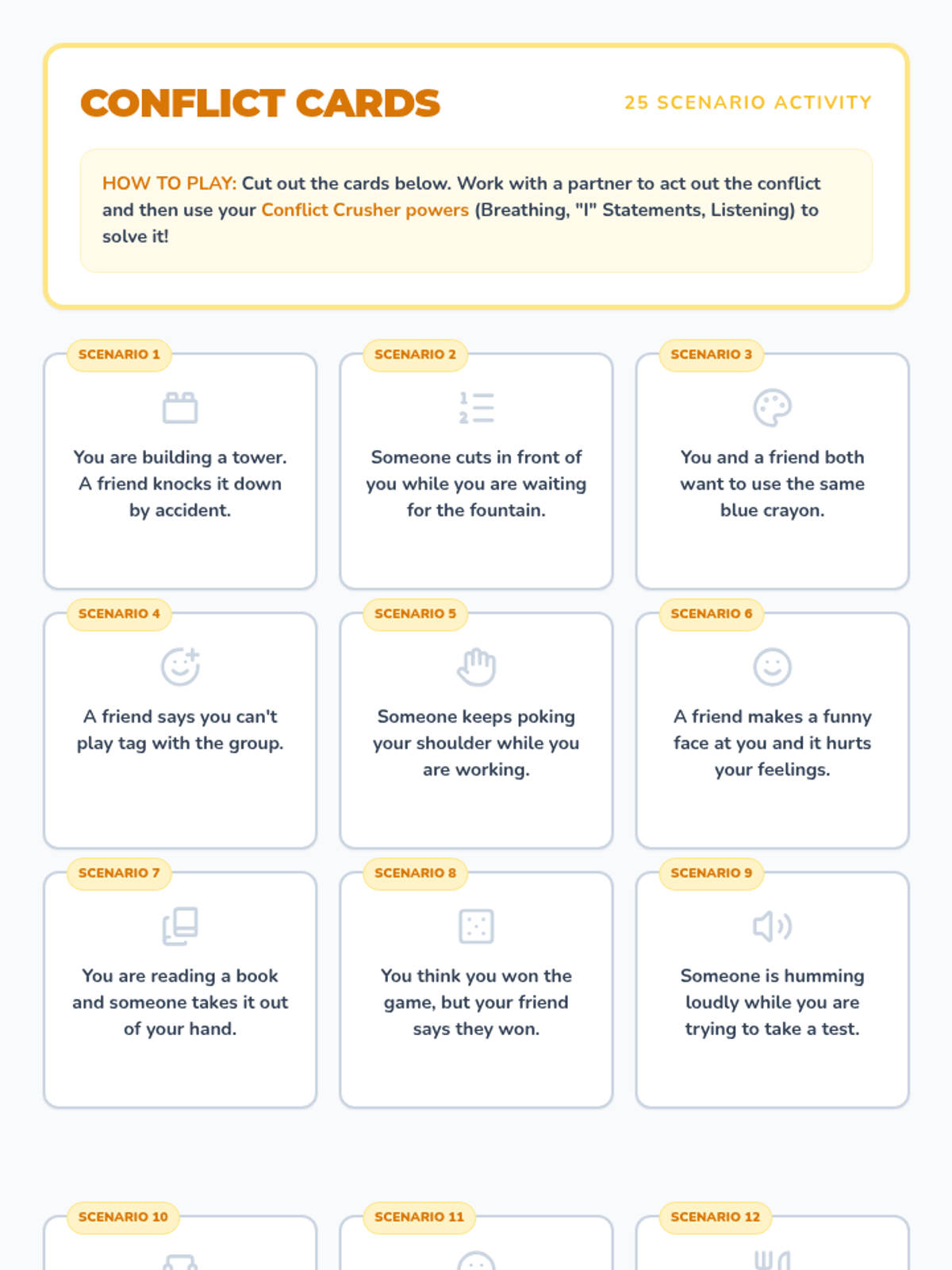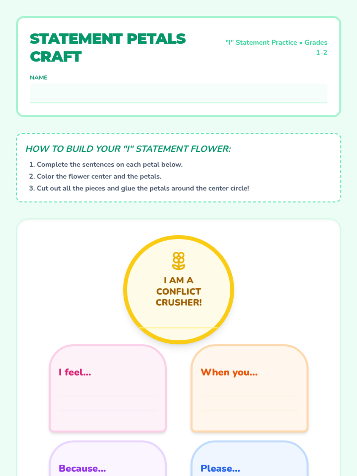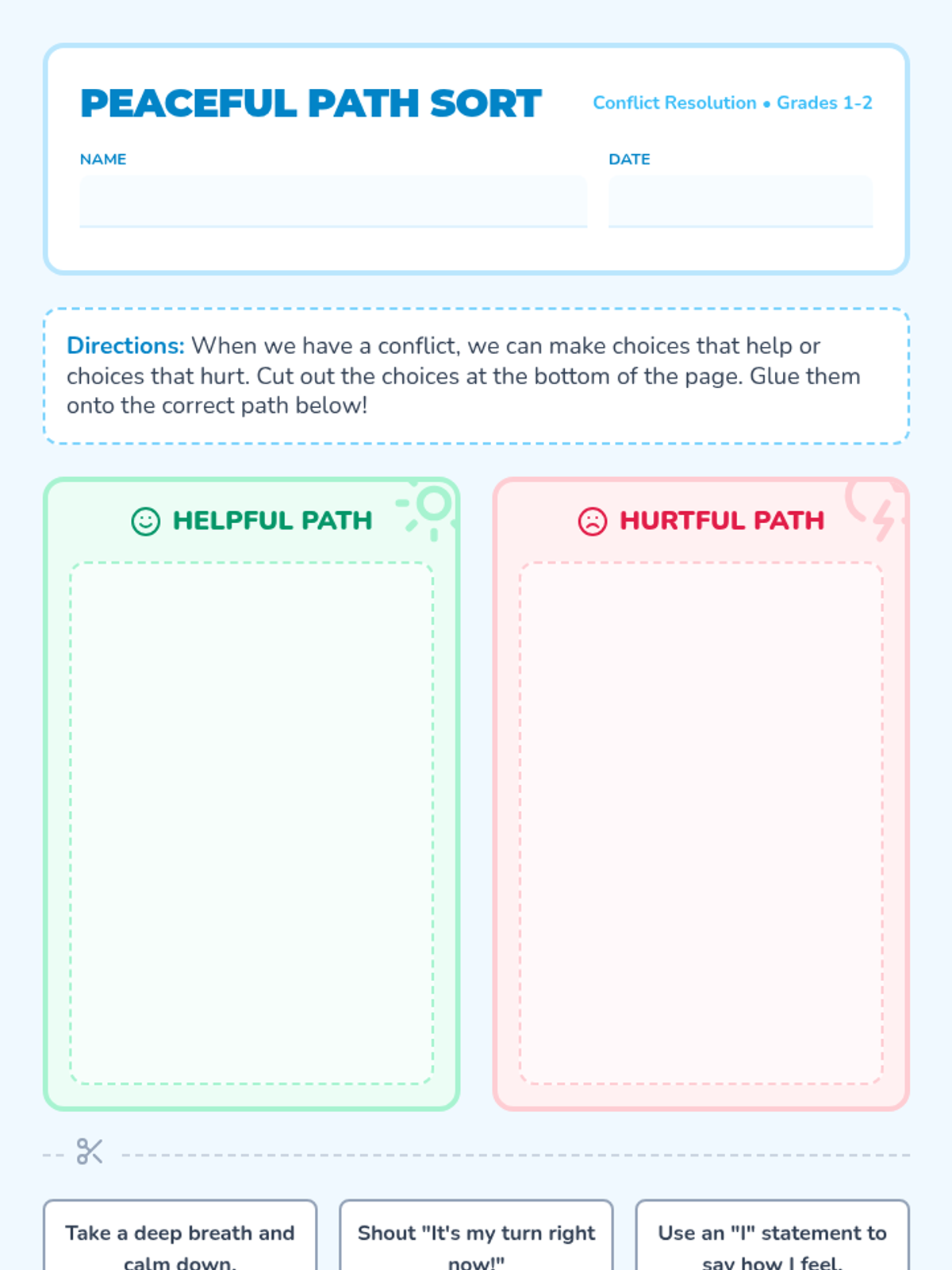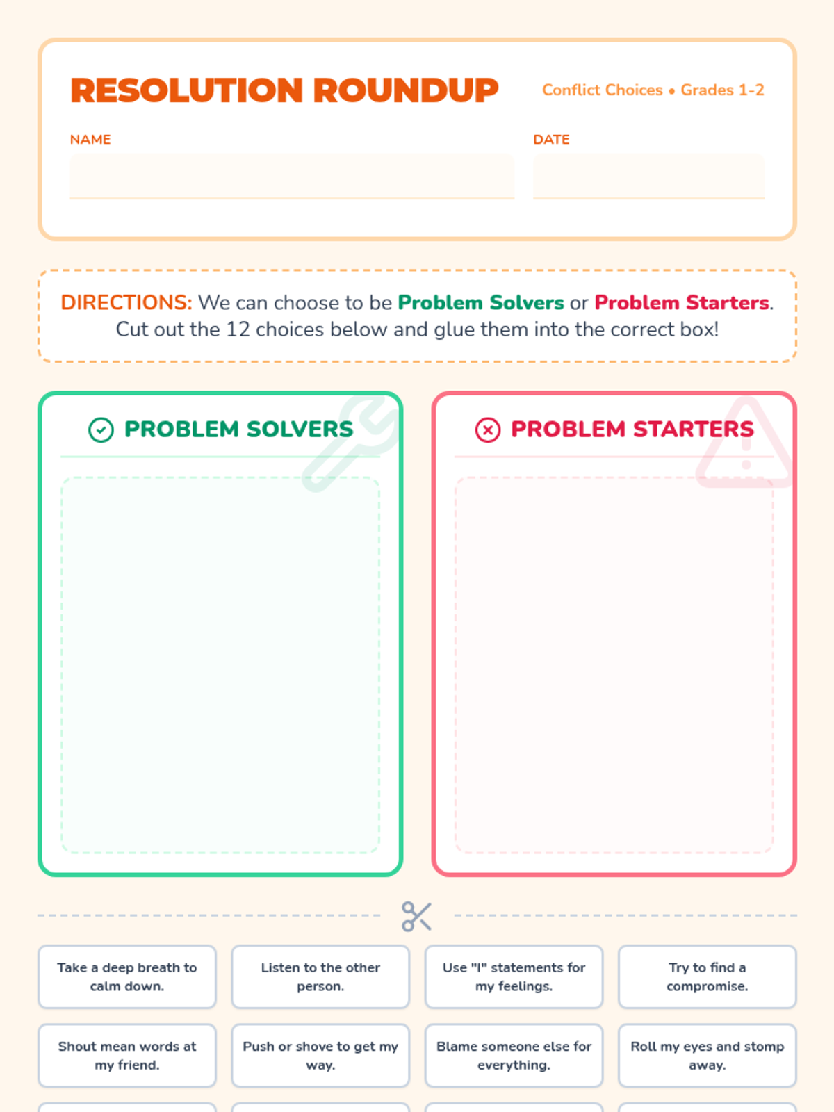 A collaborative problem-solving lesson for first graders where they learn to identify problems, brainstorm solutions, and work together through hands-on challenges. Students will practice communication and compromise as they join the 'Problem Solvers Club' to tackle group-based scenarios.