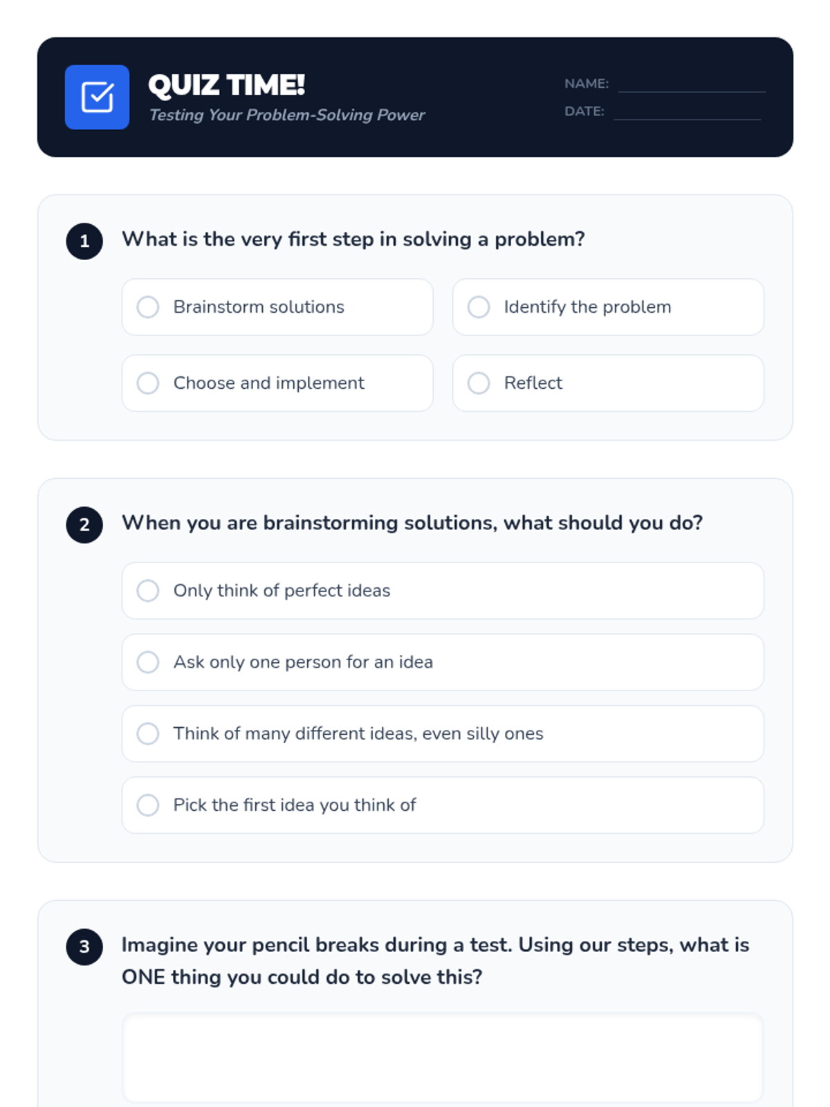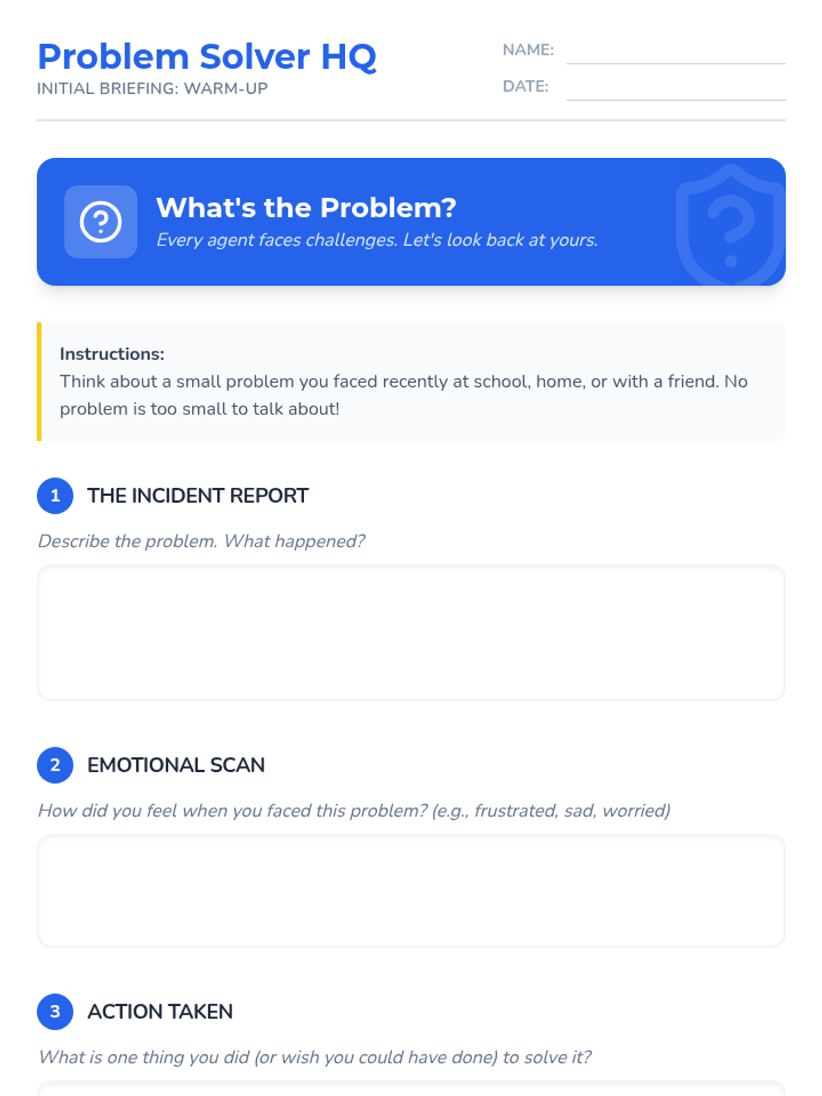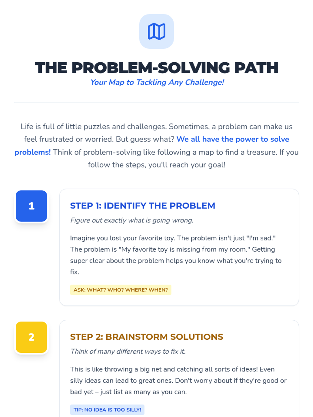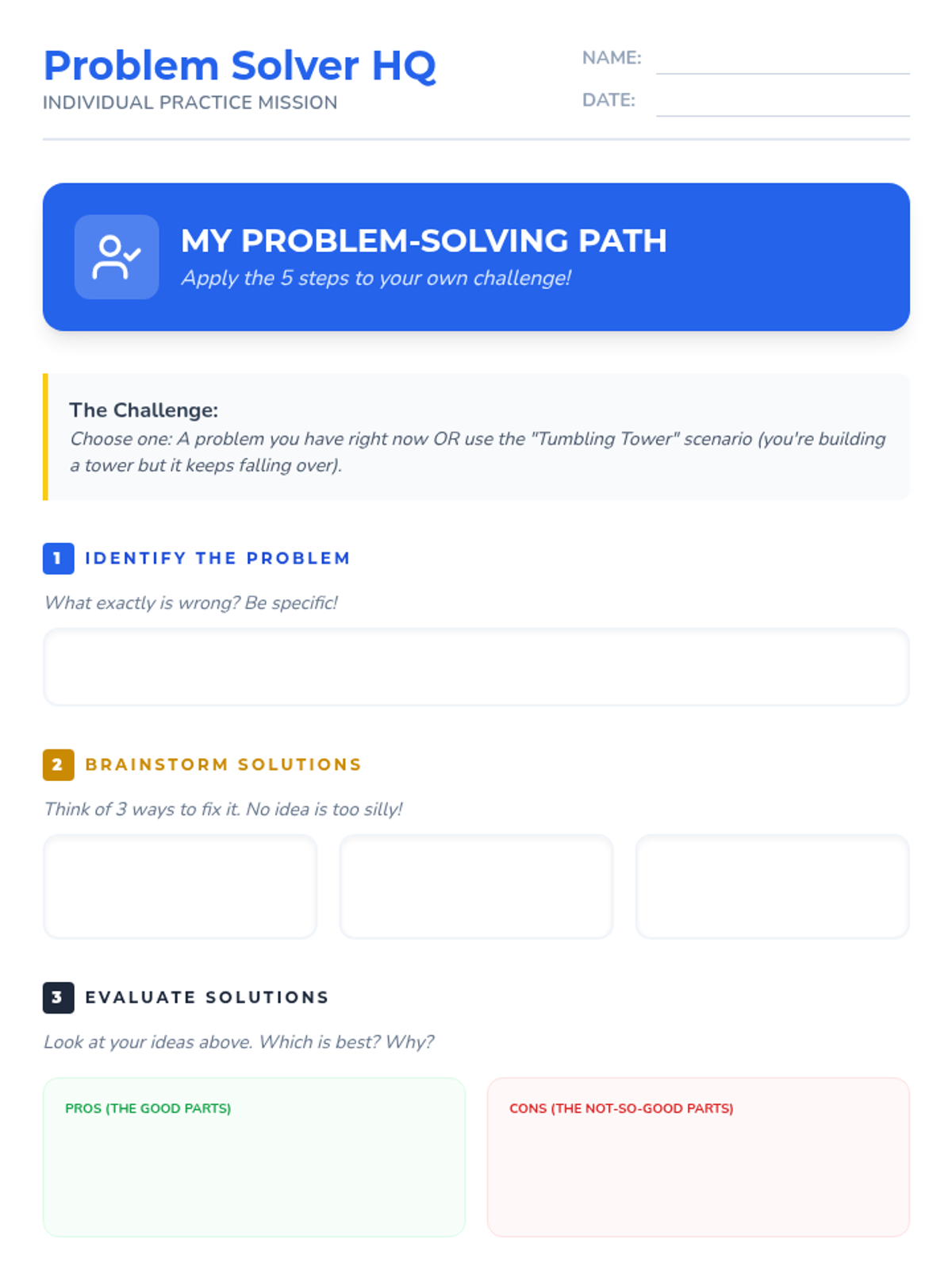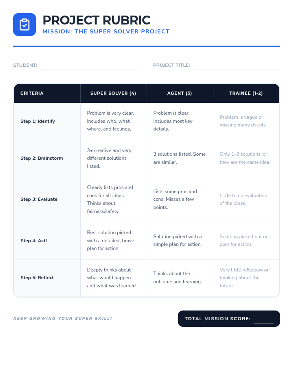 A Tier 1 SEL lesson for Primary 3-4 students that teaches a structured 5-step approach to solving everyday problems through interactive activities, discussions, and personal reflection.