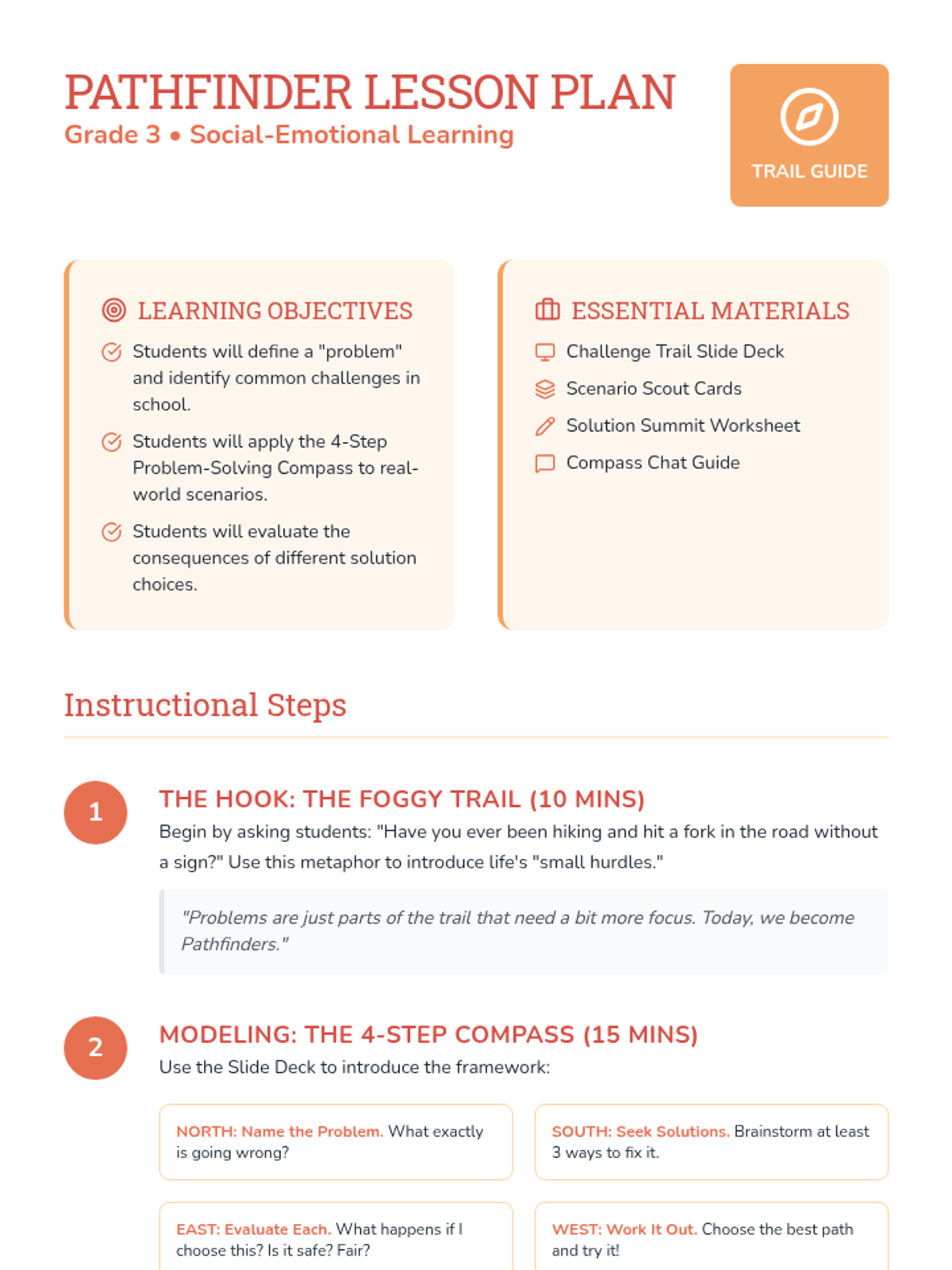This lesson equips 3rd Grade students with fundamental problem-solving skills, empowering them to approach everyday challenges with confidence and collaboration. Students will learn a step-by-step framework to identify problems, brainstorm solutions, and evaluate consequences.