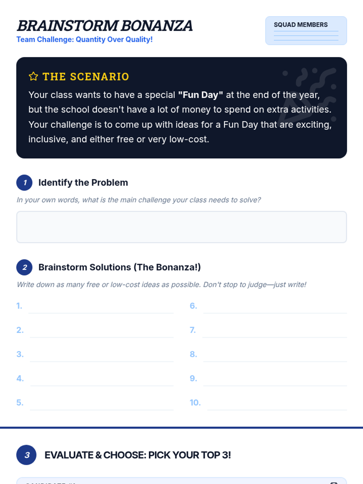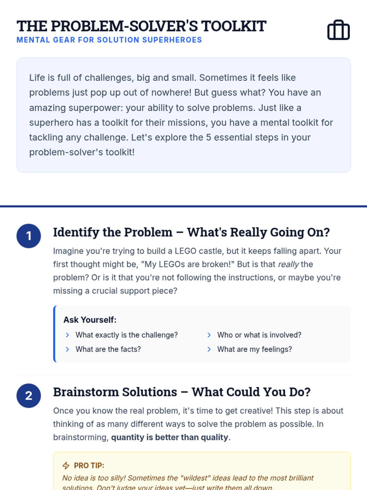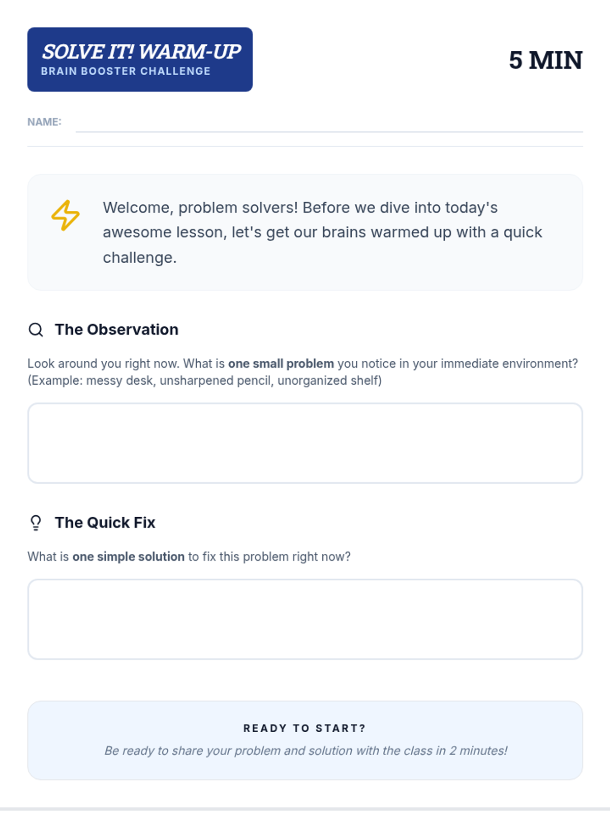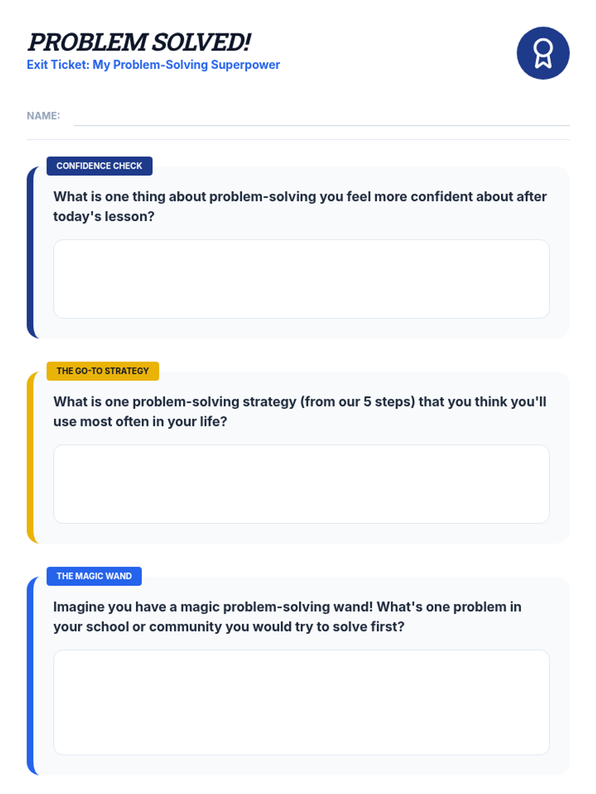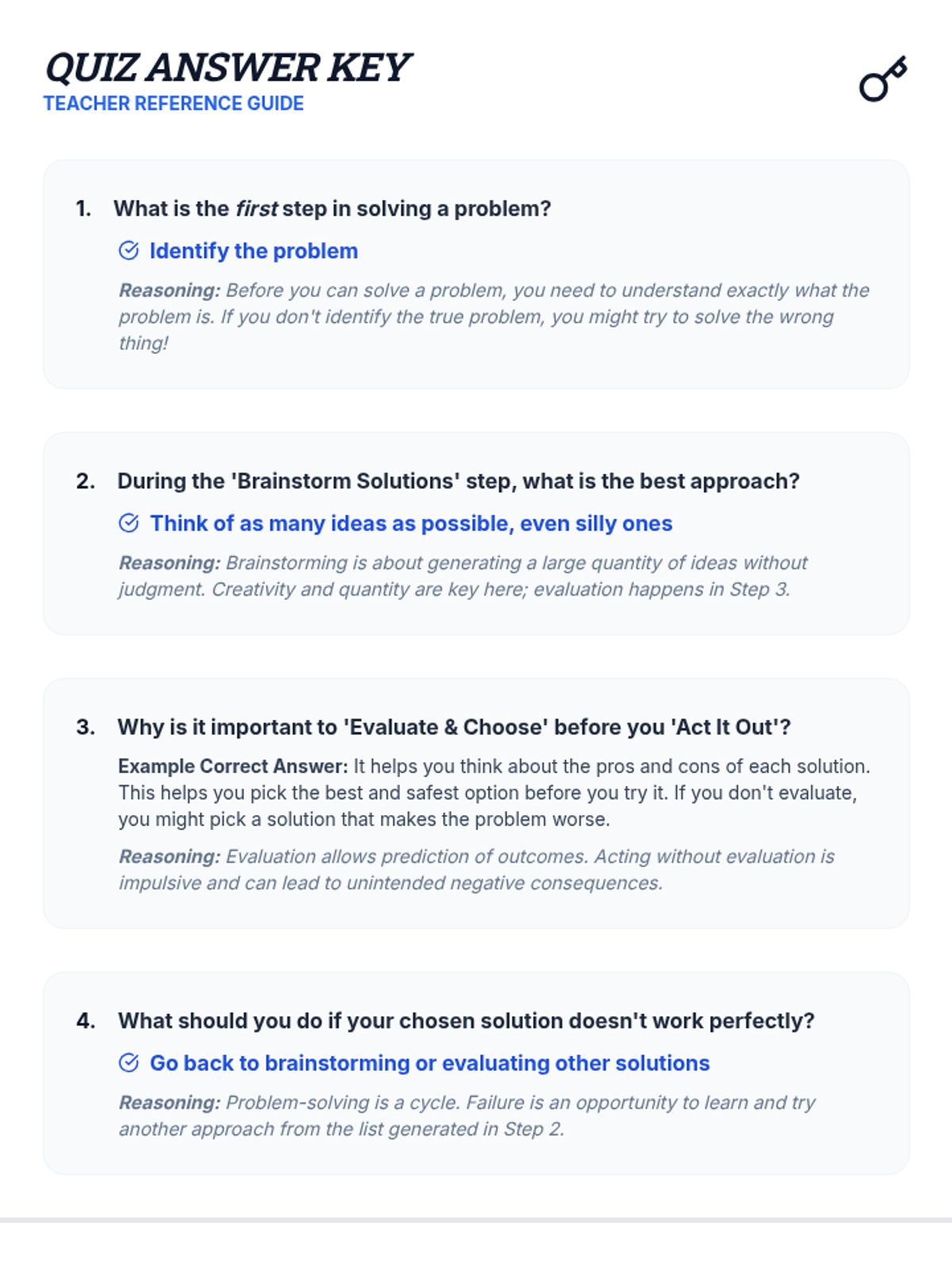 This lesson equips 5th and 6th-grade students with essential problem-solving strategies through a 'Playbook' approach. Students will learn to identify problems, brainstorm creative solutions, and evaluate outcomes using interactive games and real-world scenarios.