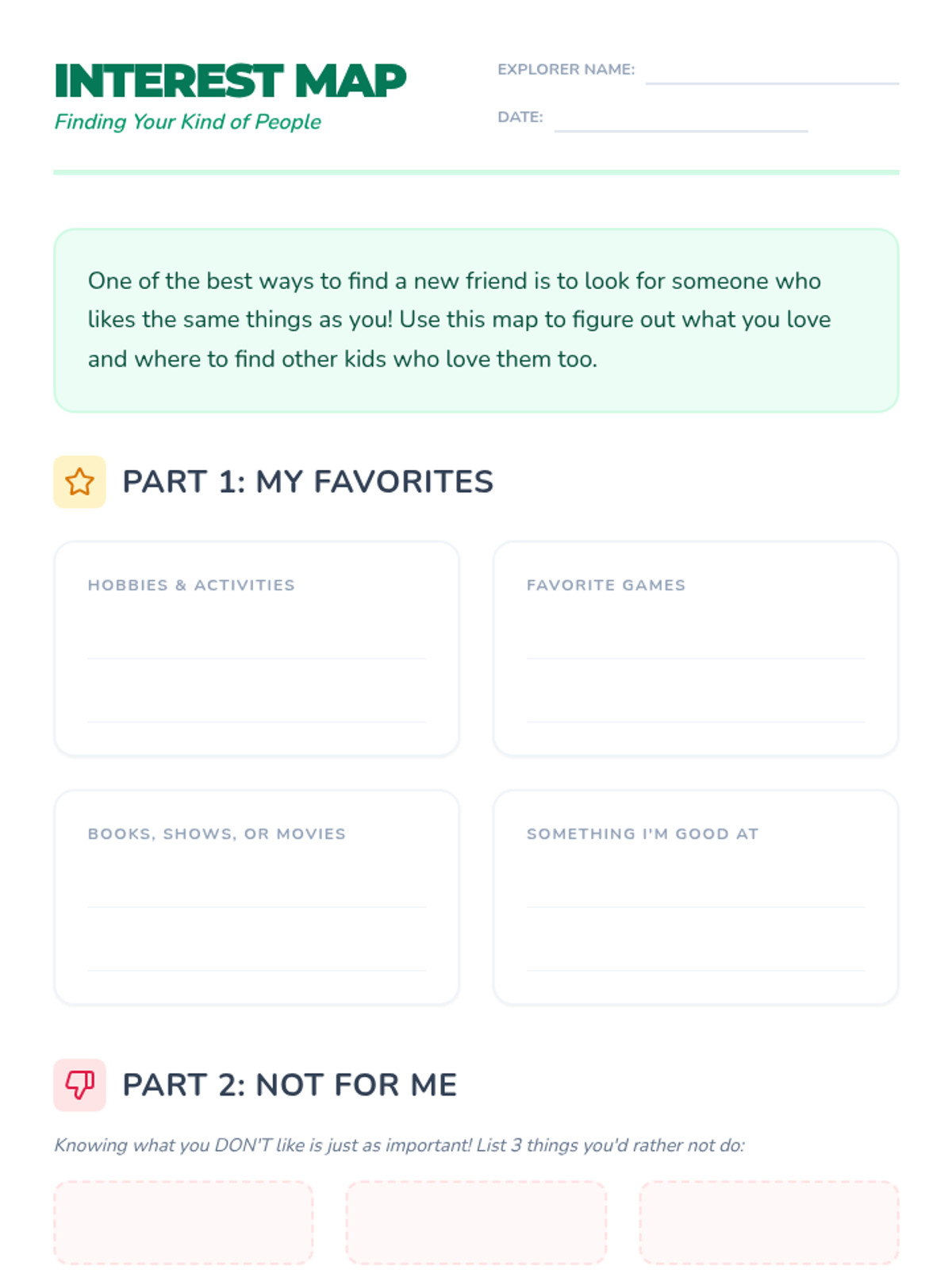 A social-emotional learning lesson designed to help a 3rd-grade student build confidence in starting friendships, overcoming the fear of rejection, and practicing specific conversation starters.
