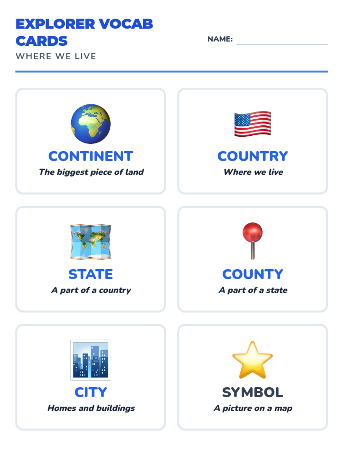 A visual-heavy lesson introducing map symbols, the hierarchy of place from city to continent, and major landforms and landmarks around the world.