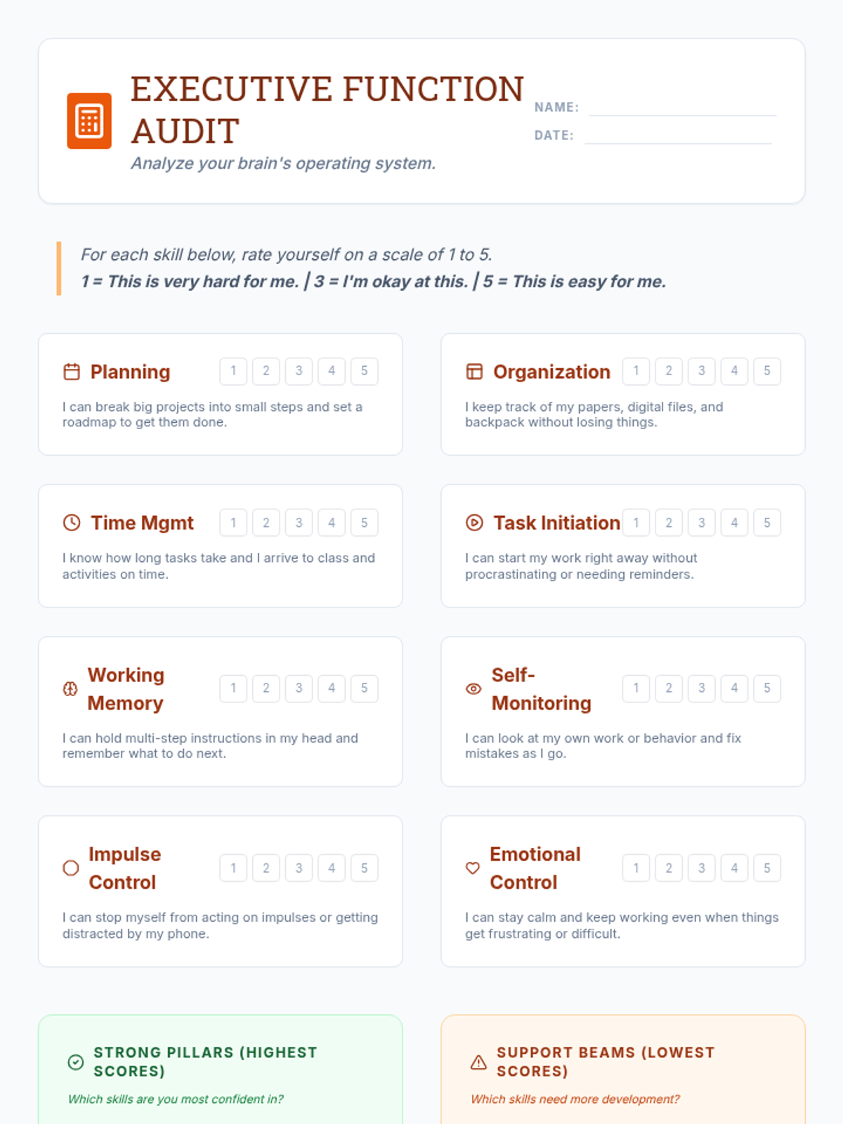 Understand how the brain's executive functions work and identify personal strengths and areas for growth in organization.