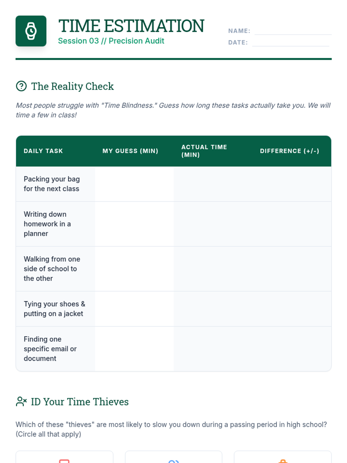 Master time estimation, tackle the "tardy habit," and build routines for punctual transitions.