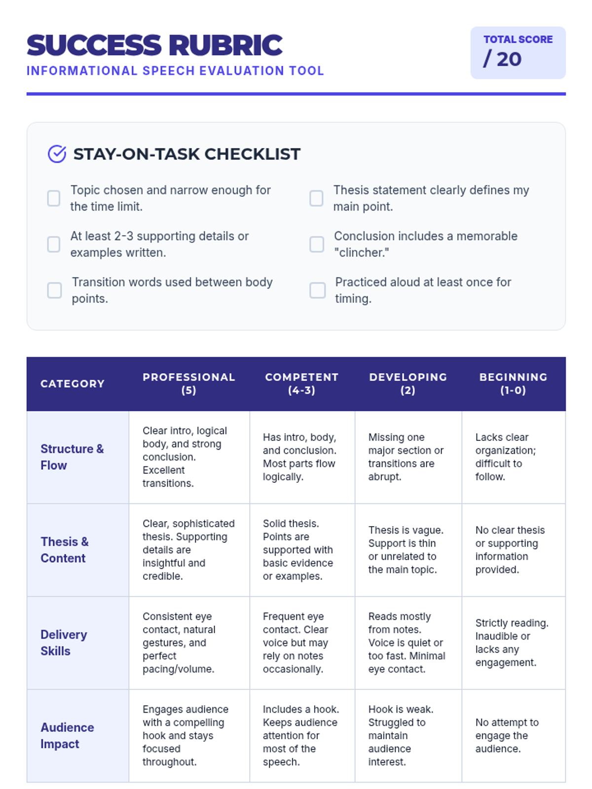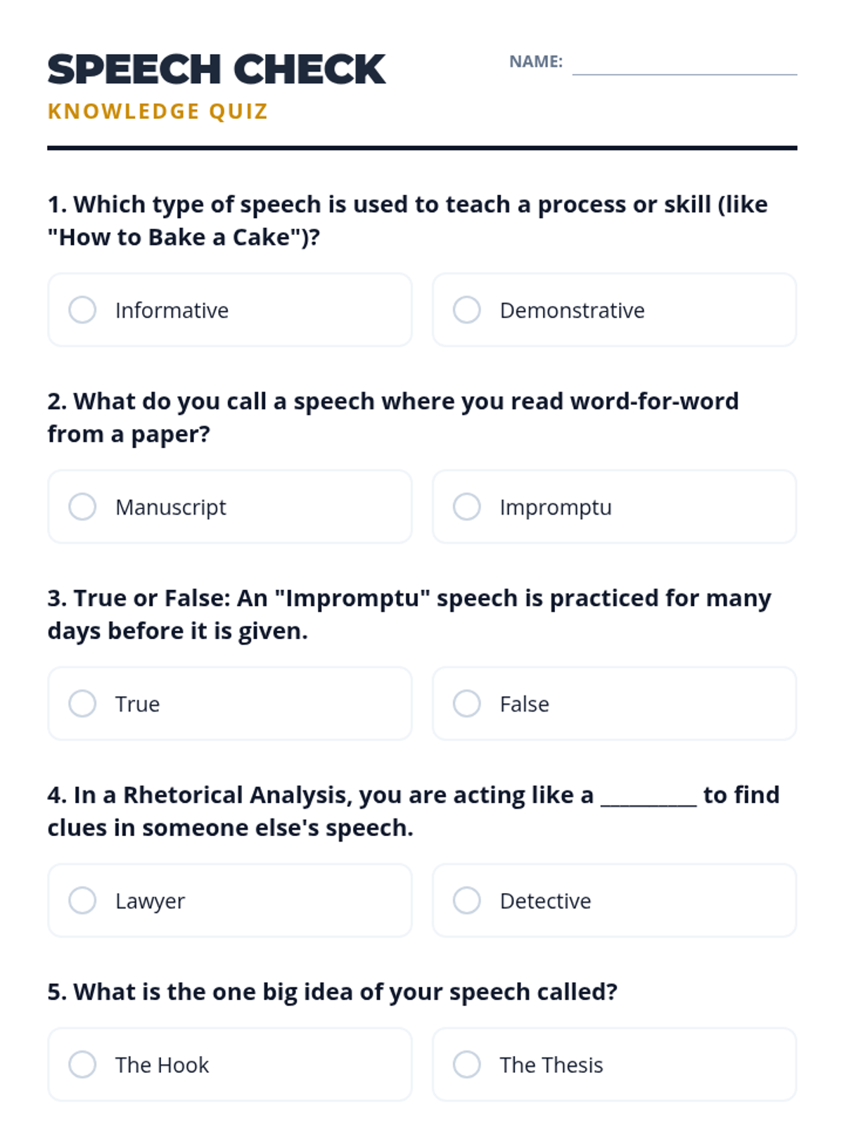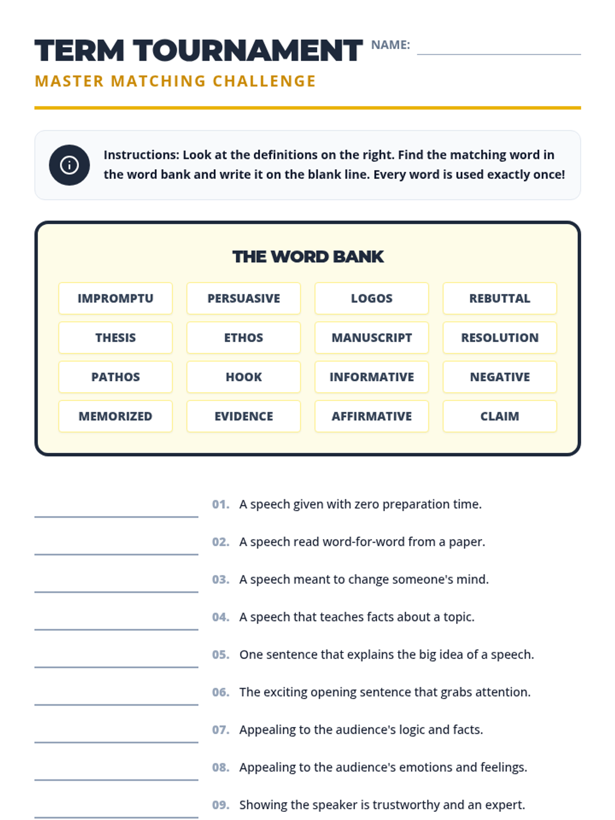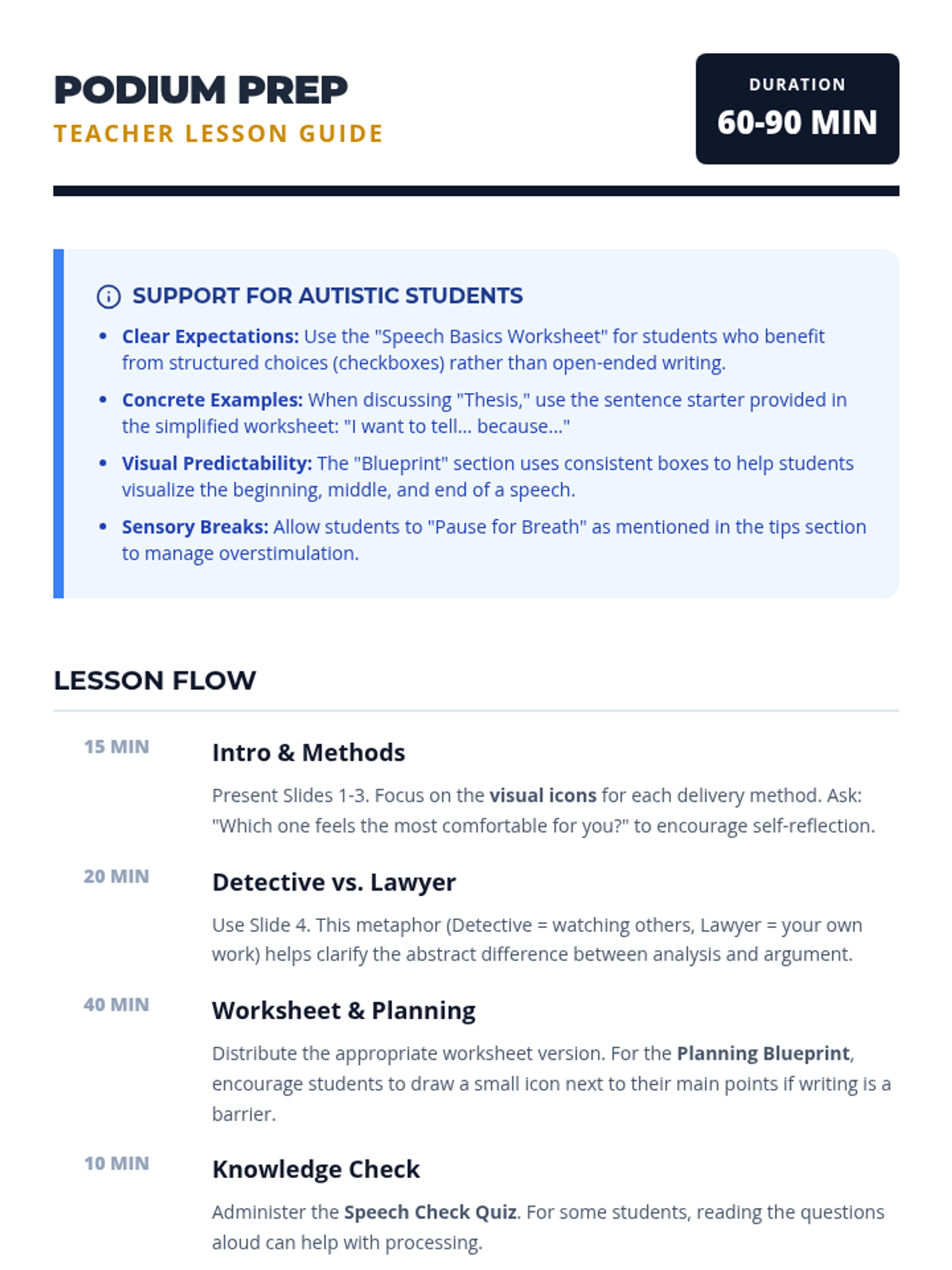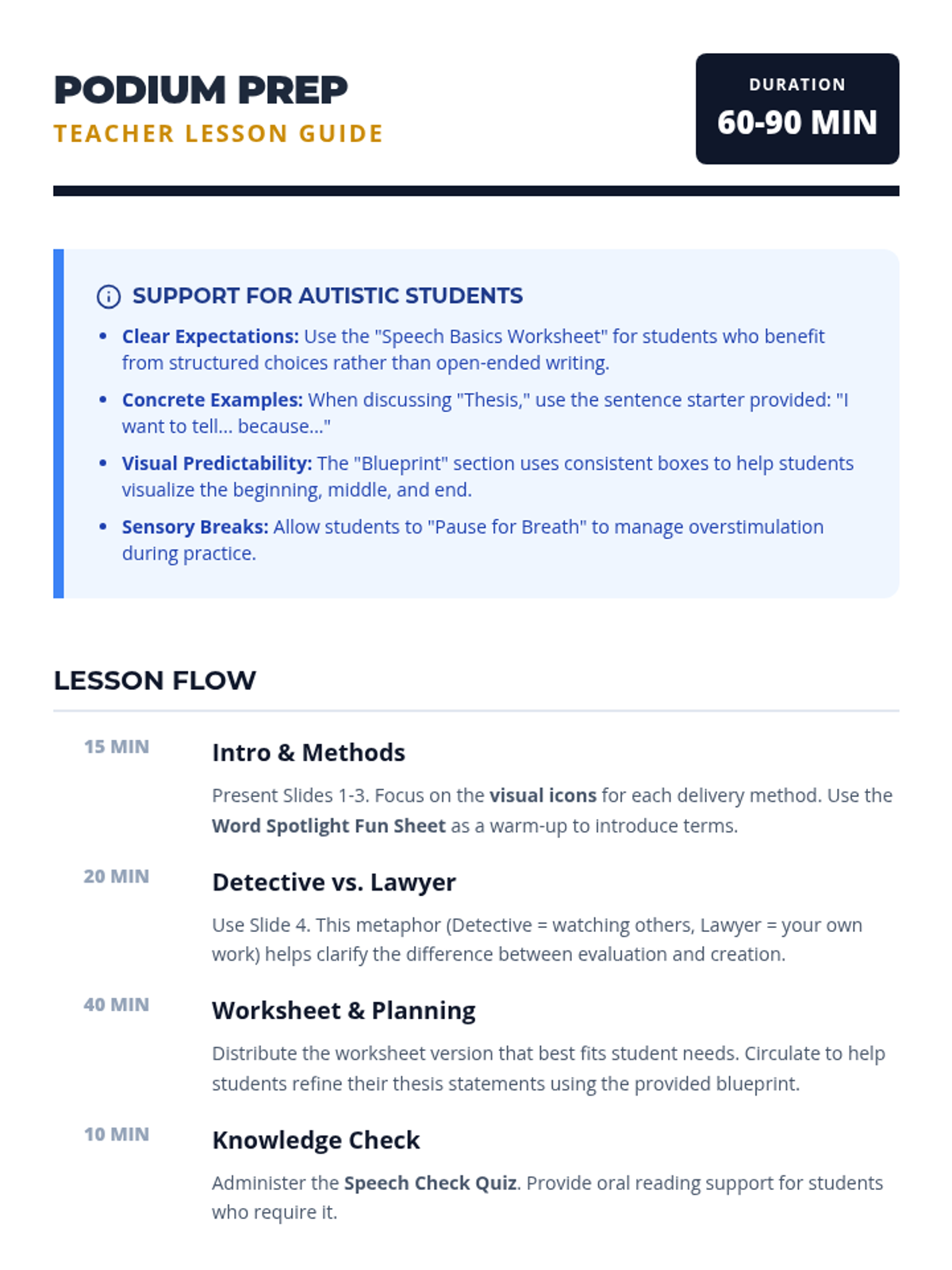 An introductory week for 11th grade Speech and Debate focusing on the fundamentals of persuasion, argument structure, and public speaking formats. Students will master the rhetorical triangle, identify logical fallacies, and practice impromptu delivery.