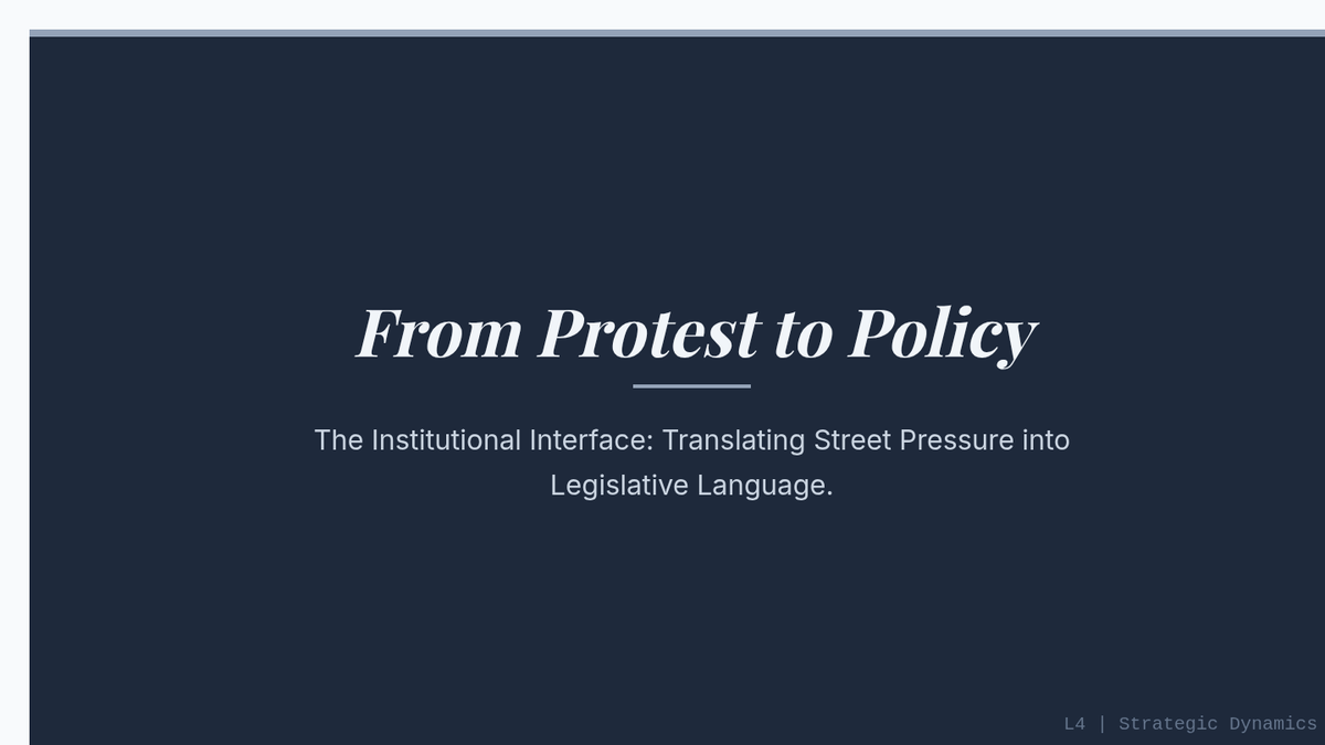 Traces the path from street-level demands to formal legislative language, analyzing the institutional interfaces and compromises required for policy reform.