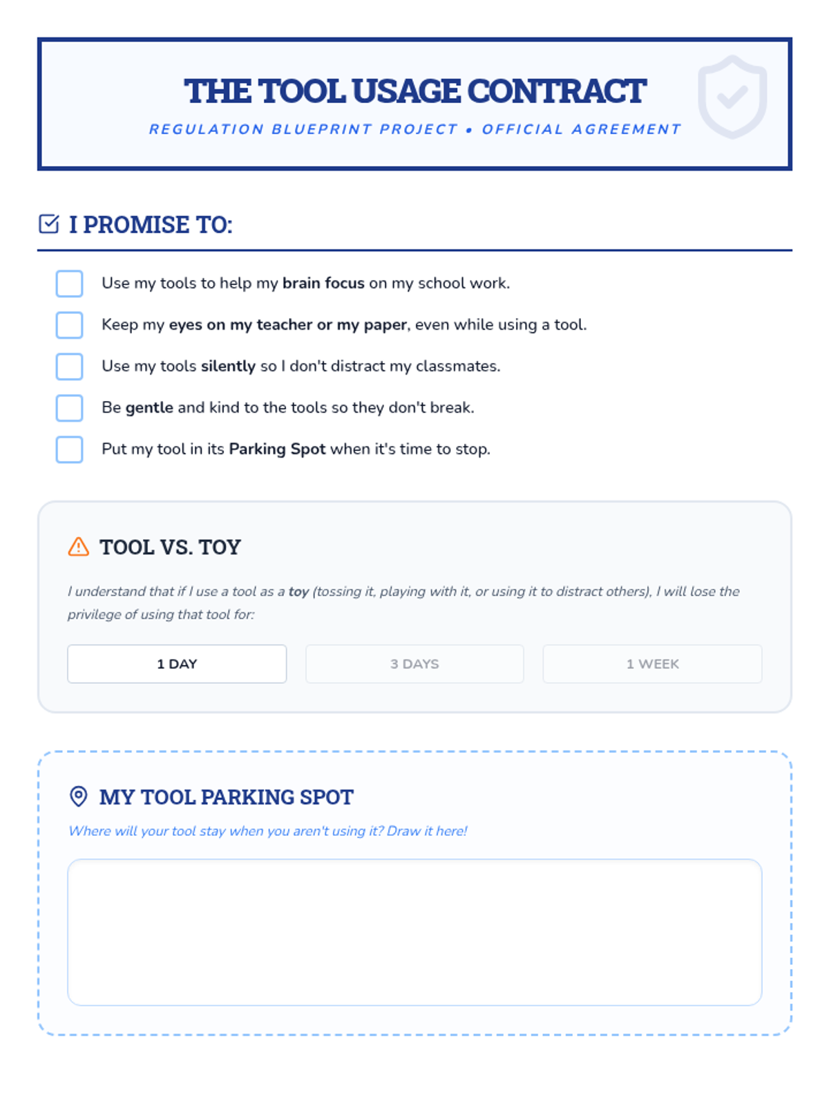 Students establish protocols for tool care and usage, distinguishing between tools and toys through case studies and contracts.