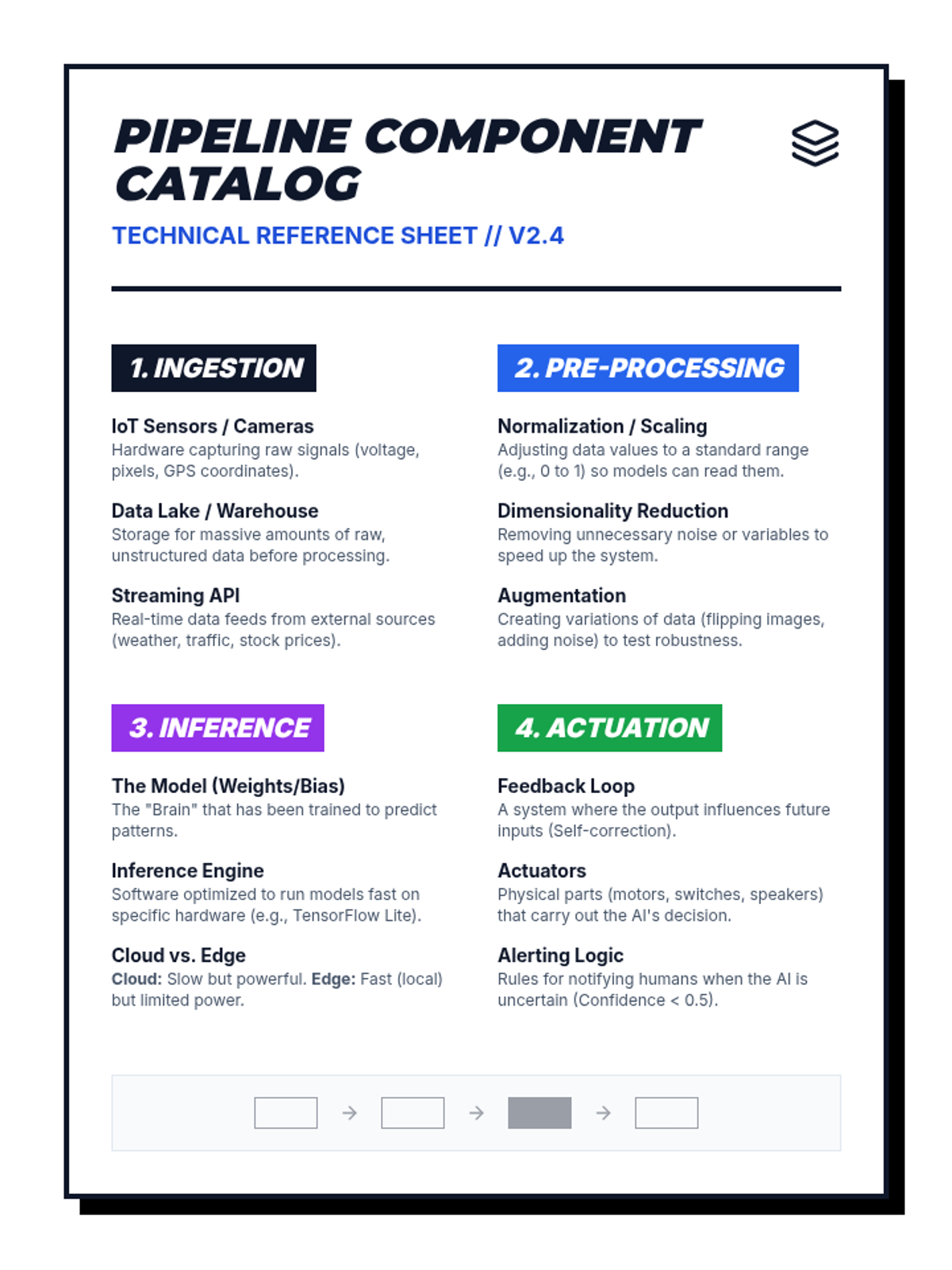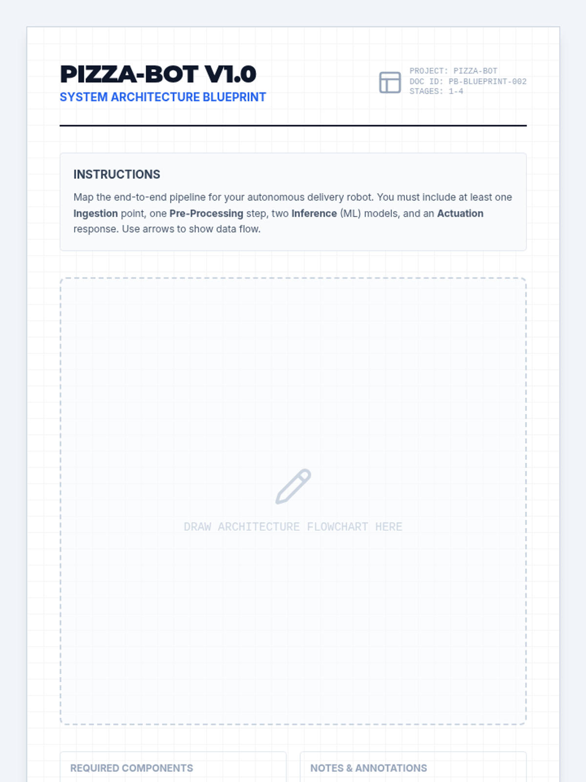 Students design end-to-end pipeline architectures for AI applications, identifying components for data ingestion, preprocessing, and inference.