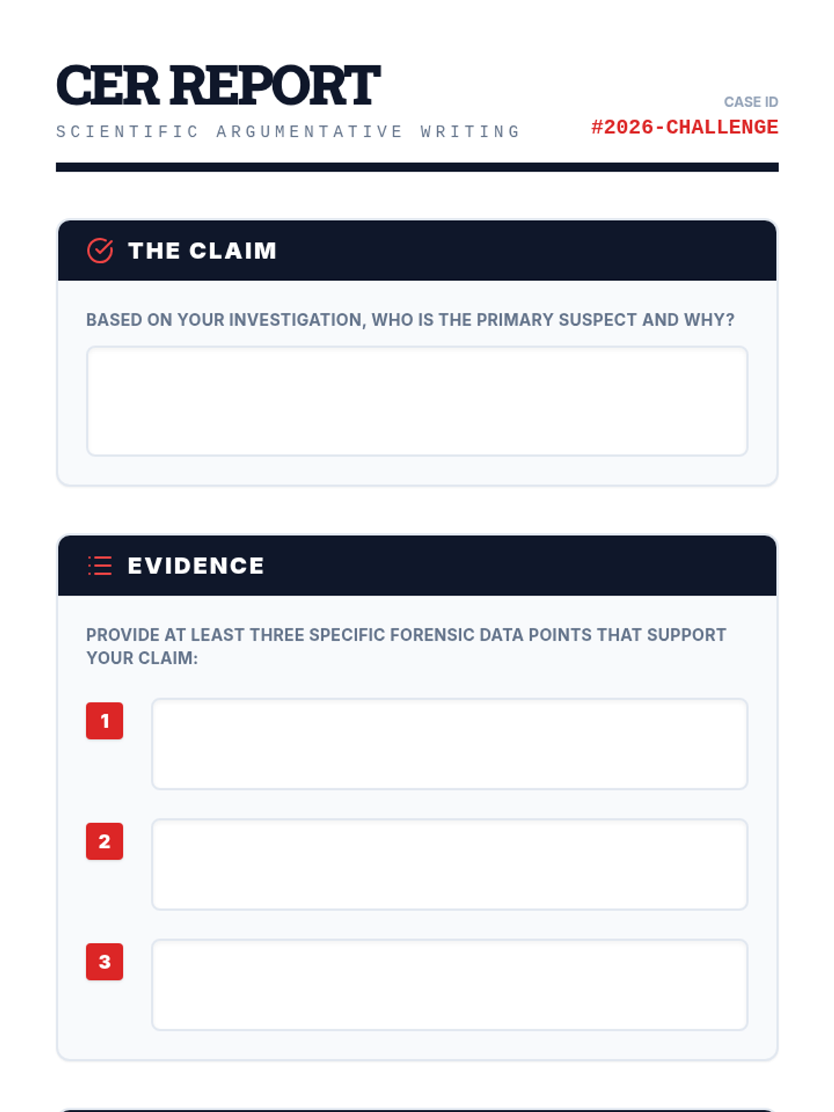 Students investigate the theft of the school's prestigious Moove Challenge Trophy, using tire tracks, footwear impressions, and tool marks to identify the culprit in the school parking lot.