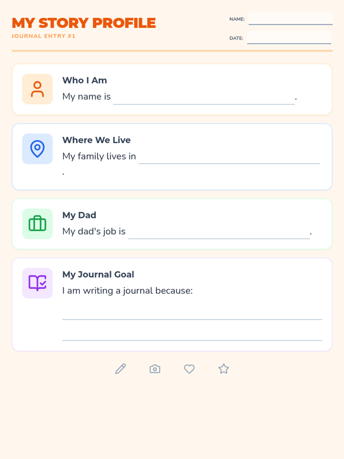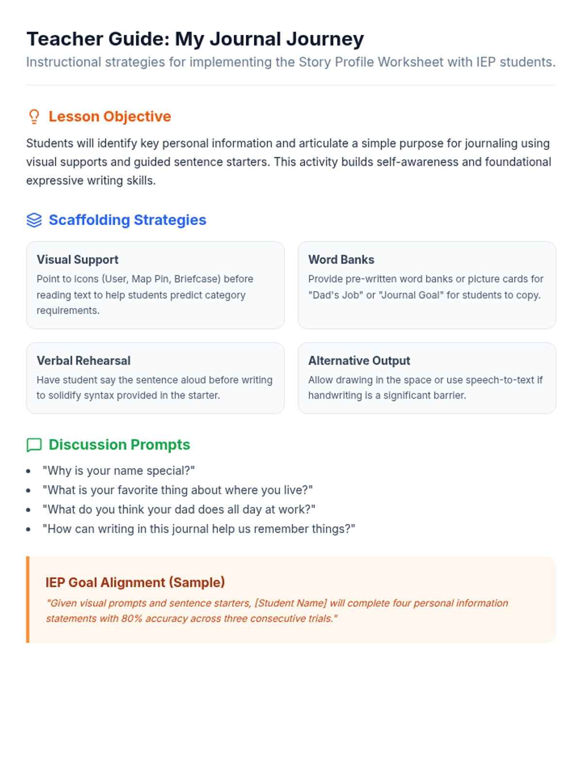 A foundational lesson to help students introduce themselves and establish their purpose for keeping a personal journal, with heavy visual supports for IEP students.