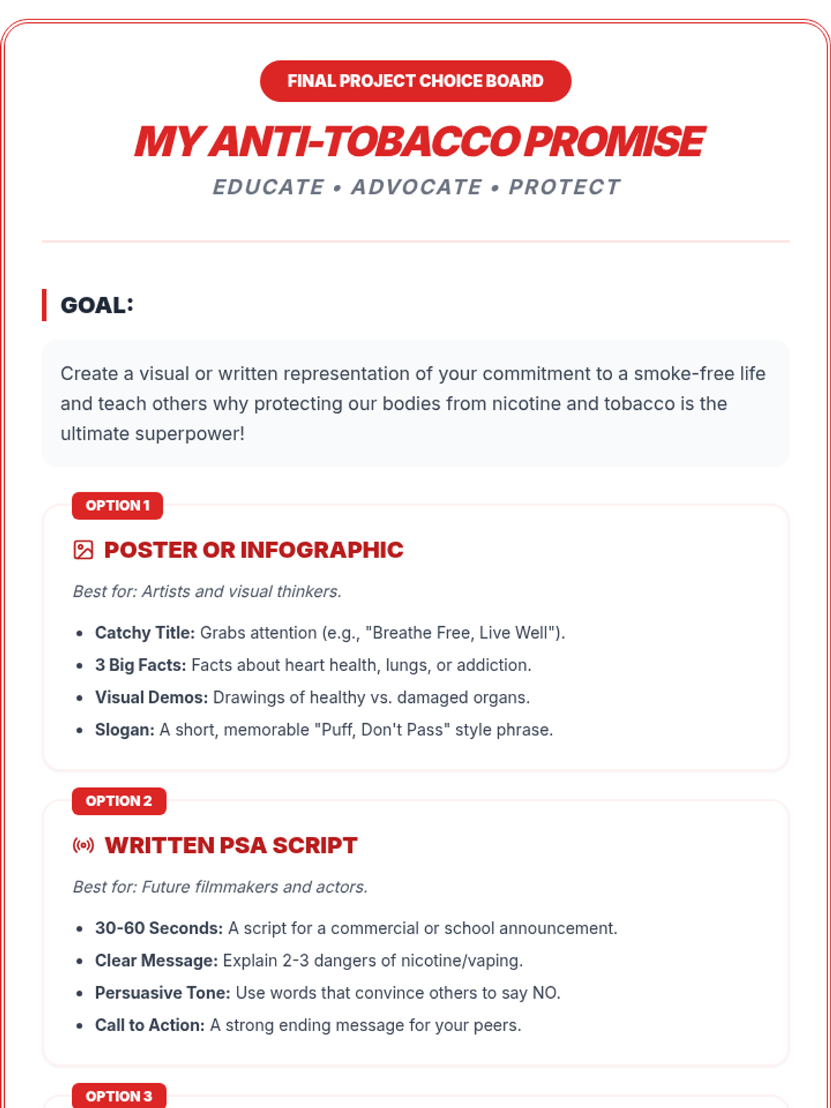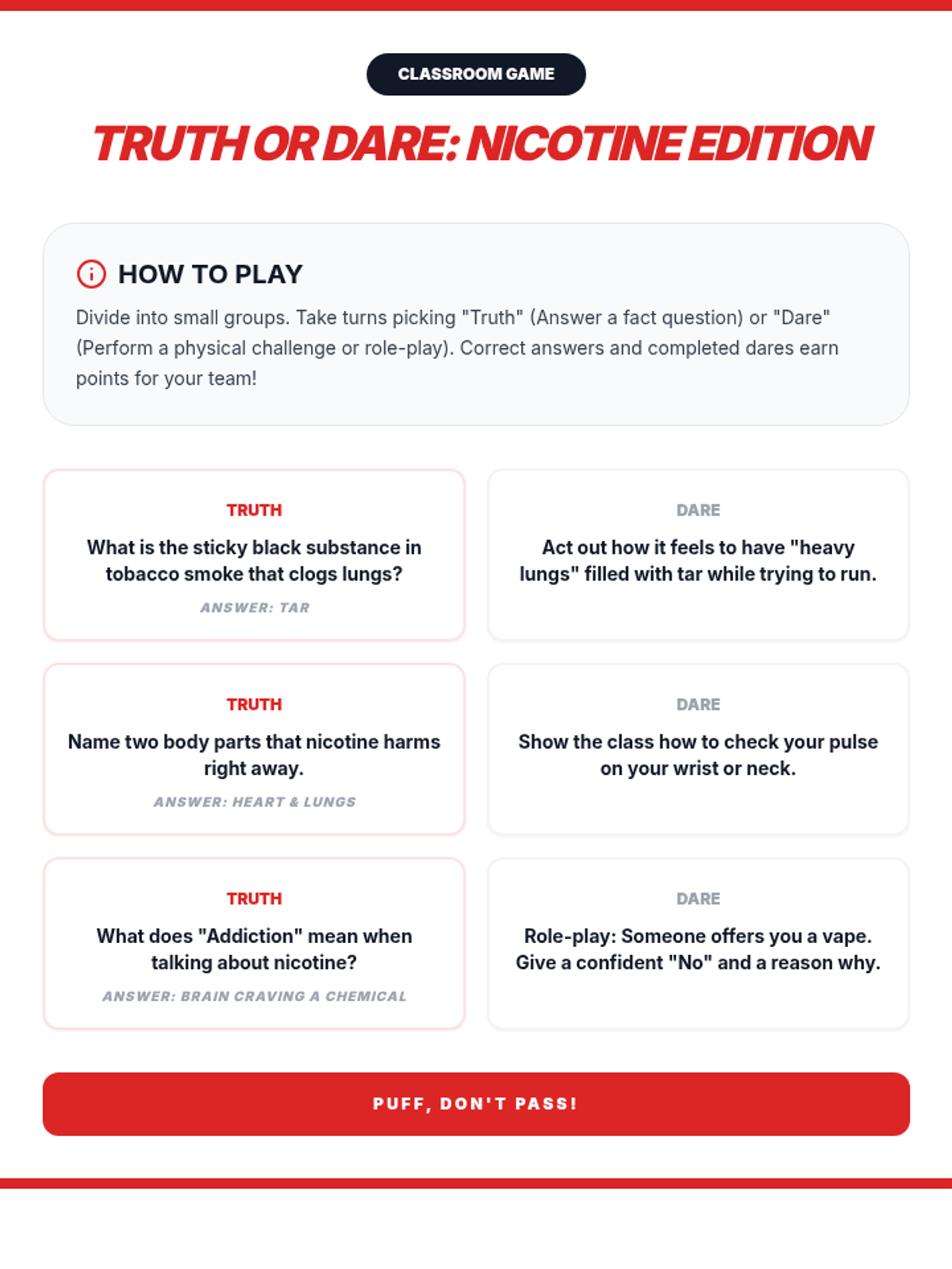 A focused intervention lesson for 6th-grade students to explore the specific health risks of nicotine vaping, featuring a self-led investigation into how vaping affects the brain, lungs, and heart.