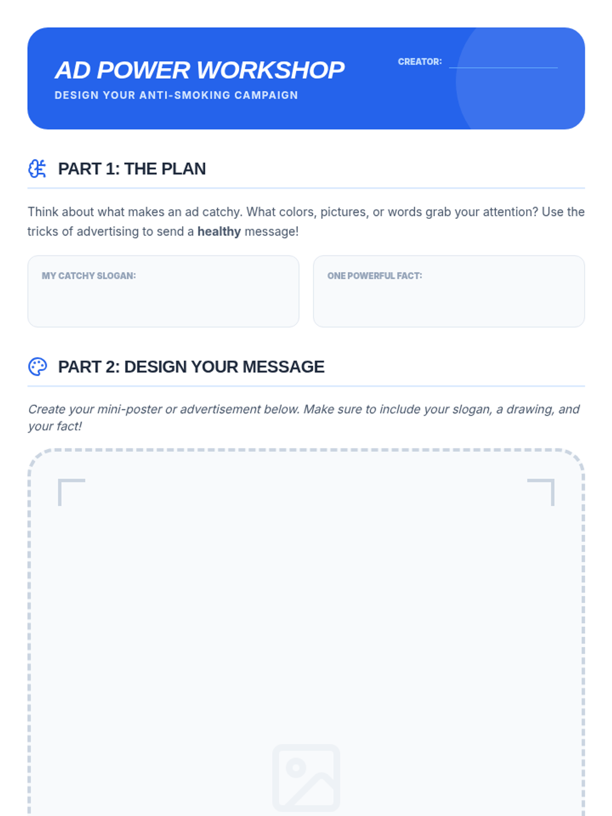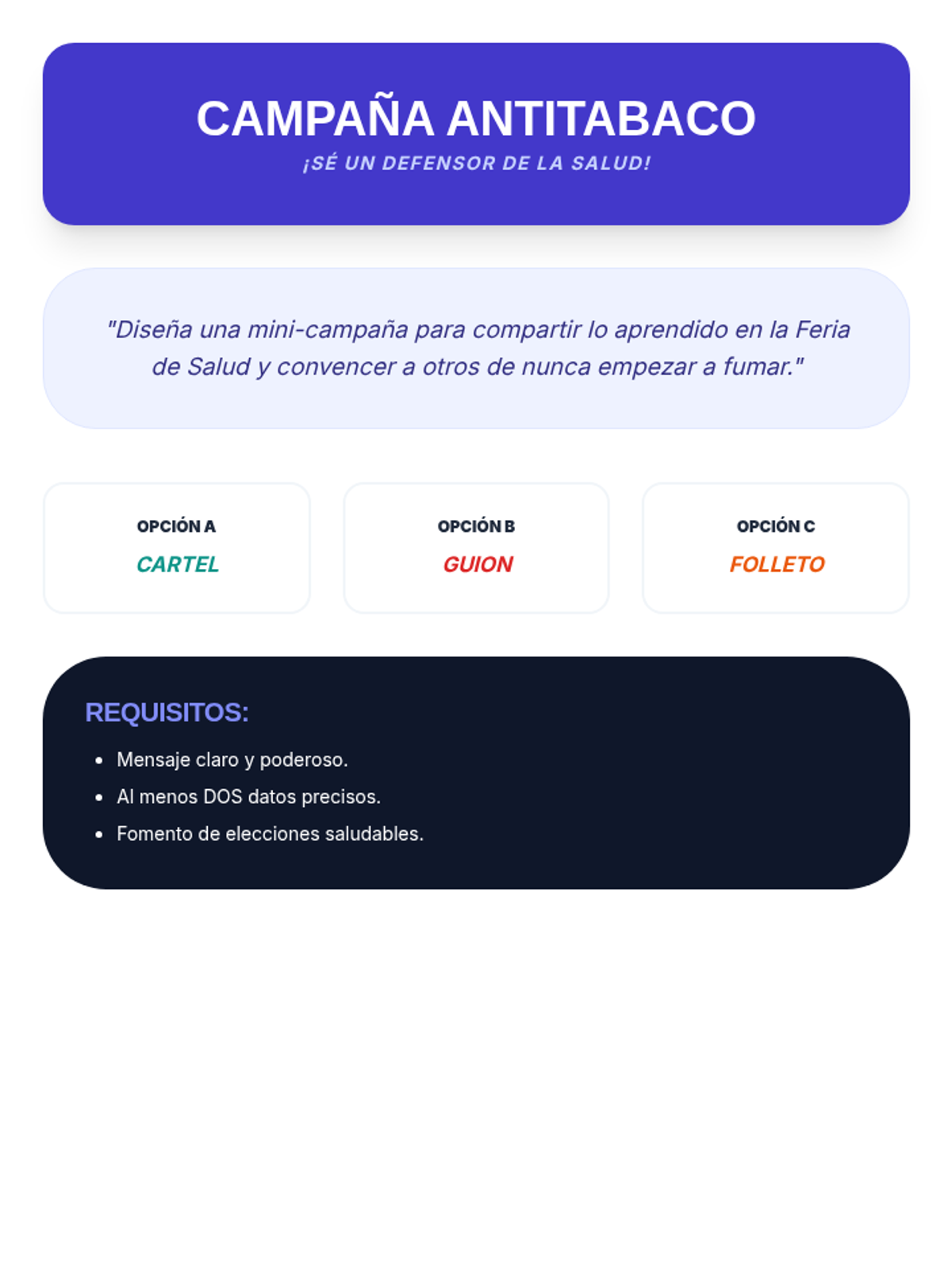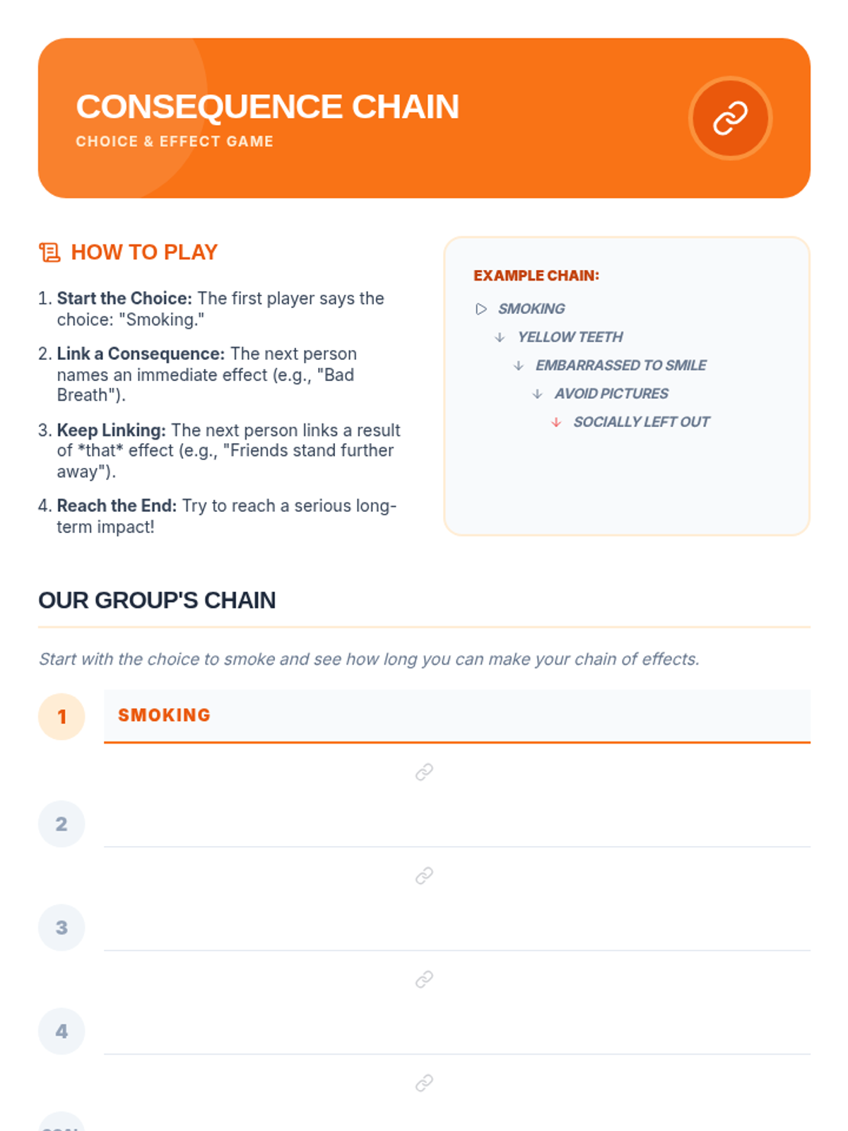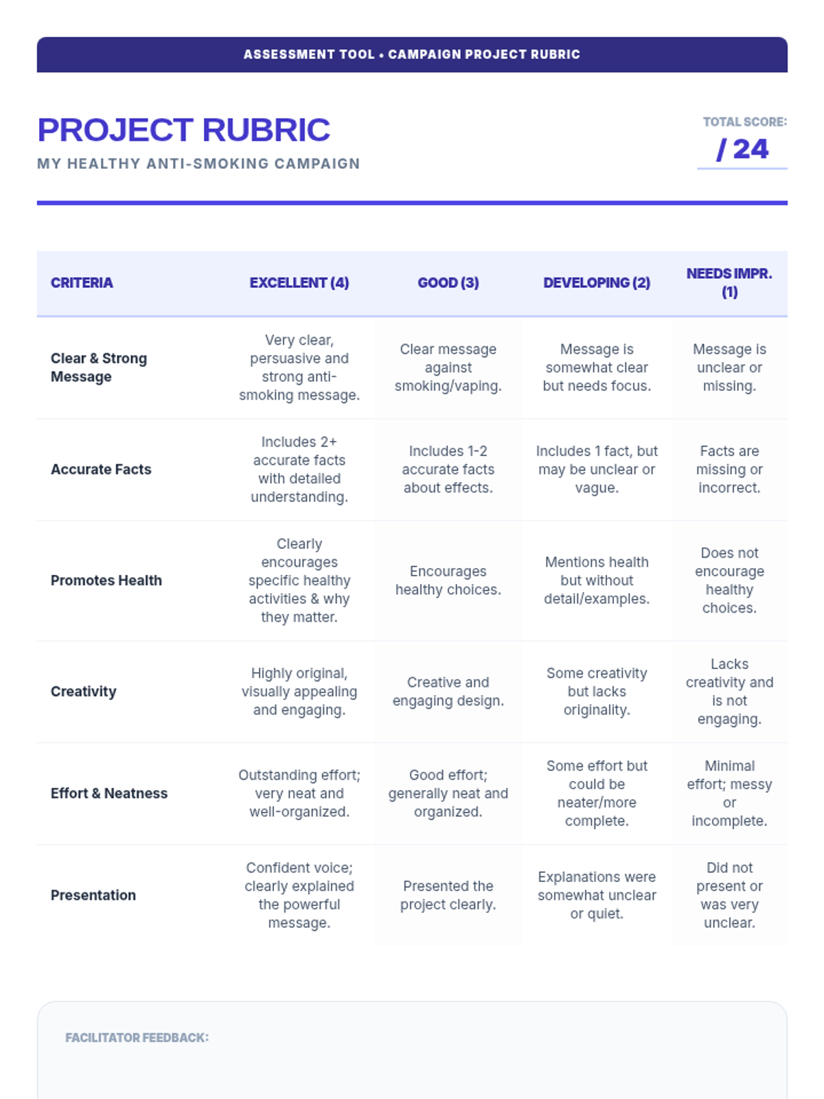A station-based health fair for 4th graders to explore the effects of smoking, debunk myths, and develop refusal skills through interactive games and activities.