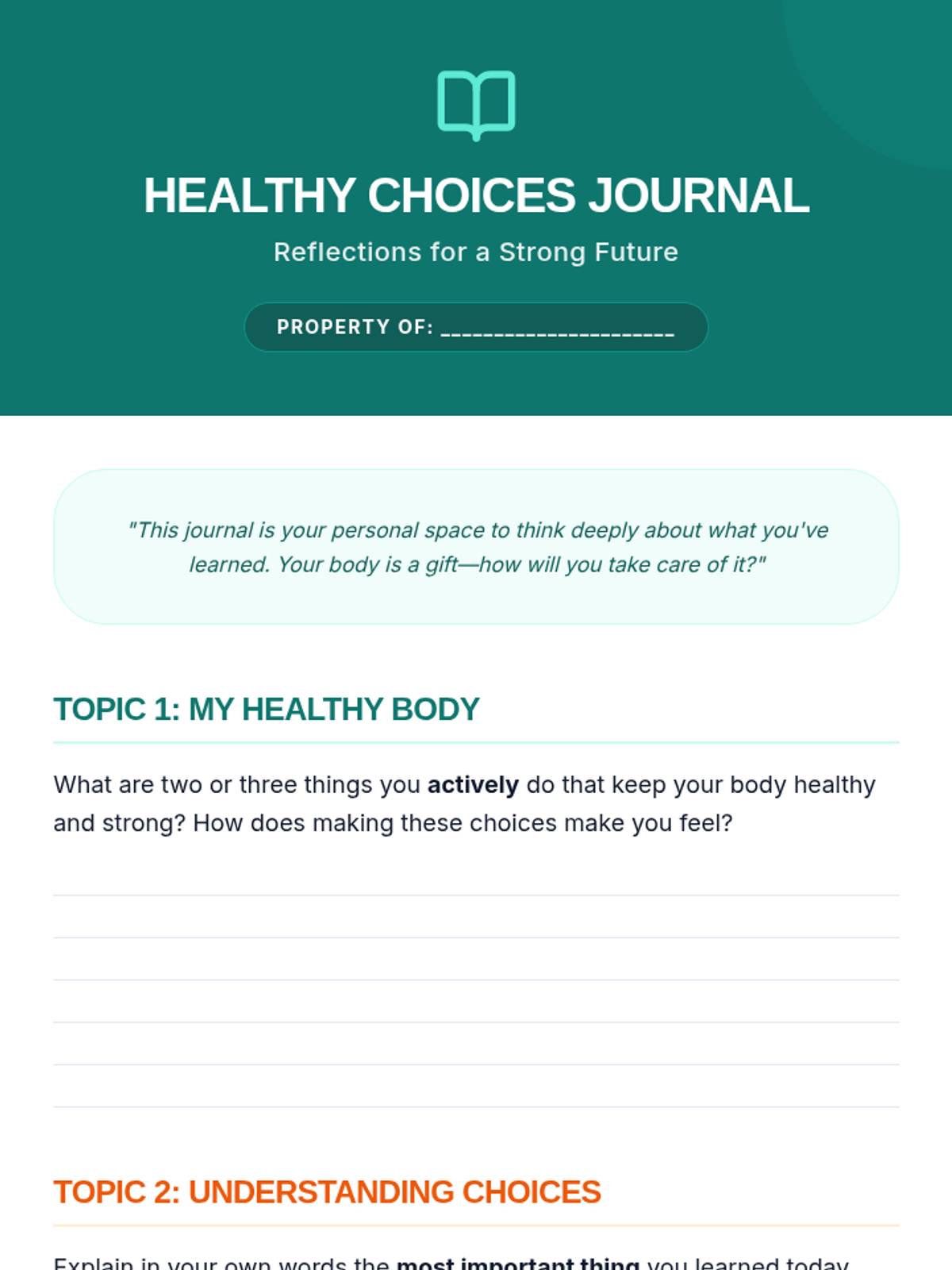 A comprehensive lesson on hydration safety and awareness, featuring fun facts, body awareness activities, and practical tips for staying hydrated in daily life.