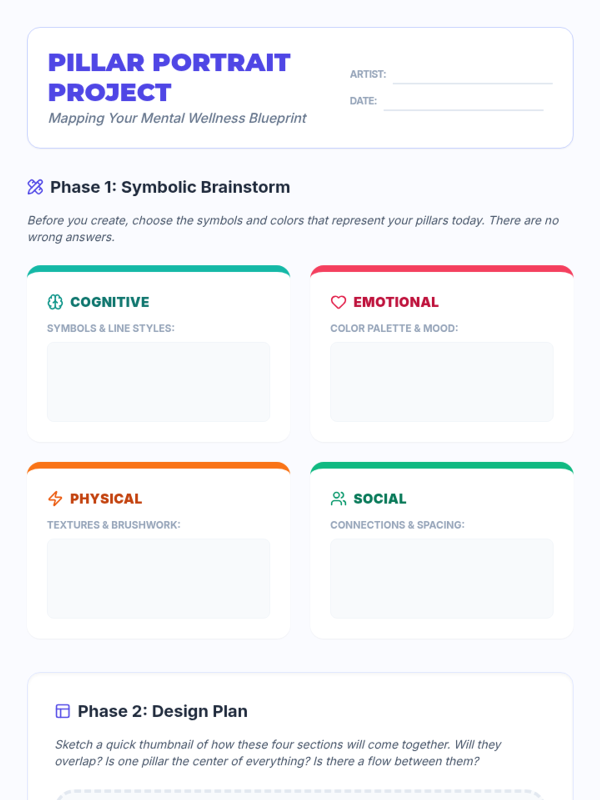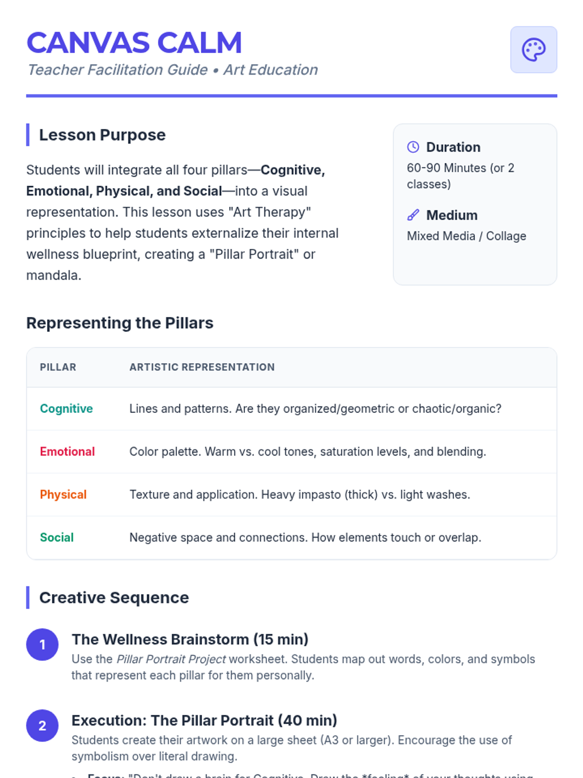 An Art lesson that integrates all four pillars of mental health into a creative project, allowing students to visualize their personal wellness.