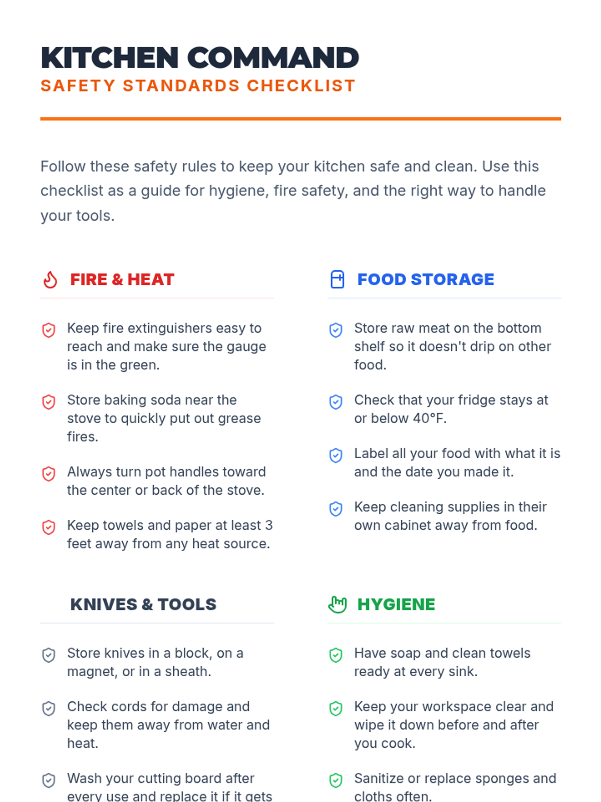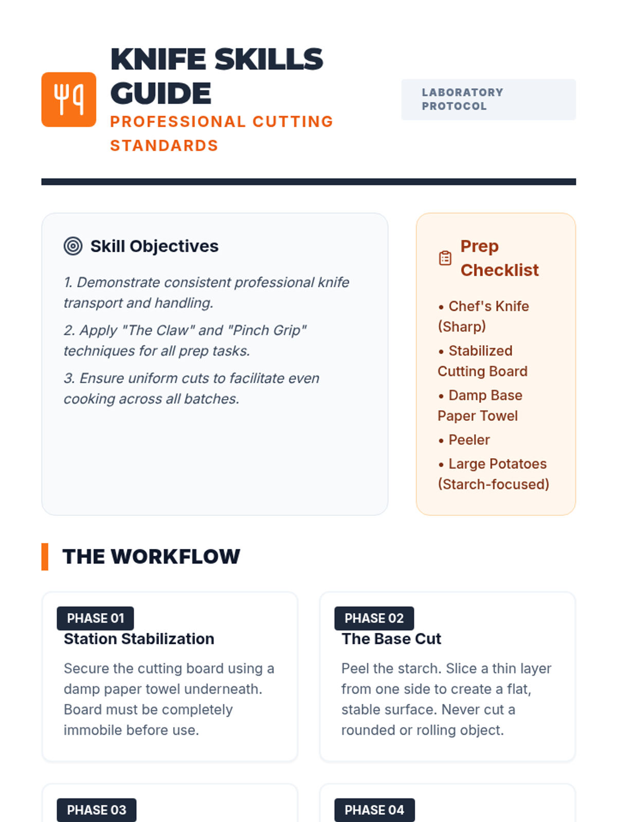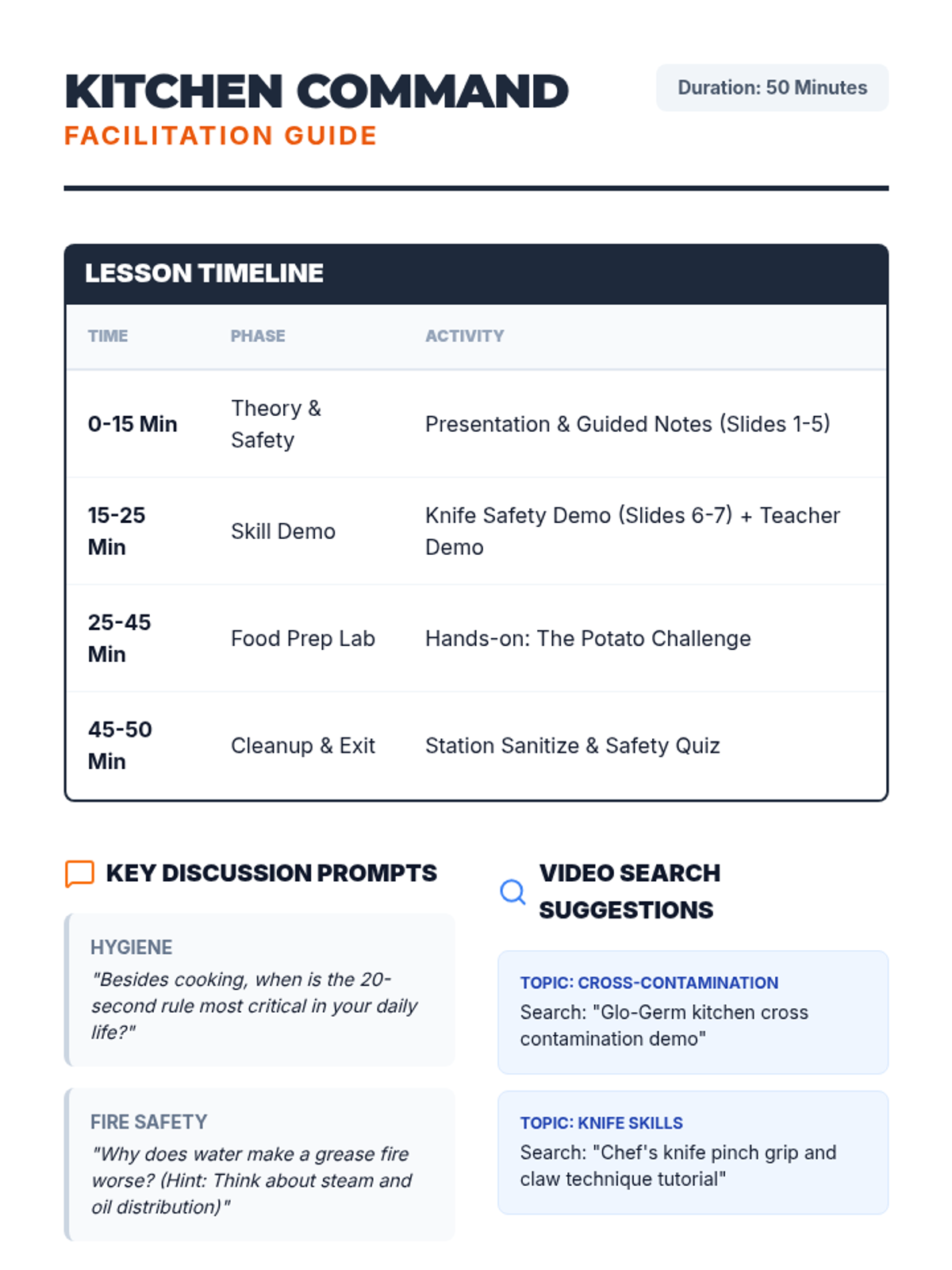 A comprehensive 50-minute introduction to essential kitchen safety and basic cooking skills, featuring a slide presentation, guided notes, and a hands-on knife skills lab.