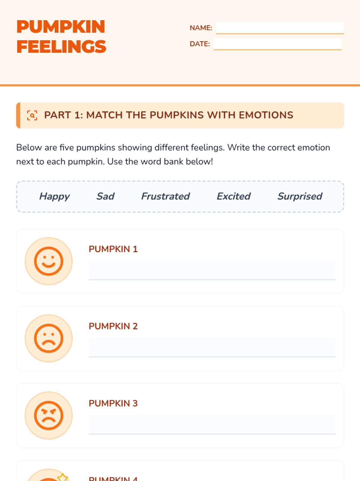 A 30-minute Tier 2 SEL lesson for 2nd graders that uses a pumpkin theme to help students identify, express, and regulate their emotions while building empathy.