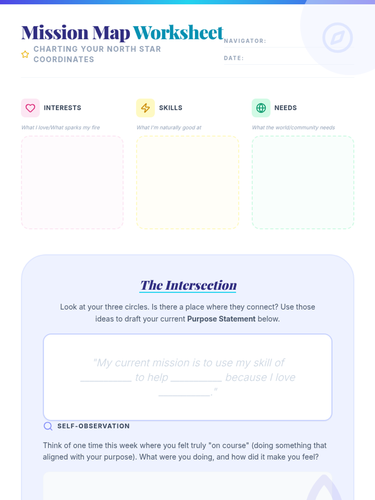 A 20-minute exploration for 6th graders to begin identifying their unique interests, skills, and how they can contribute to their community, themed around celestial navigation.