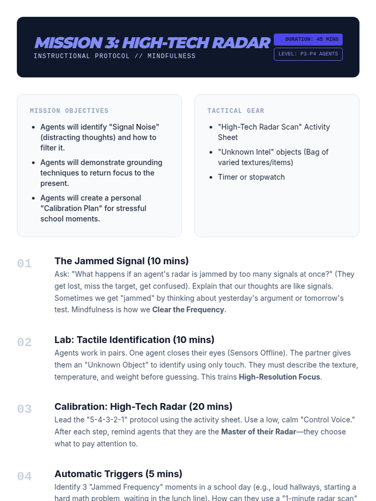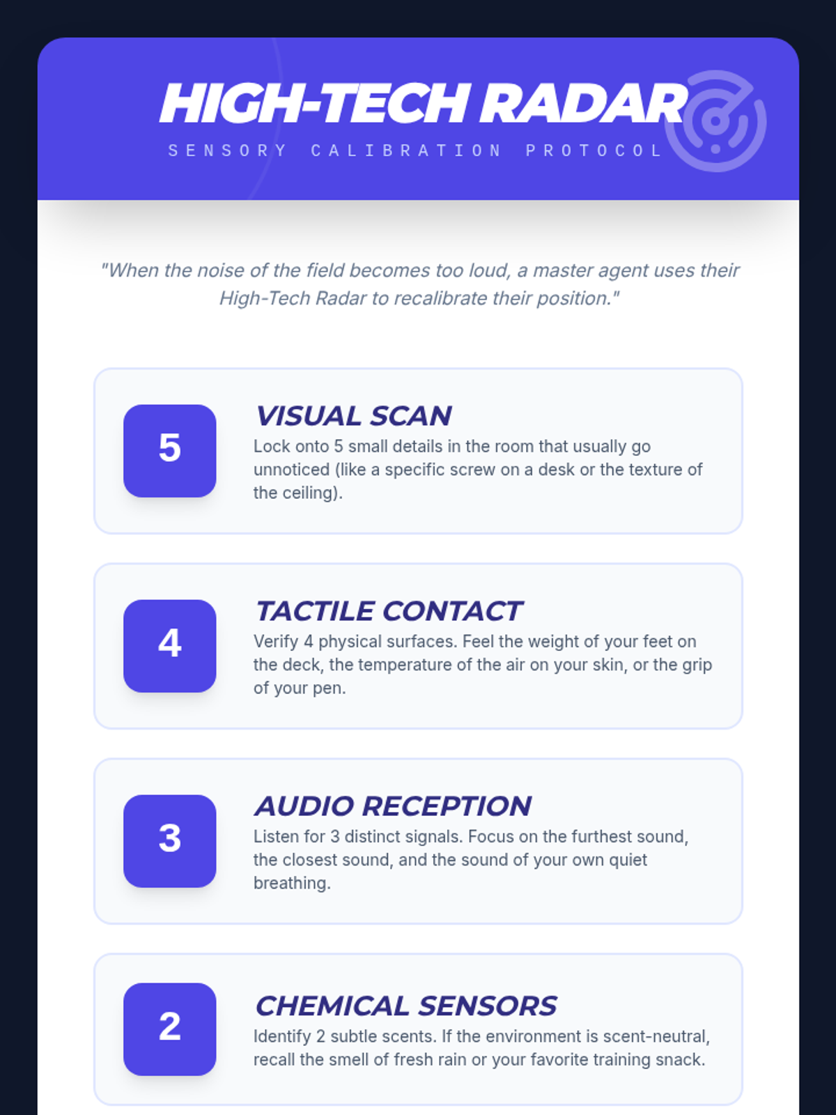 Agents calibrate their internal radar using sensory grounding techniques to stay focused.
