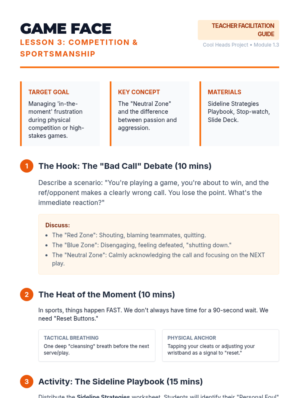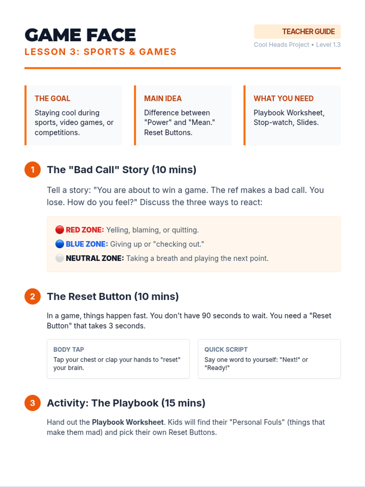Explores the emotional ups and downs of sports and competition, teaching students how to keep their cool during wins and losses.