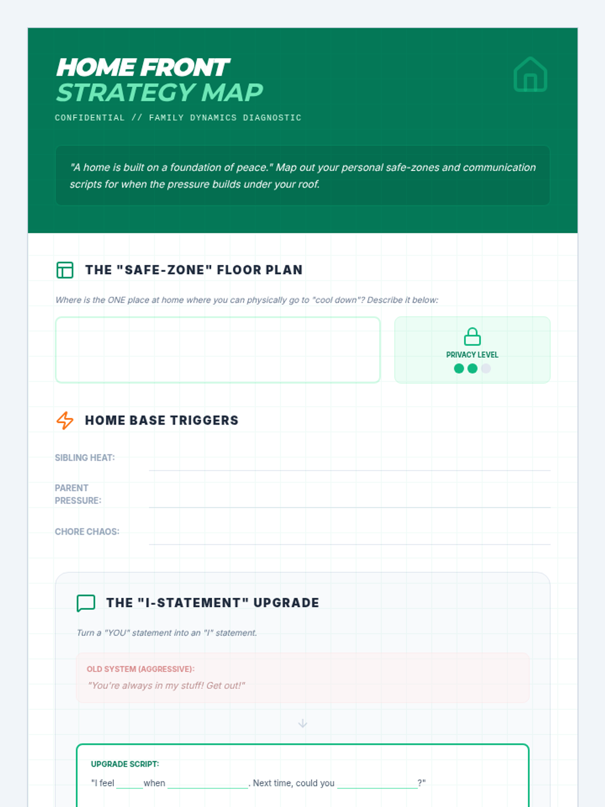 Strategies for navigating family dynamics, sibling conflicts, and home-based stressors through clear communication and personal space.