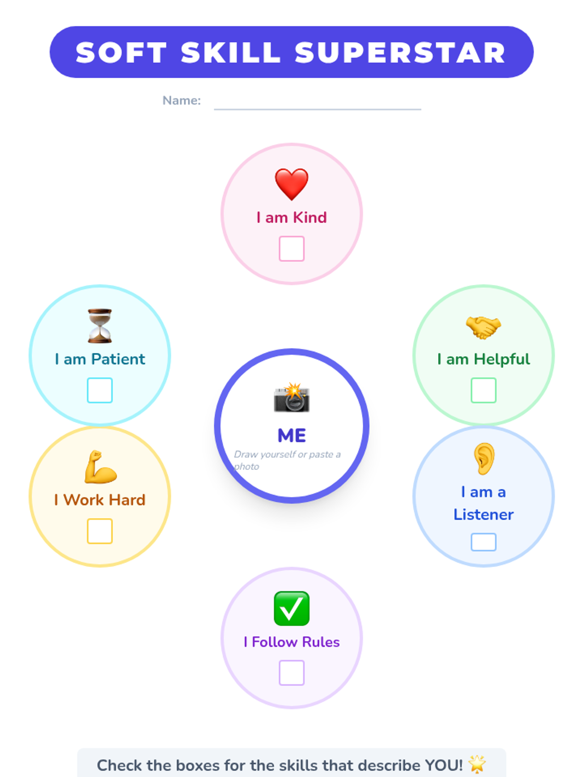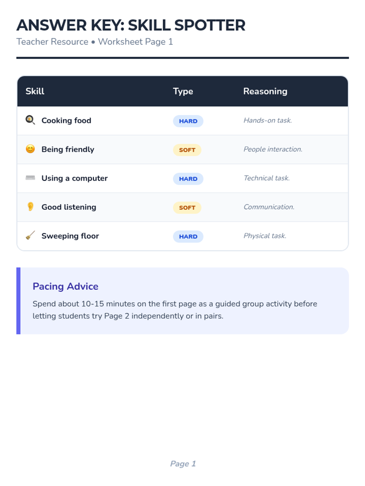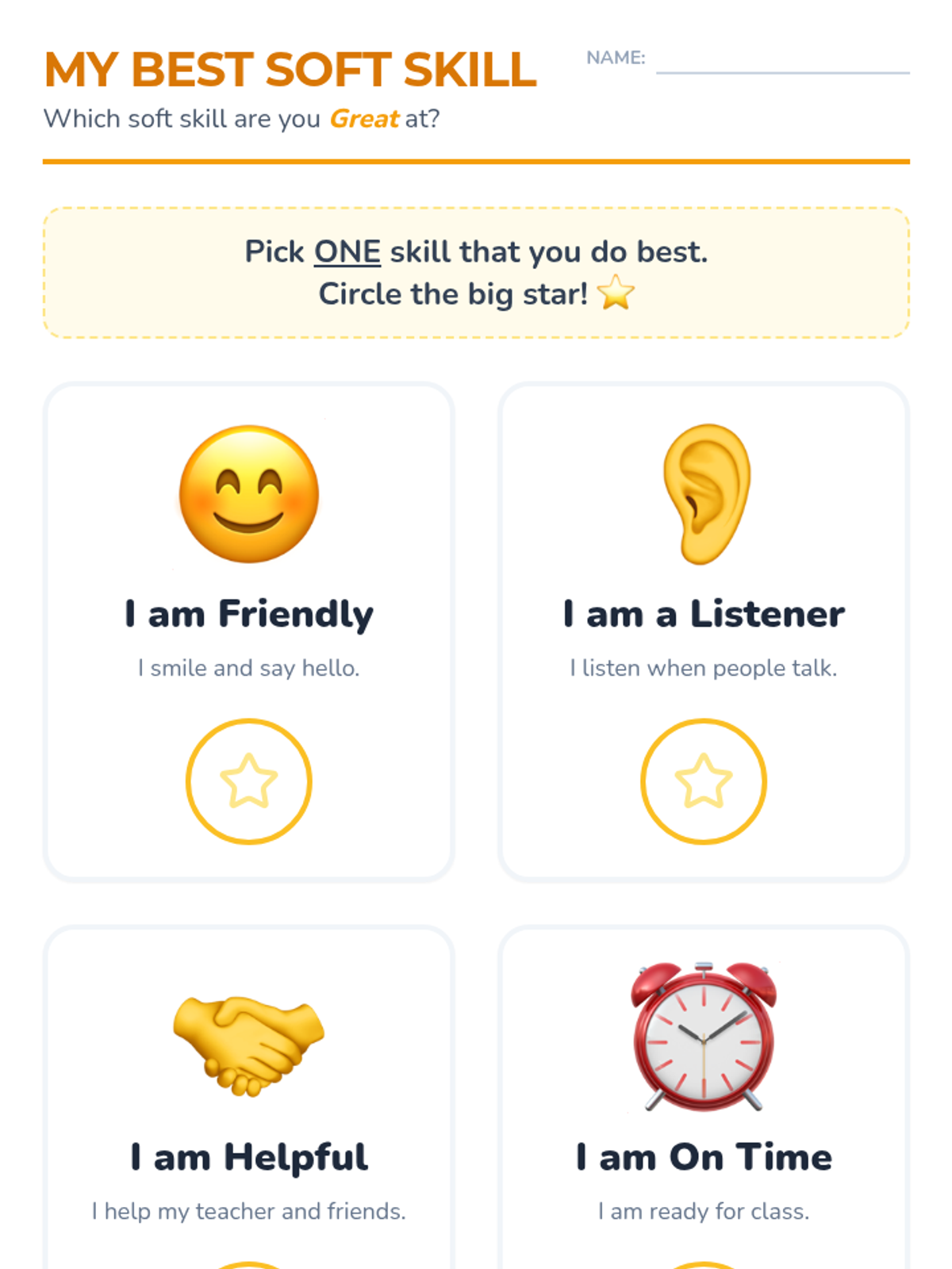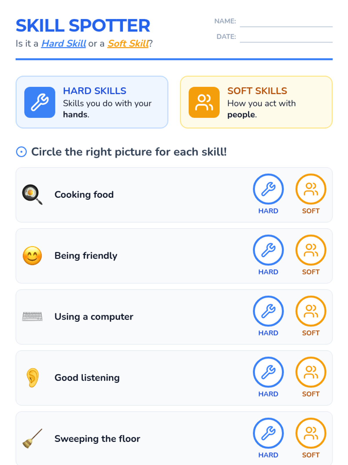 A lesson designed for students with low cognitive or intellectual developmental disabilities to differentiate between hard and soft skills and identify their own personal strengths through visual, high-support activities.