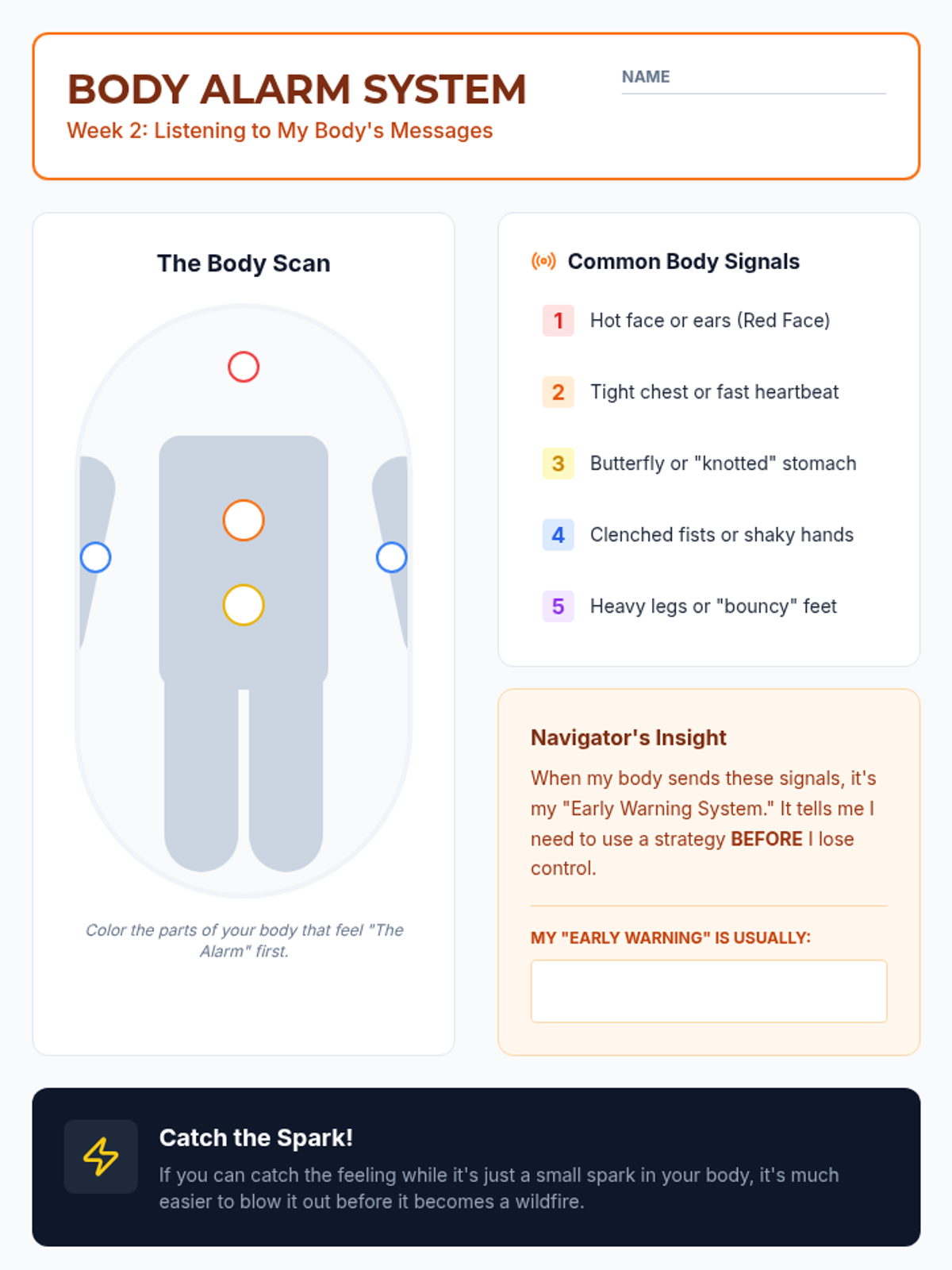 Explores how emotions feel in the body to help students recognize the early signs of emotional dysregulation.