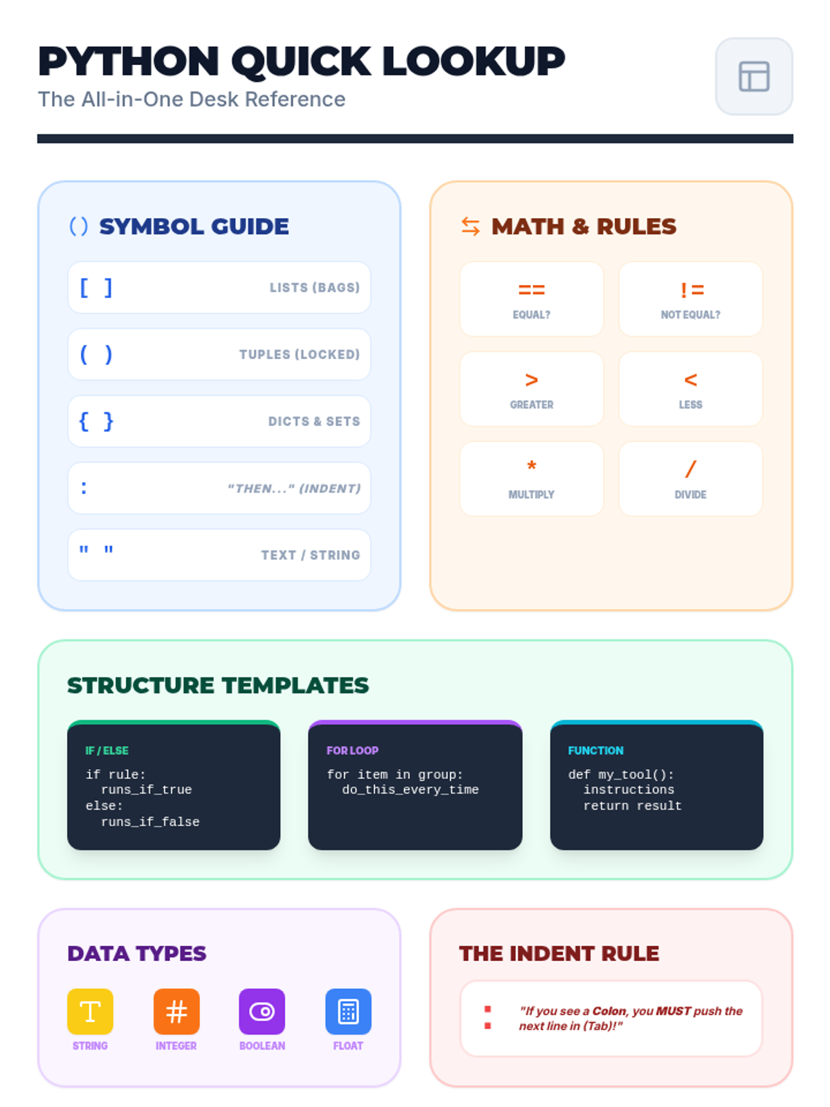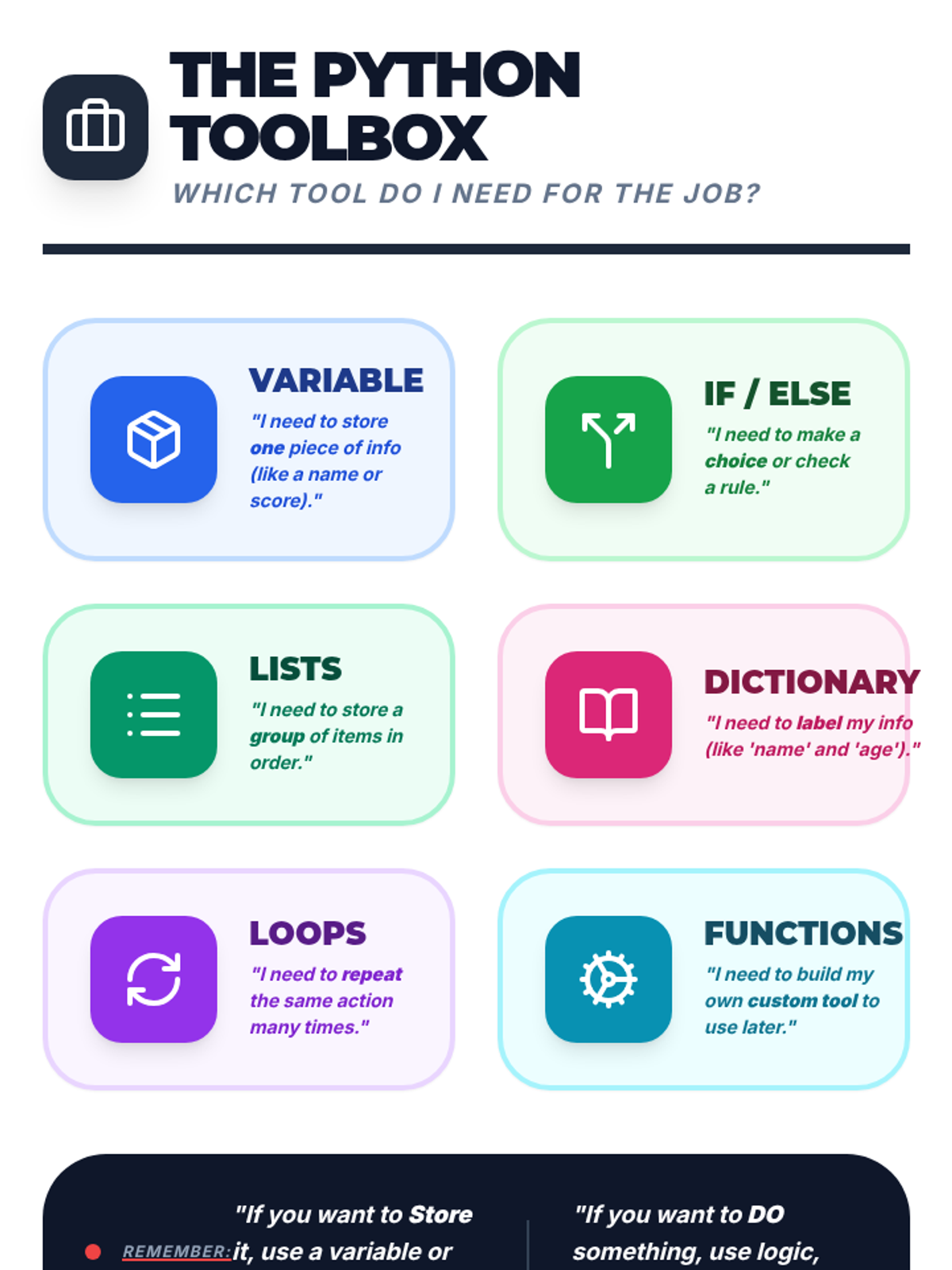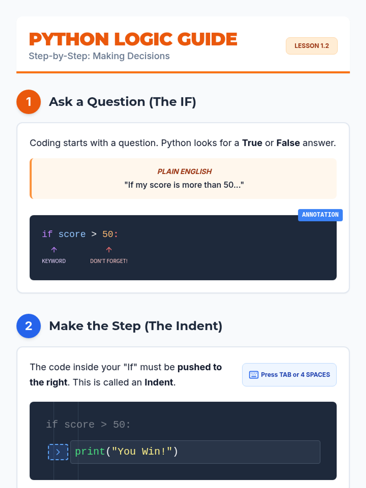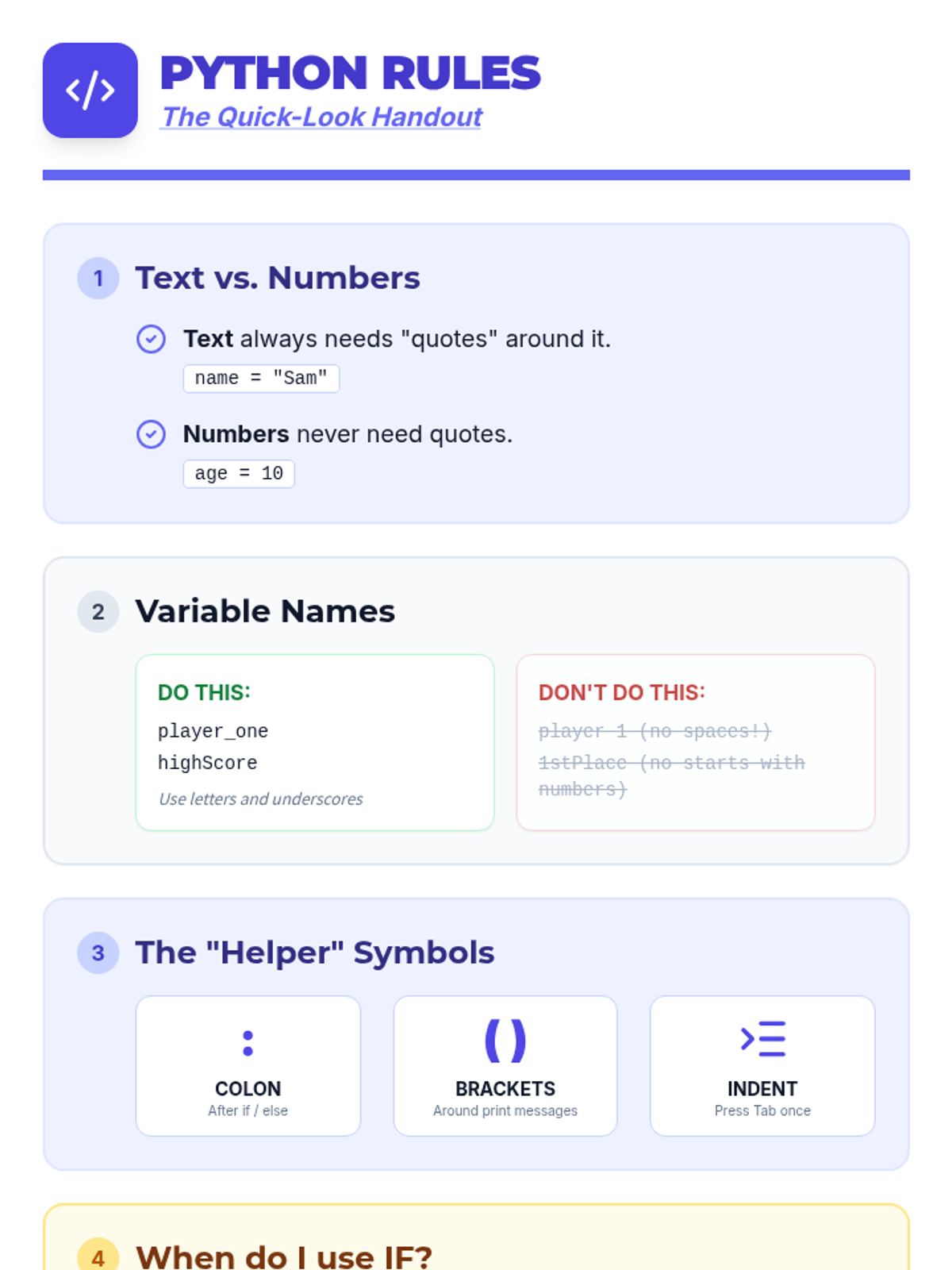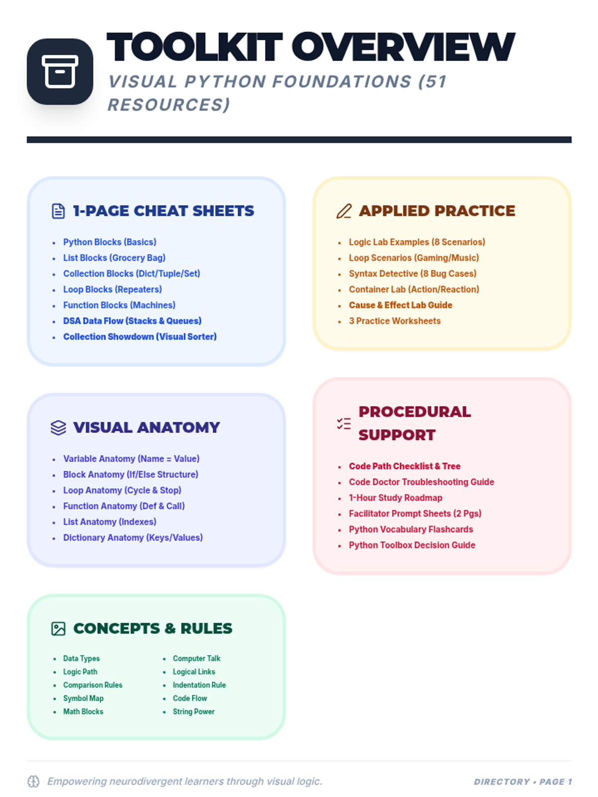 A collection of highly visual, simplified resources designed for students with reading and word comprehension challenges to master the basics of Python programming.