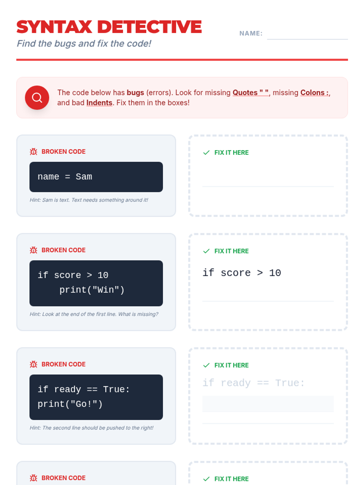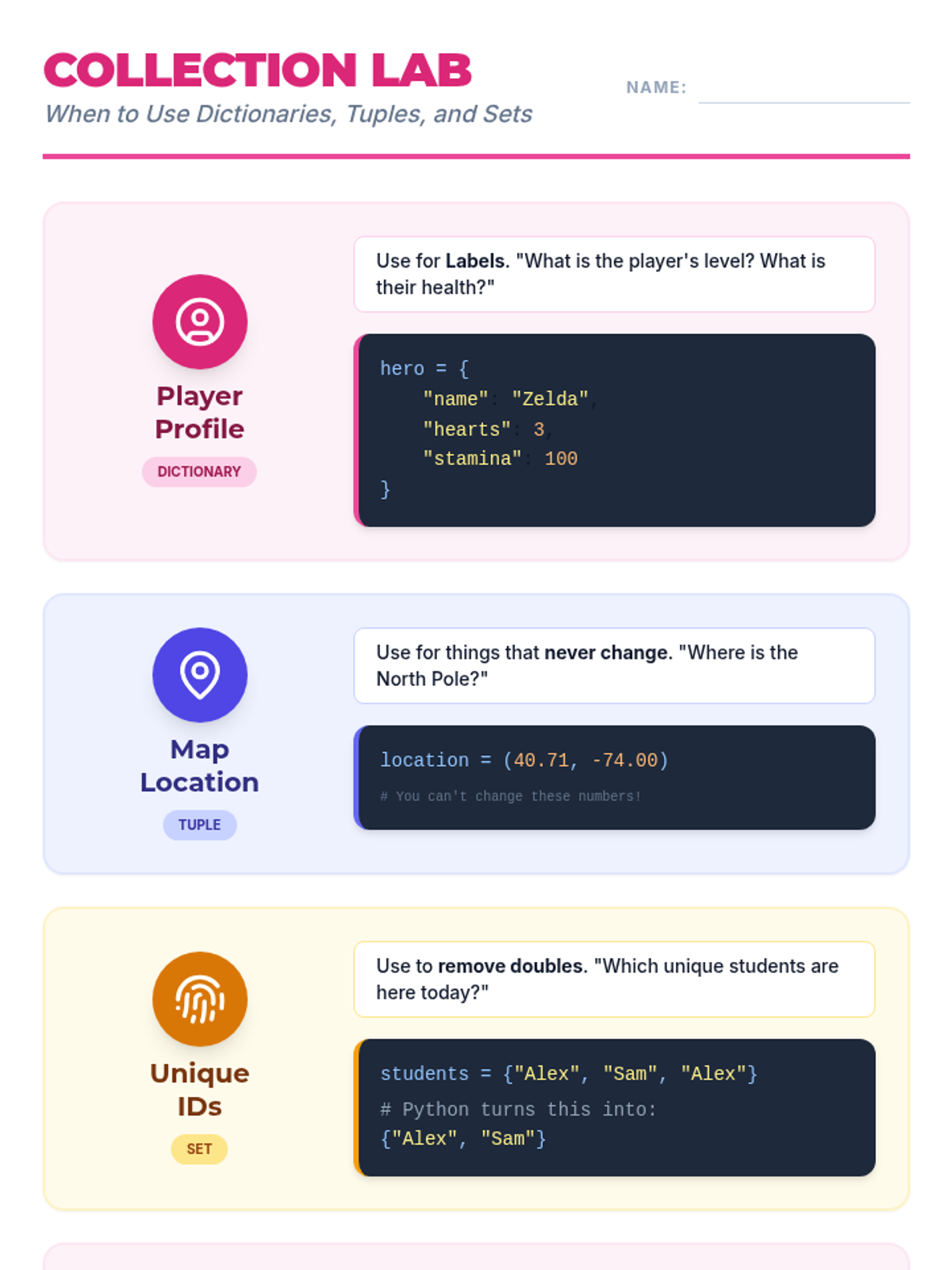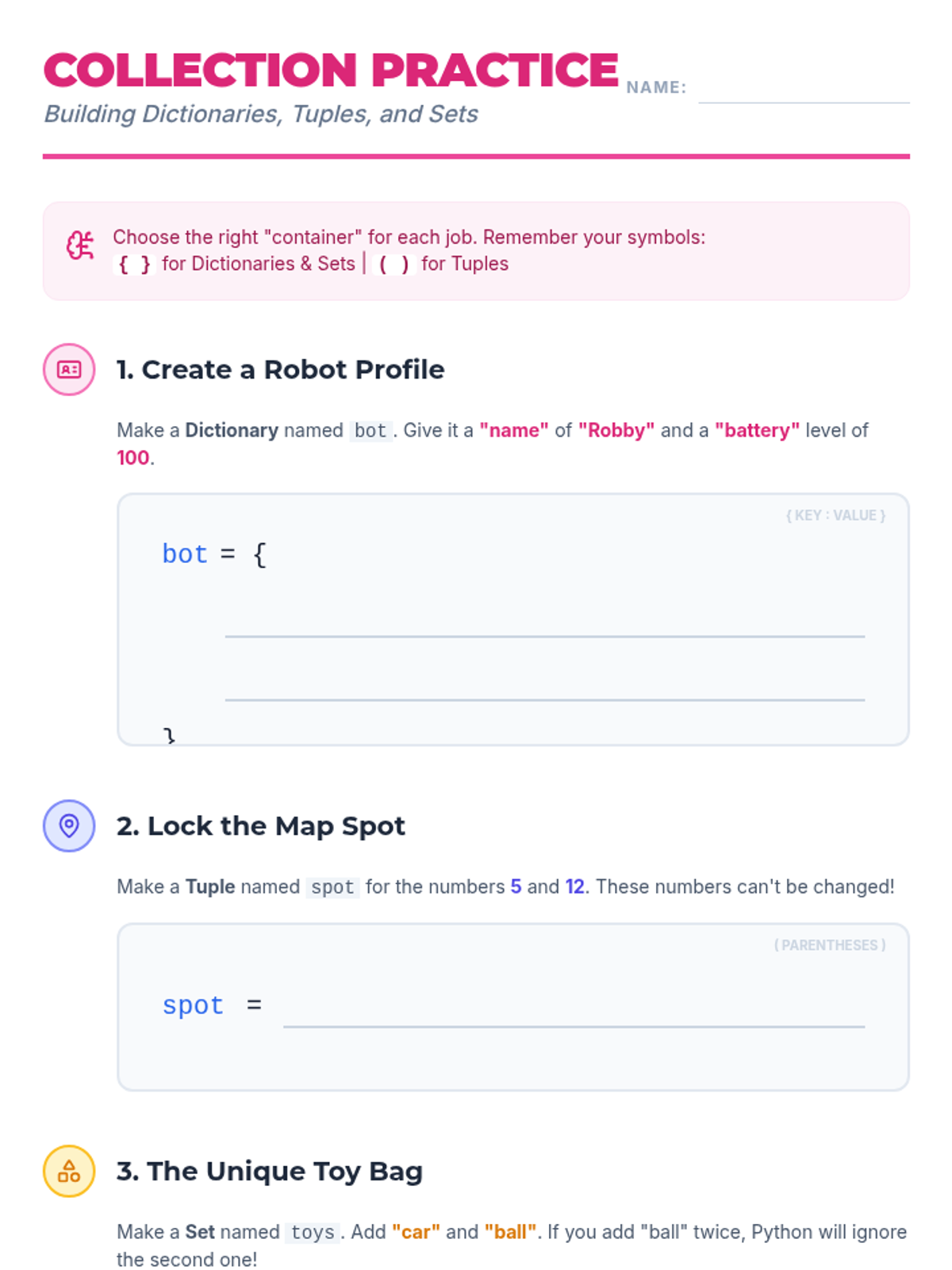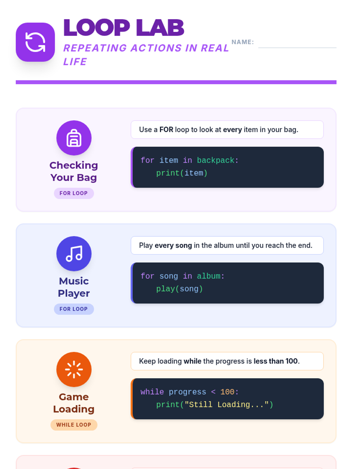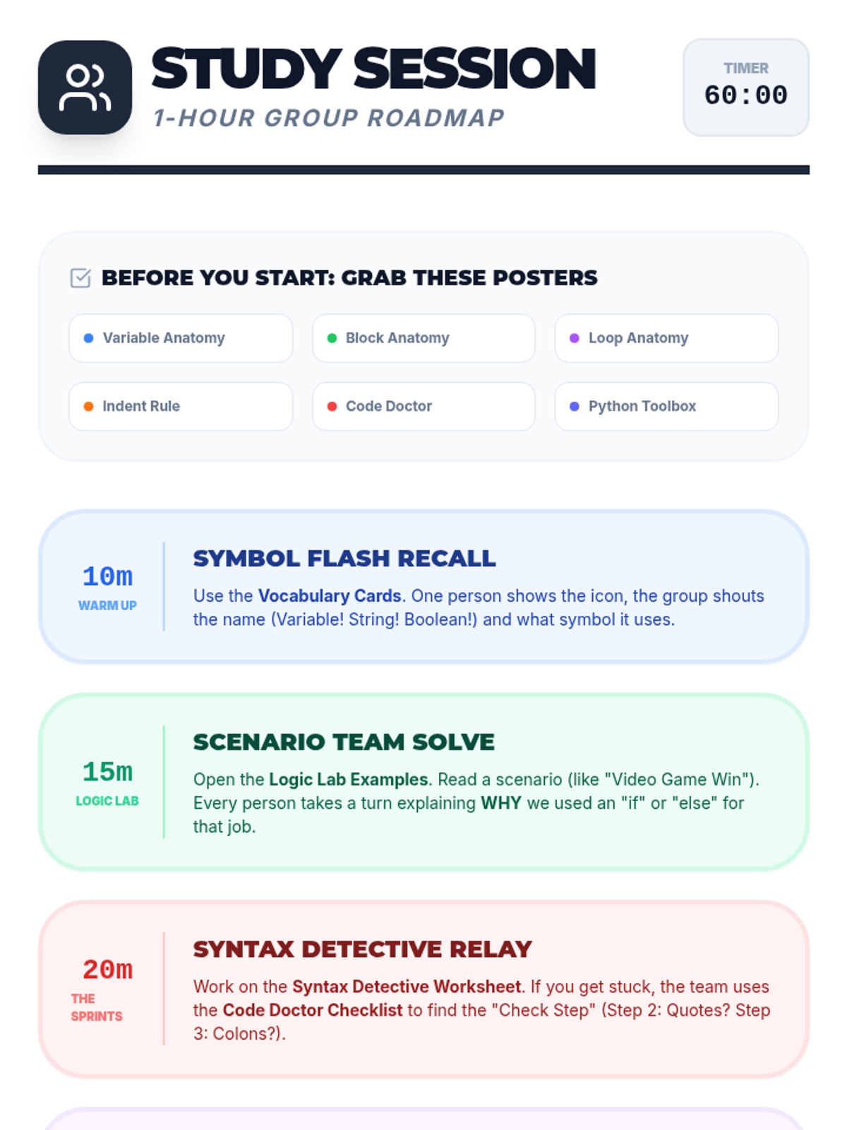 A collection of highly visual, simplified resources designed for students with reading and word comprehension challenges to master the basics of Python programming.