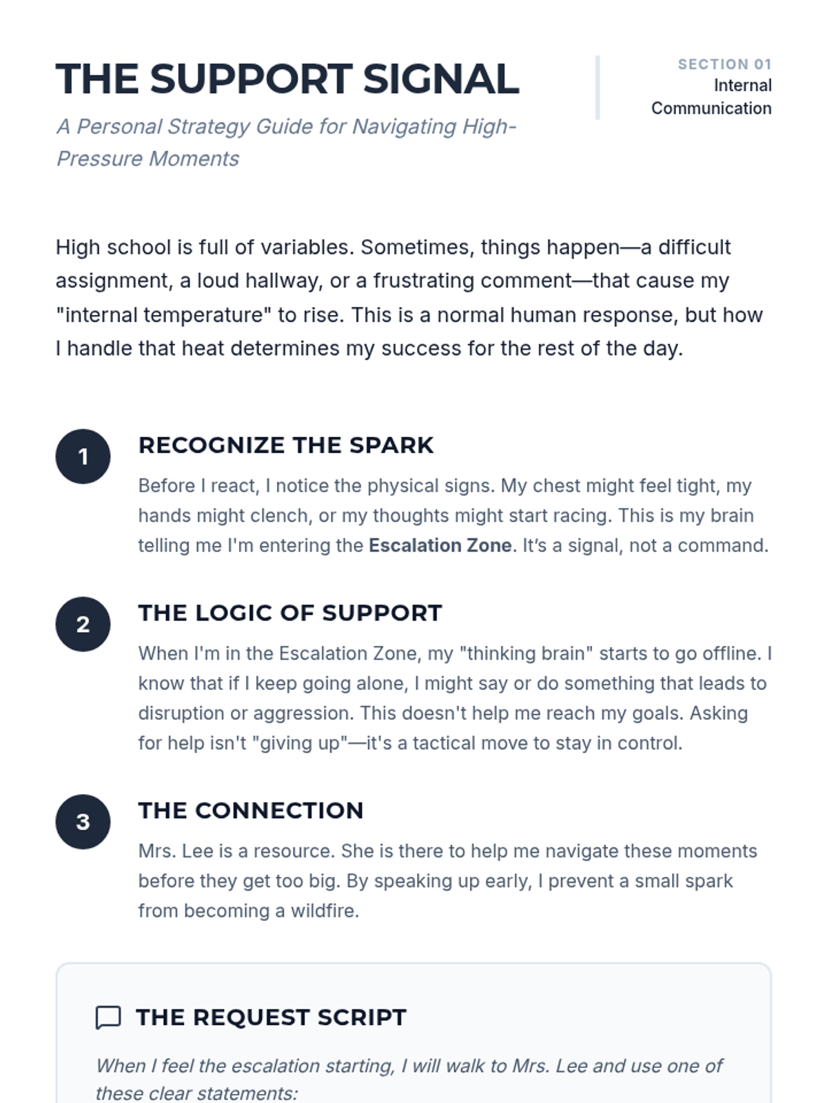 A set of resources designed to help high school students identify emotional escalation and effectively communicate their need for support to adults.