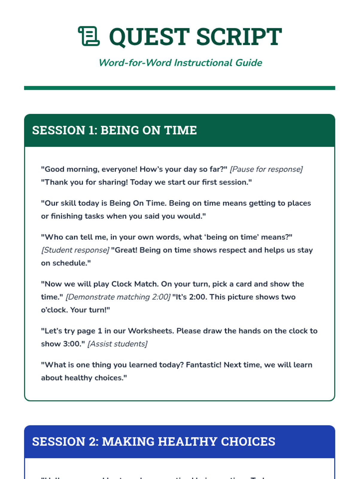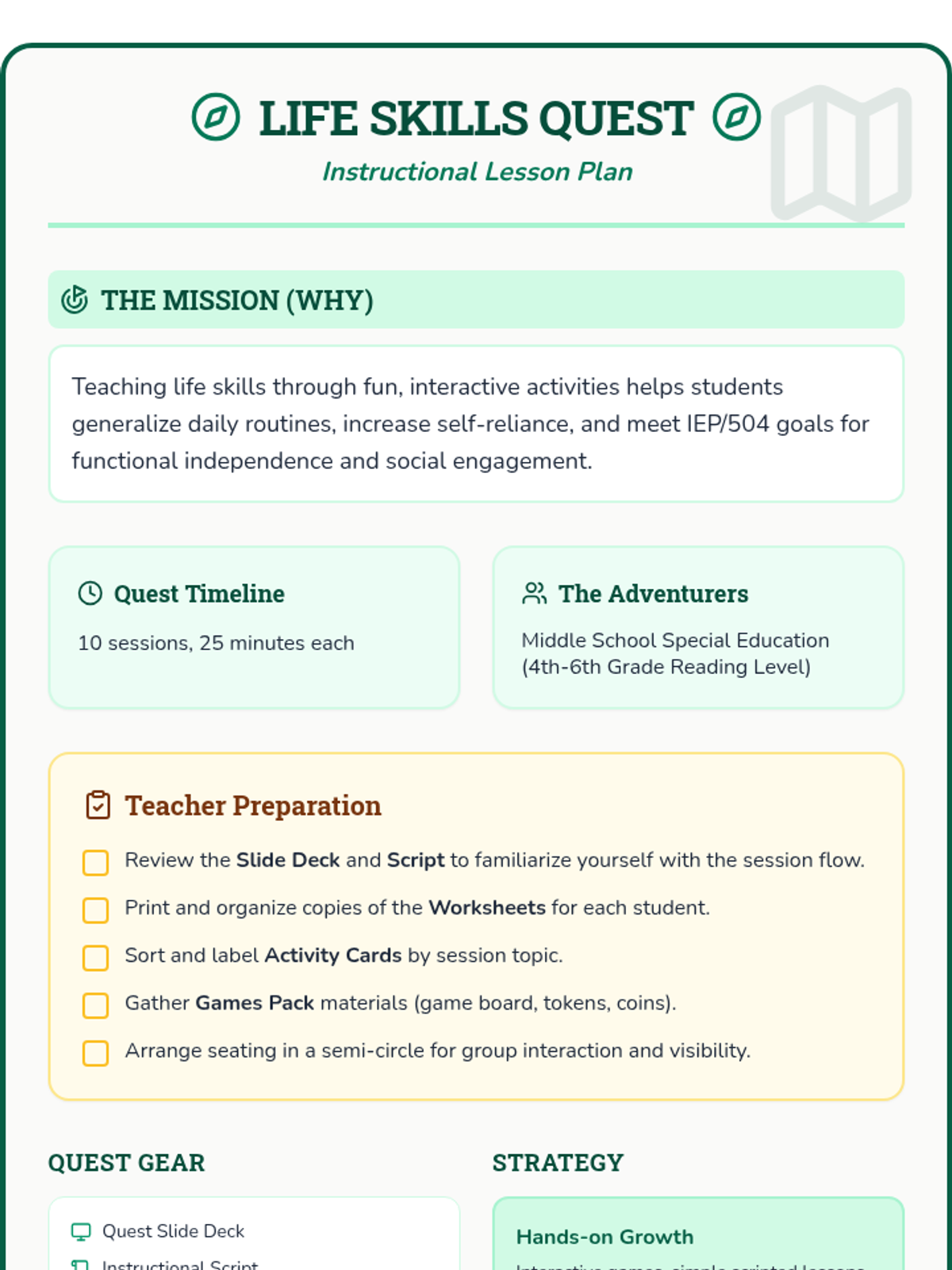 The core 10-session program containing the lesson plan, instructional slides, word-for-word scripts, student worksheets, and activity materials.