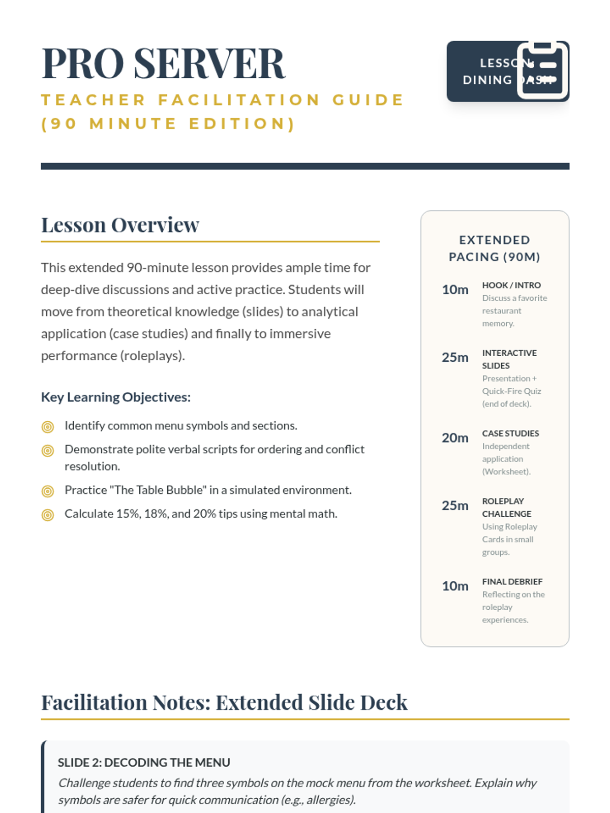 A comprehensive lesson on restaurant etiquette covering menu reading, ordering, manners, volume control, tipping, and conflict resolution.