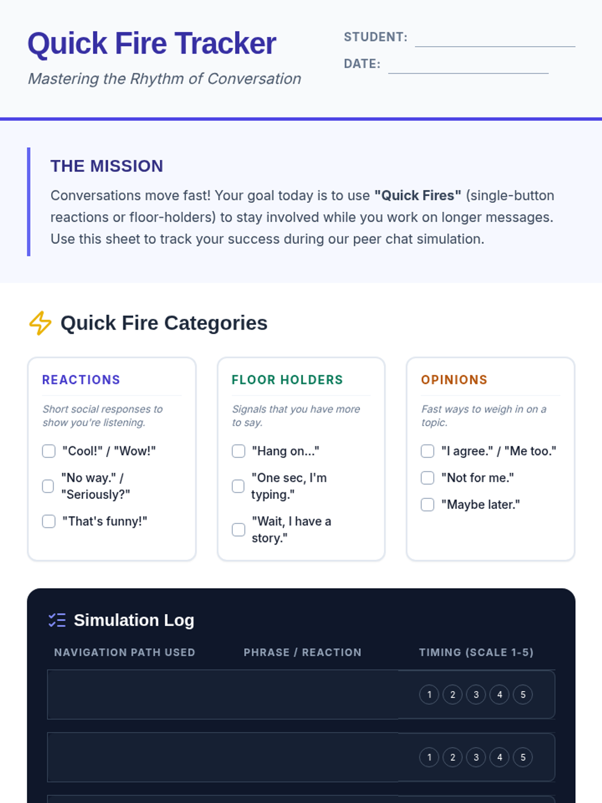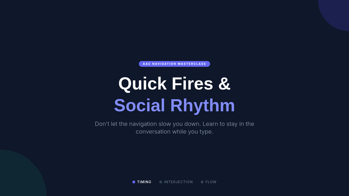 Focuses on using rapid-access phrases and floor holders to maintain social rhythm while composing longer messages.