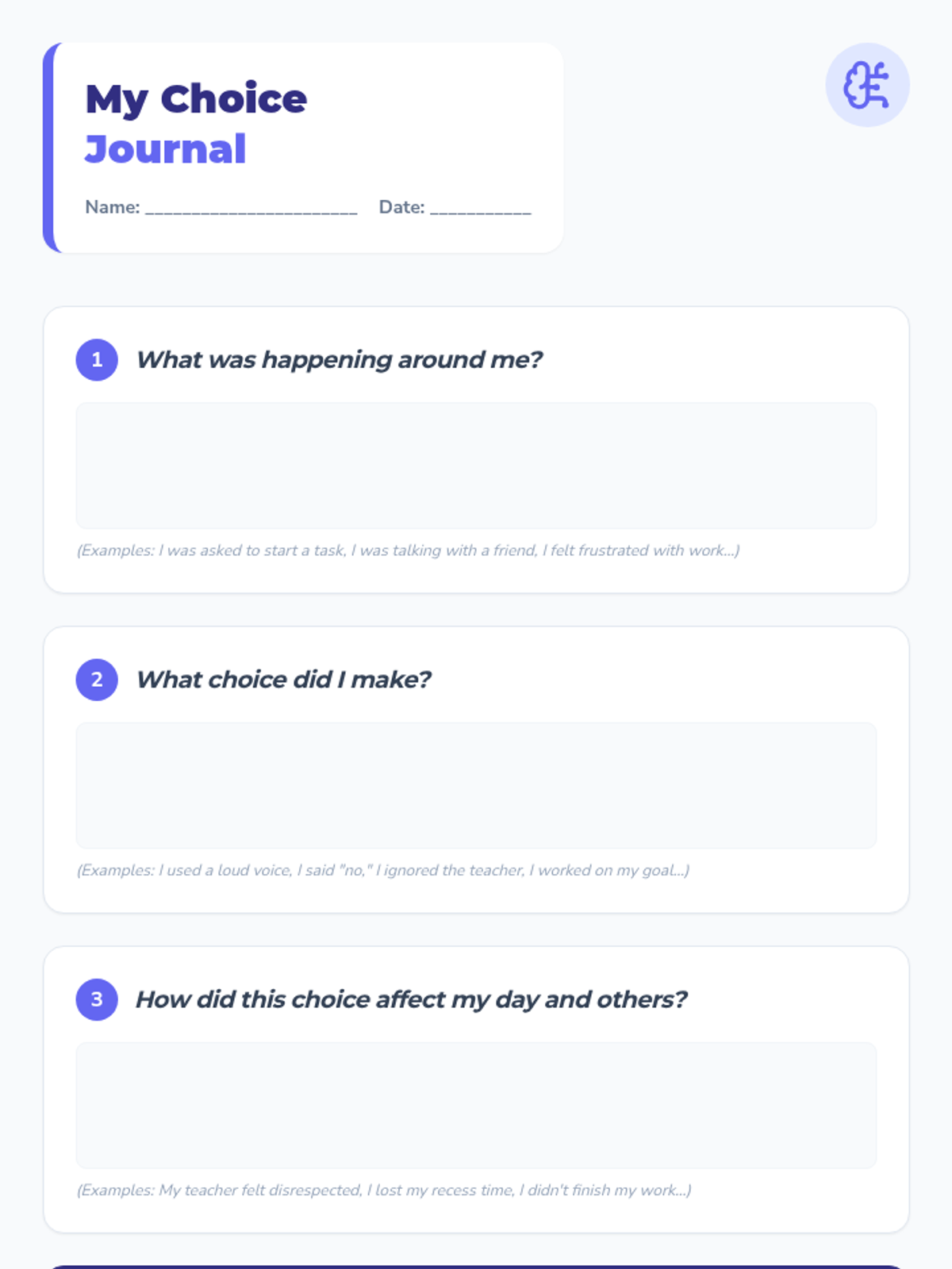 A lesson designed to help 3rd graders navigate externalizing behaviors like calling out and impulsivity through restorative class meetings and self-reflection tools.