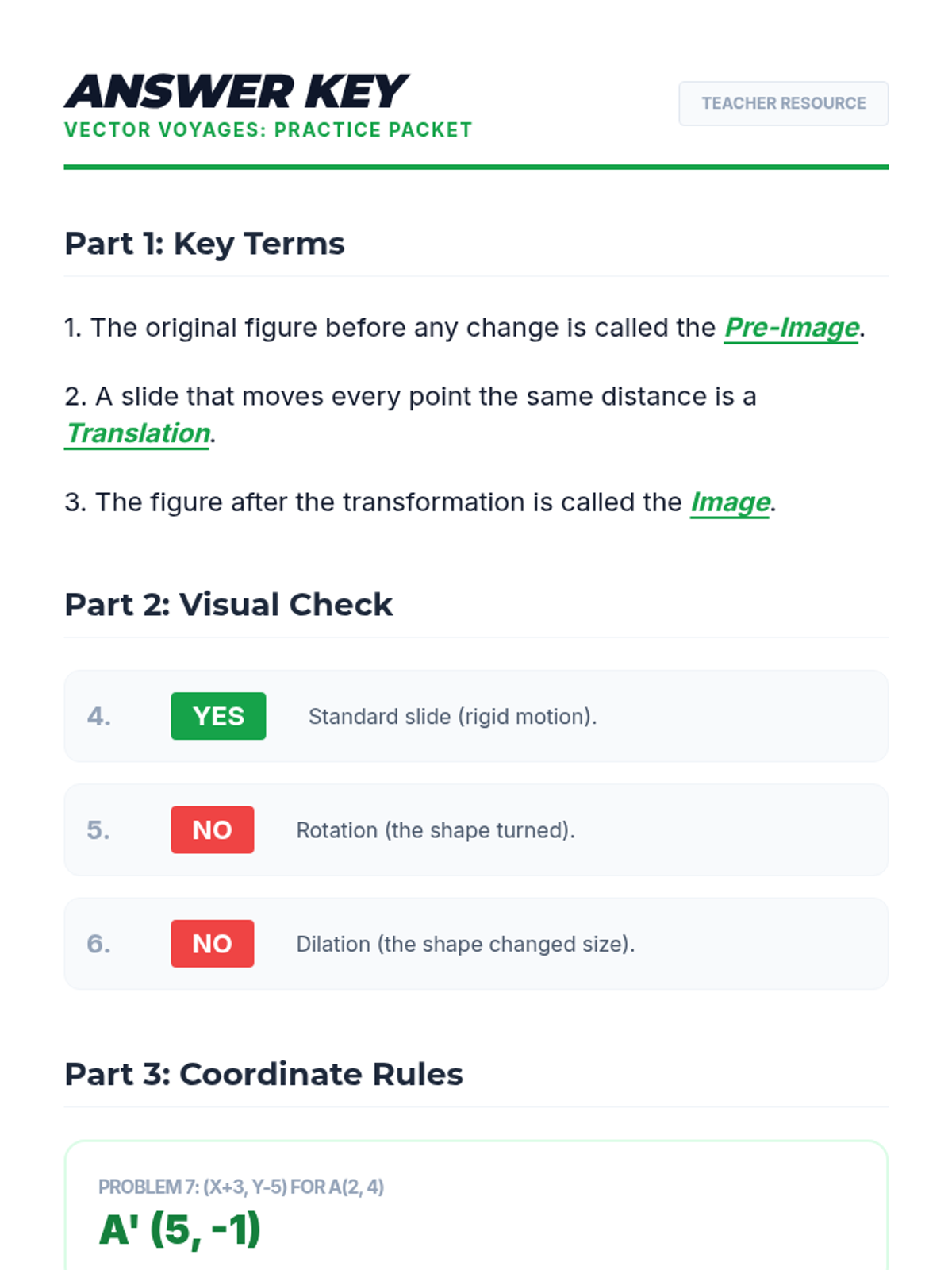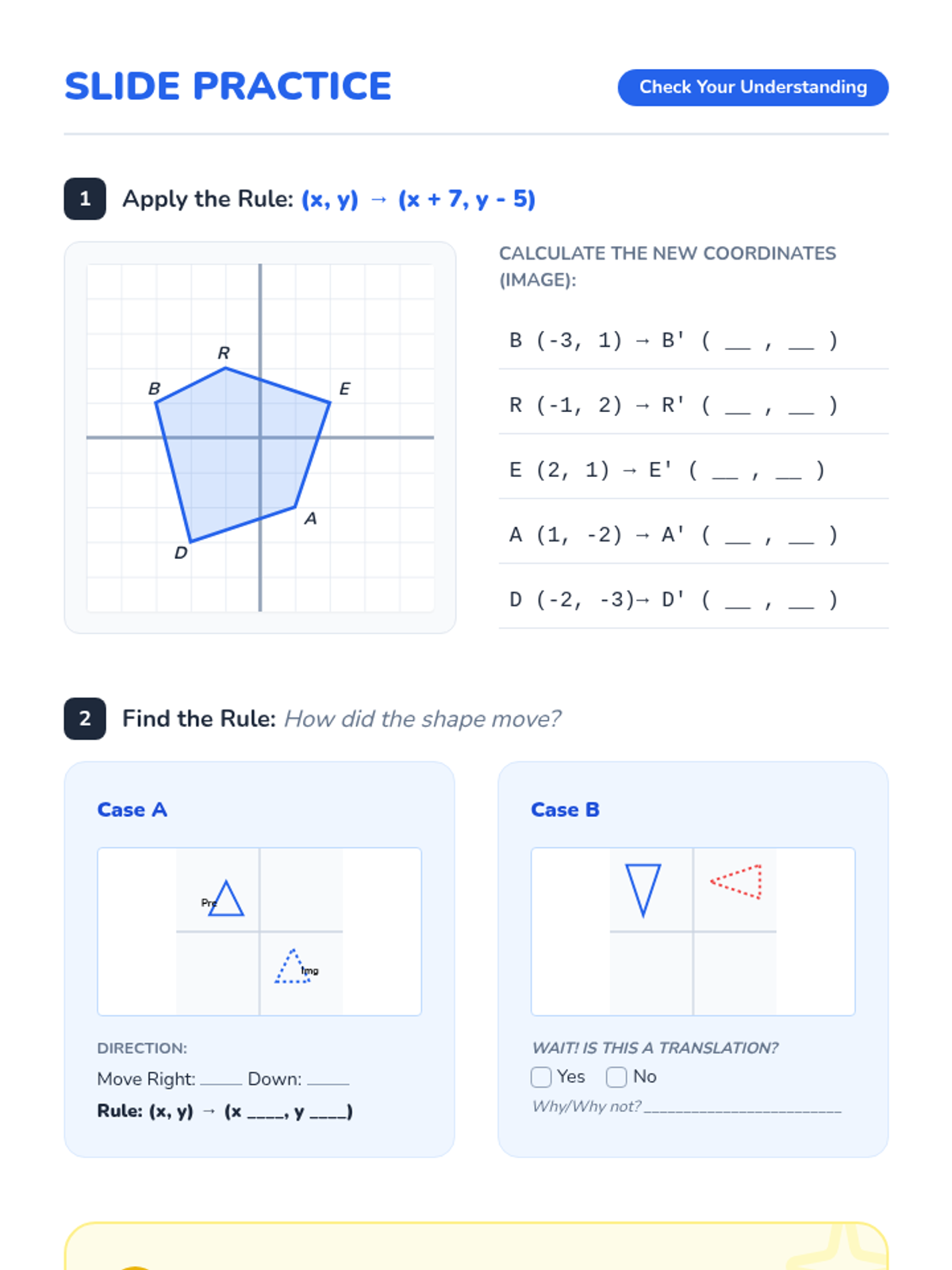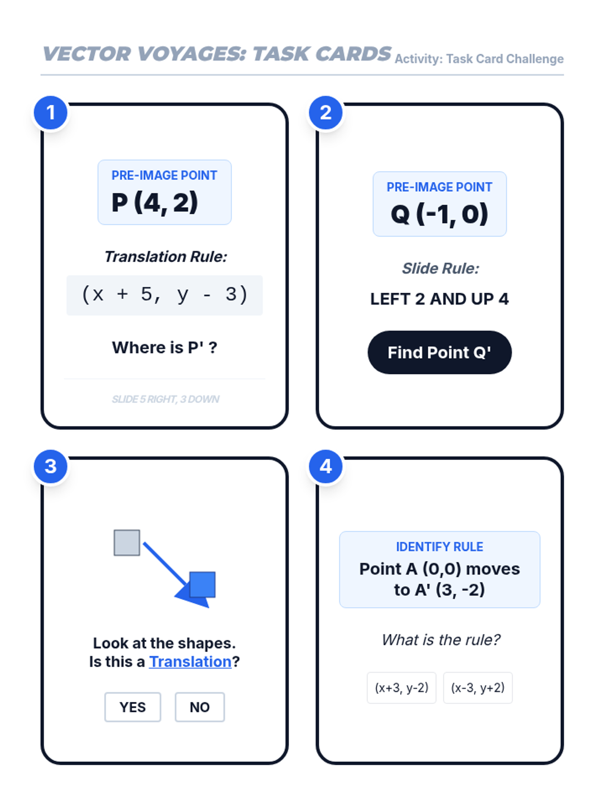 A scaffolded lesson on geometric translations that simplifies complex vocabulary, breaks down coordinate rules into manageable steps, and provides clear visual anchors for students.
