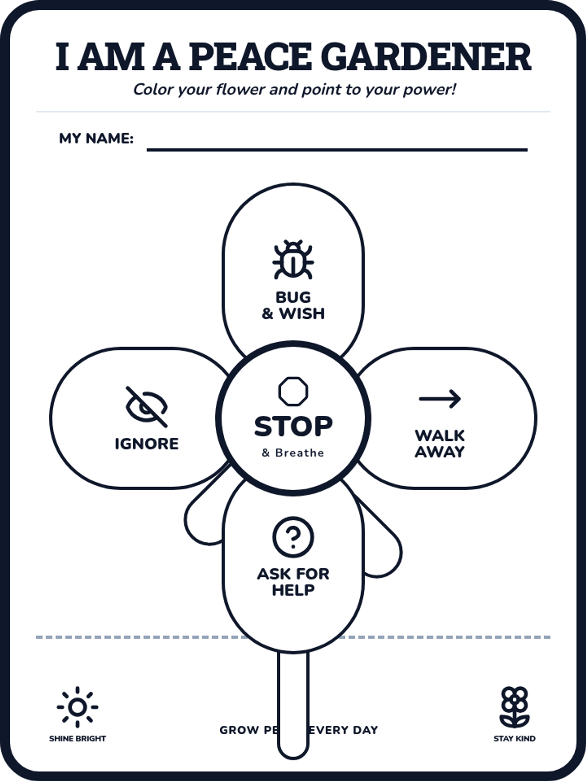 A gentle, flower-themed lesson for elementary students to learn social-emotional strategies for resolving conflicts during recess using the 'Peace Petals' framework.