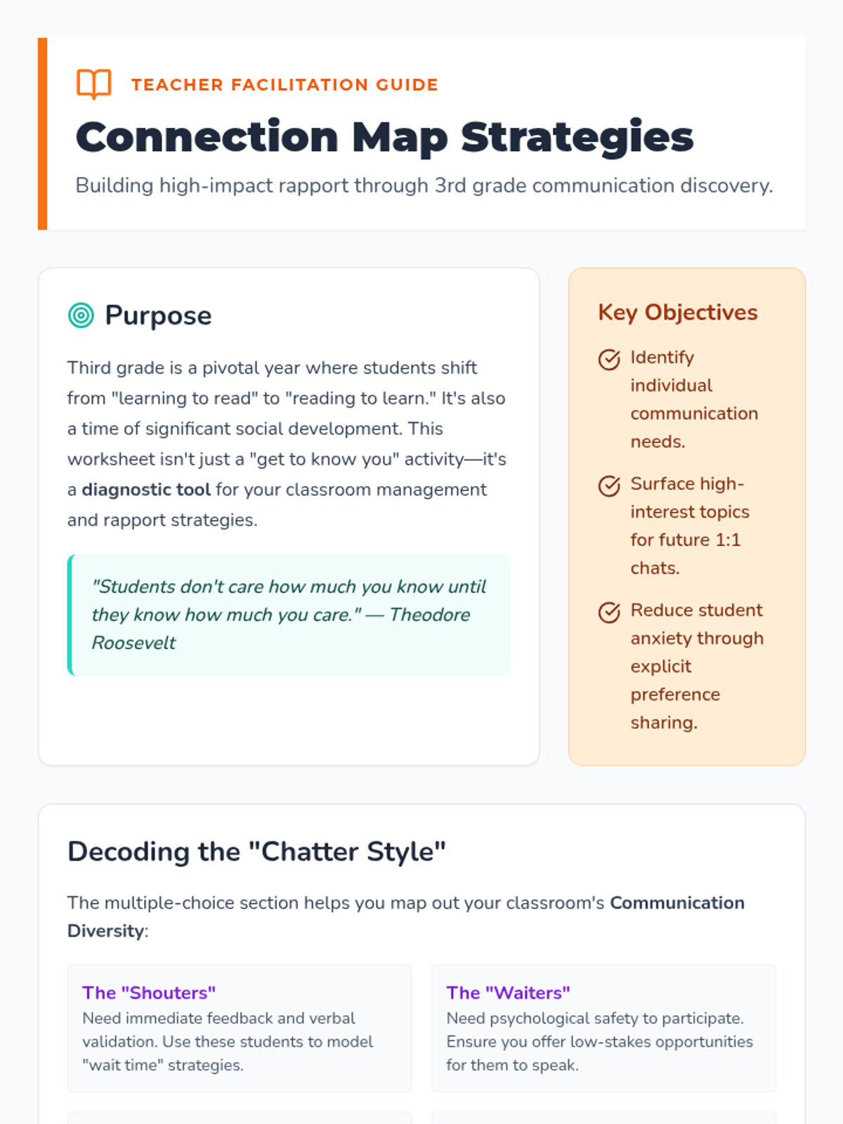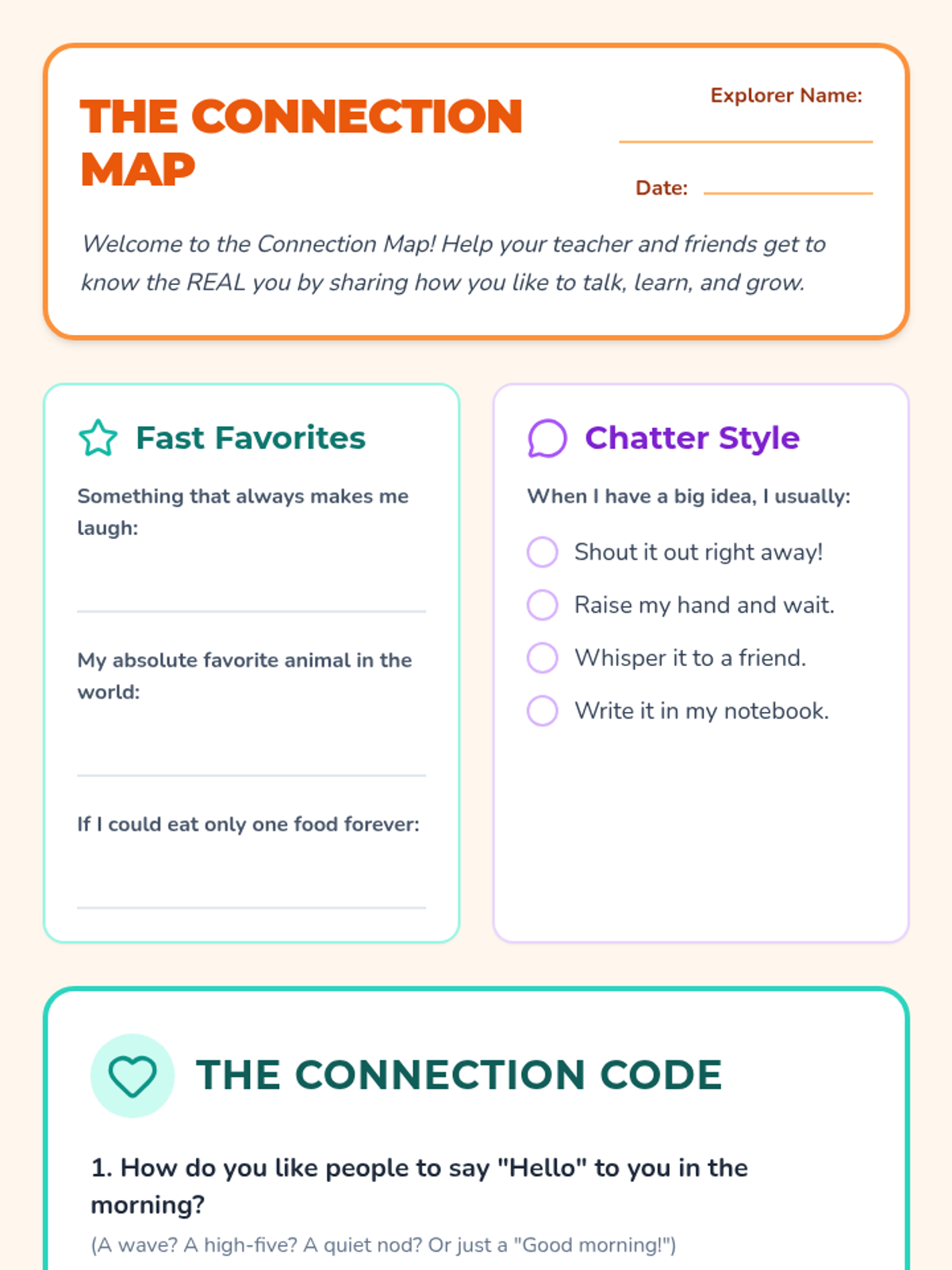 A lesson focused on building strong teacher-student and peer-to-peer relationships through self-expression and communication preference discovery.