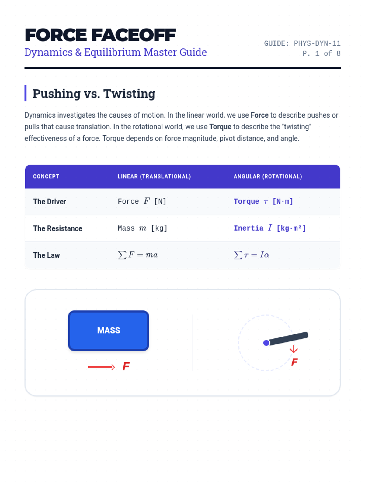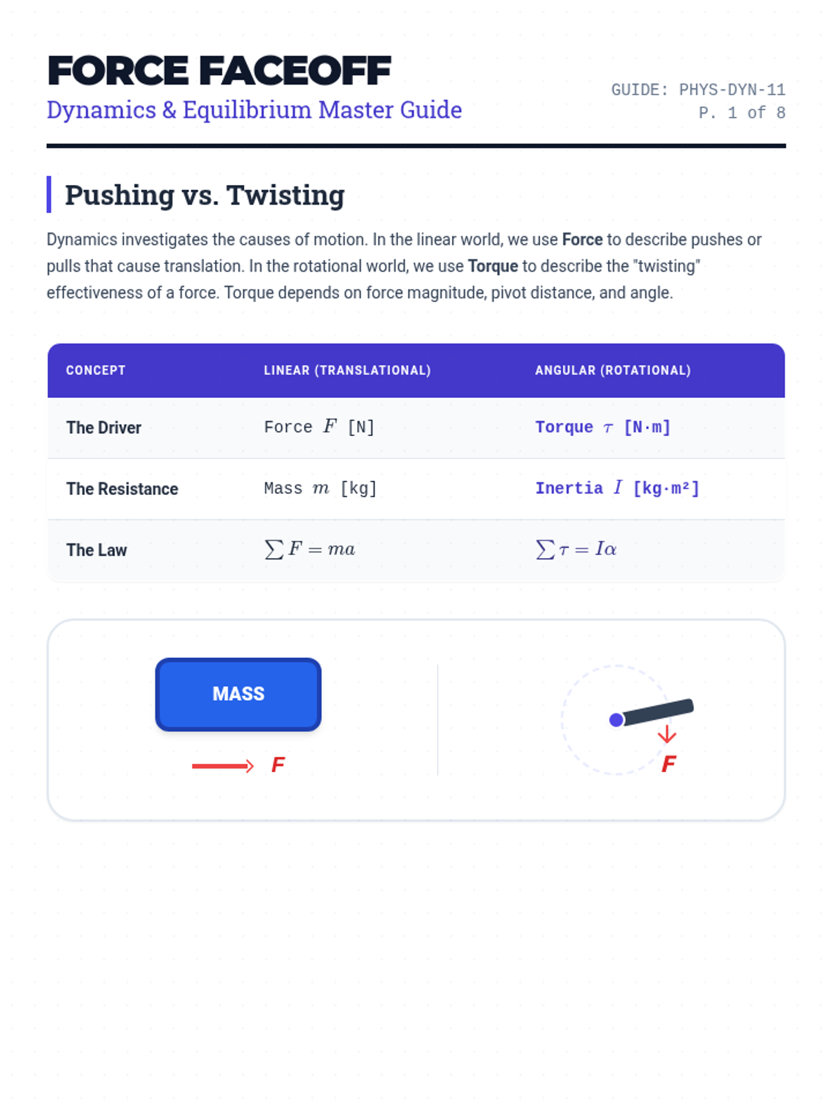 Explores the dynamics of rotation, comparing linear force to torque, applying Newton's Second Law in angular form, and mastering the conditions for static equilibrium.
