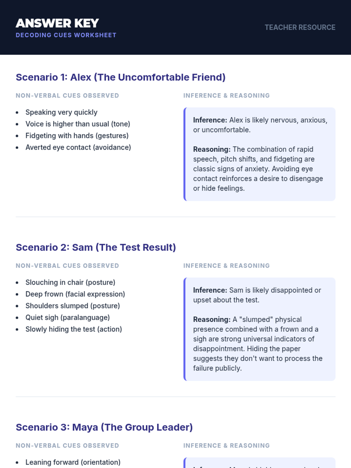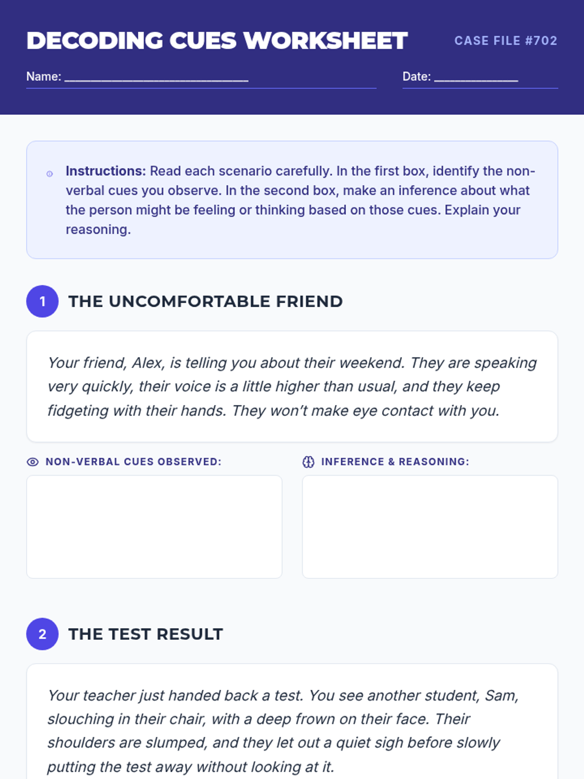 A social-emotional learning lesson designed for students with trauma backgrounds and impulse control challenges. It focuses on 'Scene Scanning'—assuming positive intent and dissecting social interactions through a detective-style lens to improve perspective-taking and reduce reactivity.