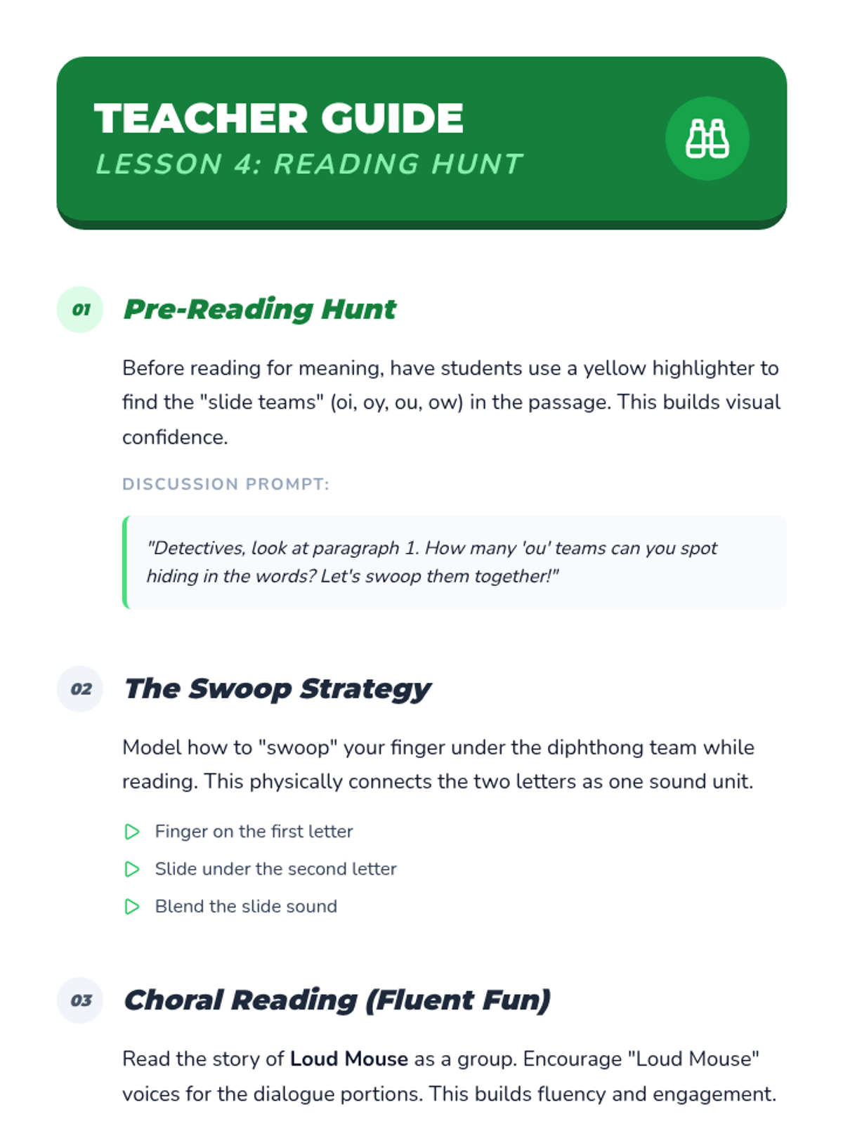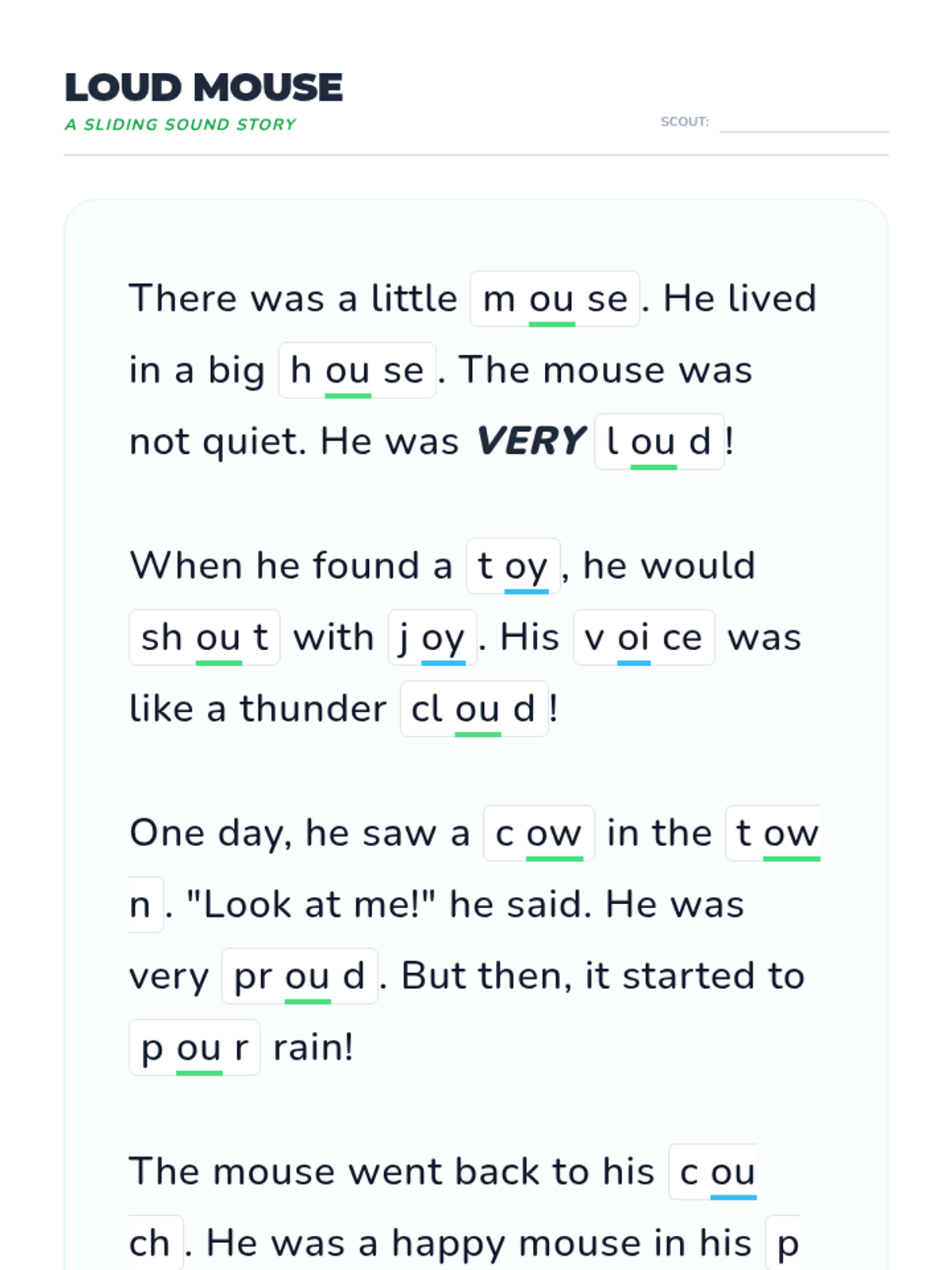 Students transition from isolated words to connected text, practicing decoding strategies in a decodable story.