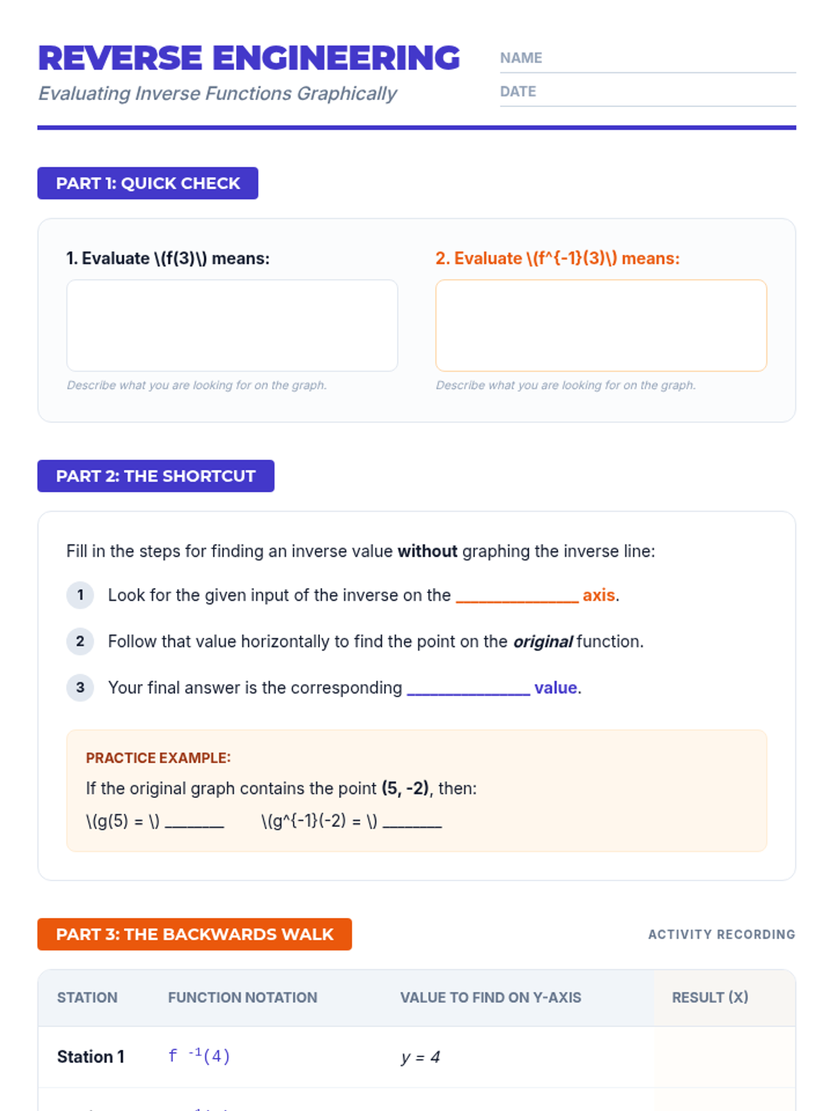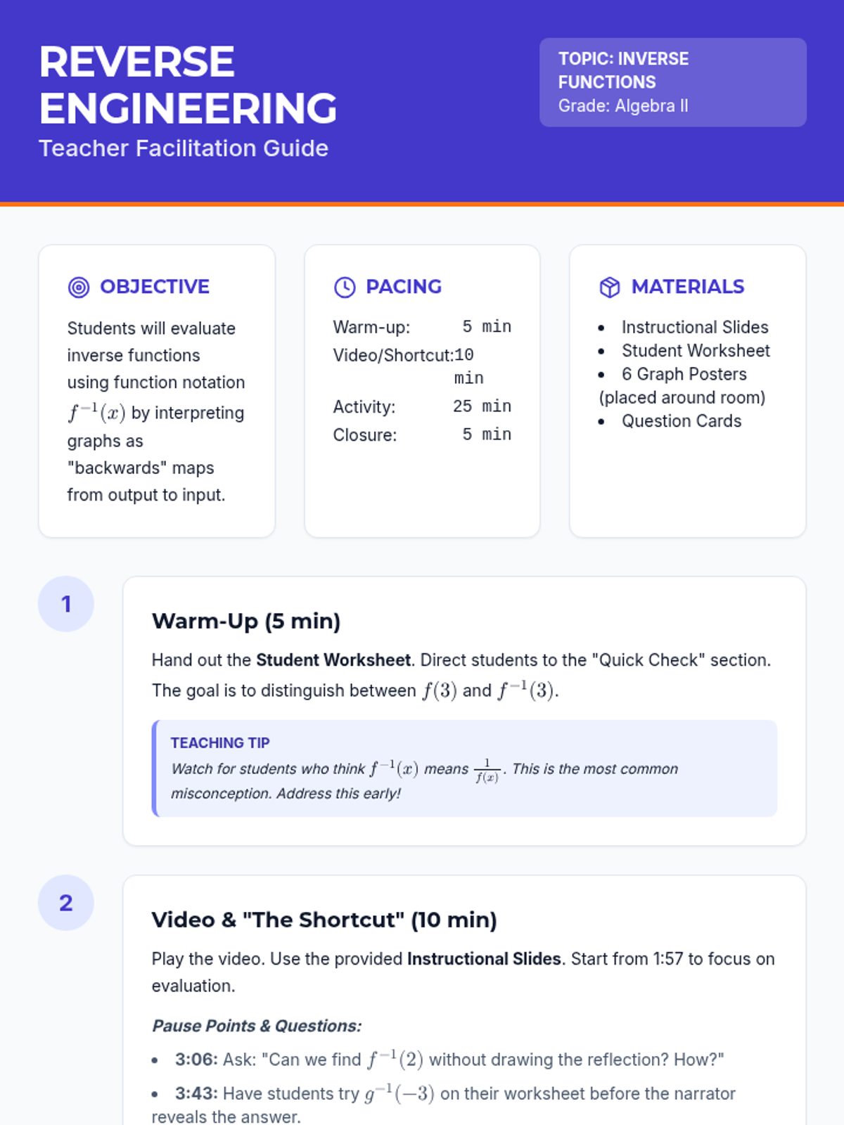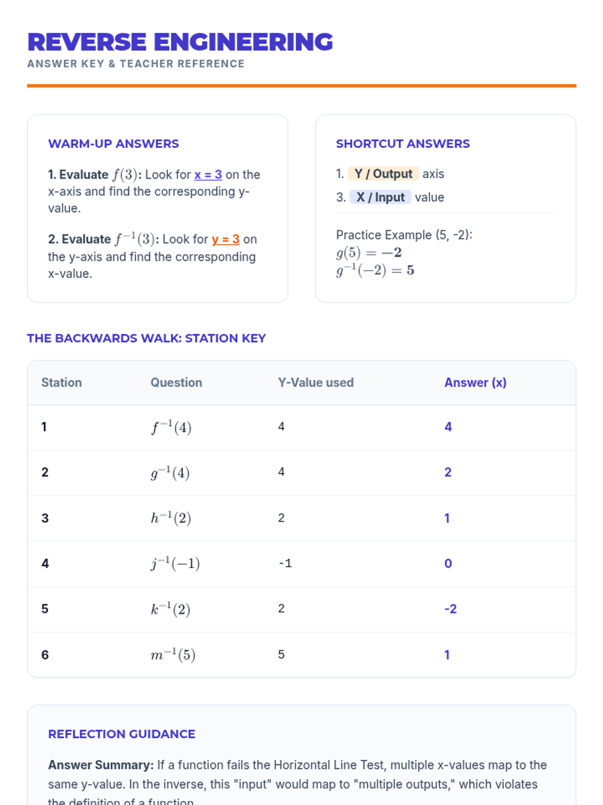 Students will learn to evaluate inverse functions from a graph using function notation, focusing on the shortcut of swapping inputs and outputs without needing to algebraically solve or graph the full inverse.
