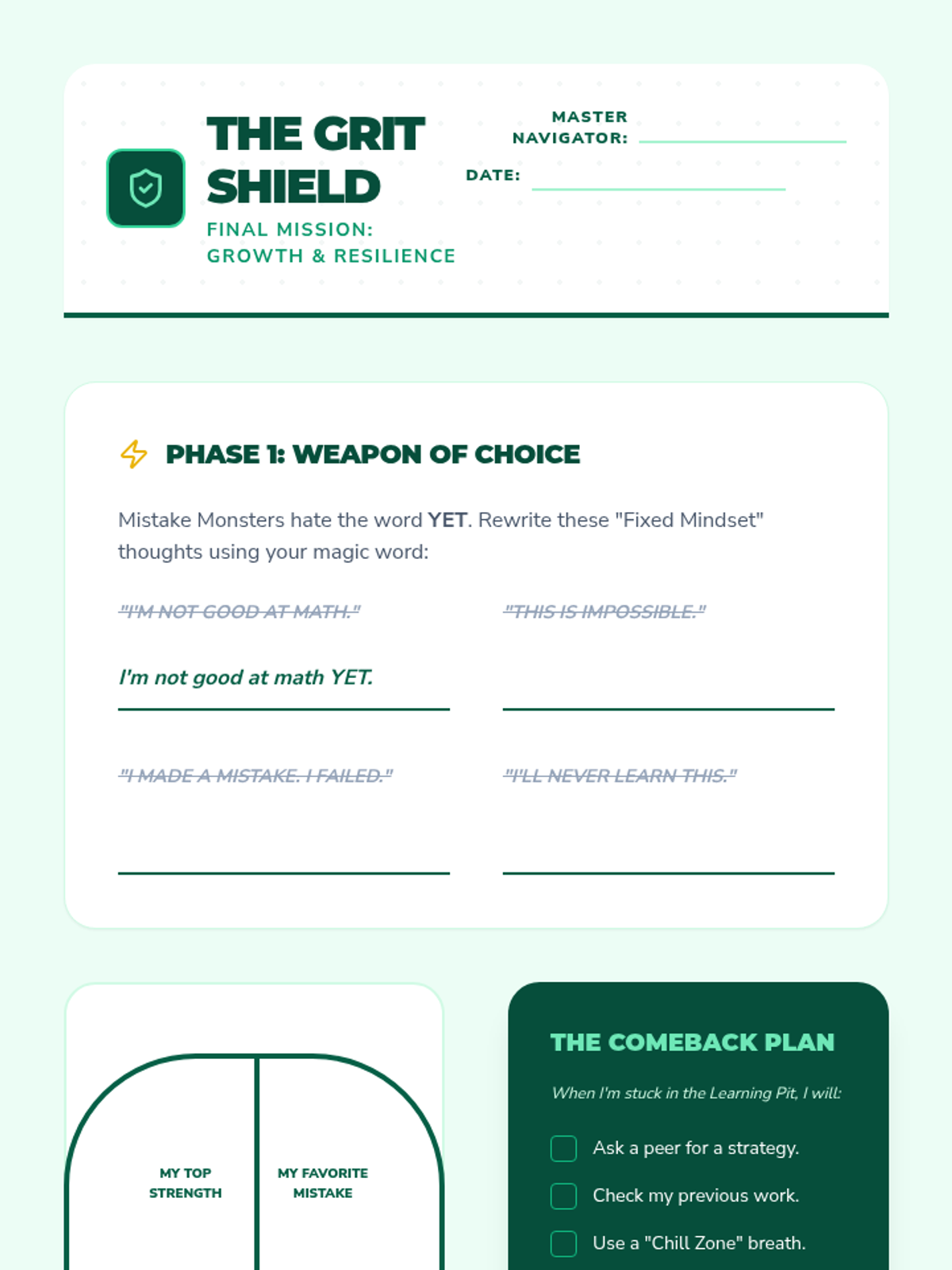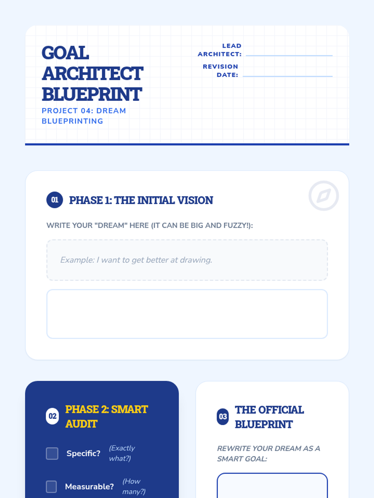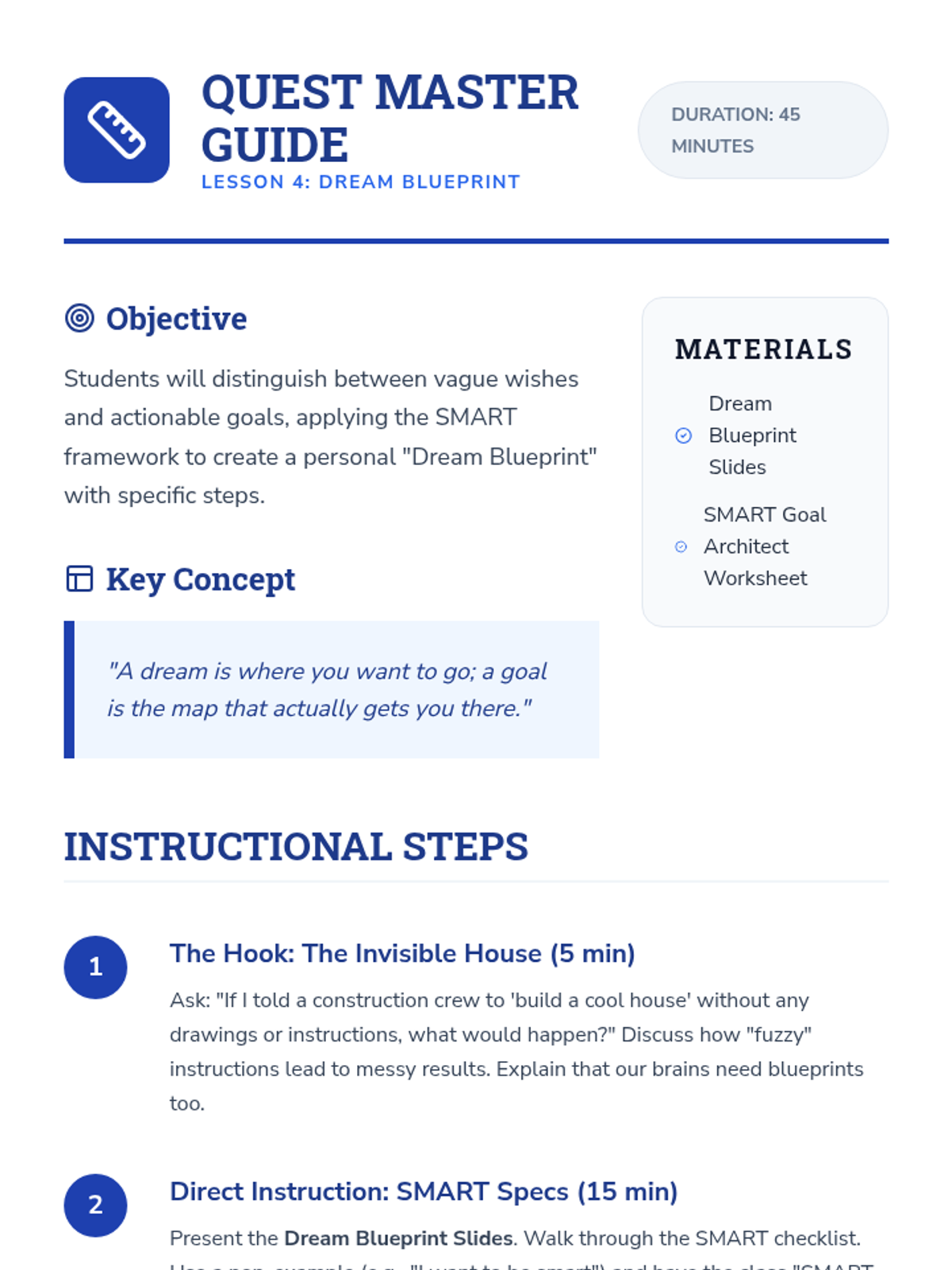 Teaches the fundamentals of SMART goal setting, helping students break down big dreams into small, actionable steps with a clear timeline.